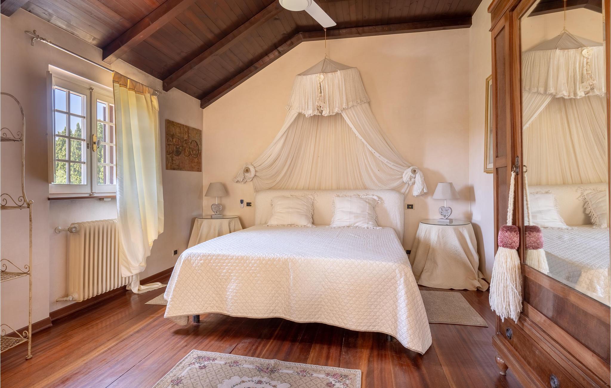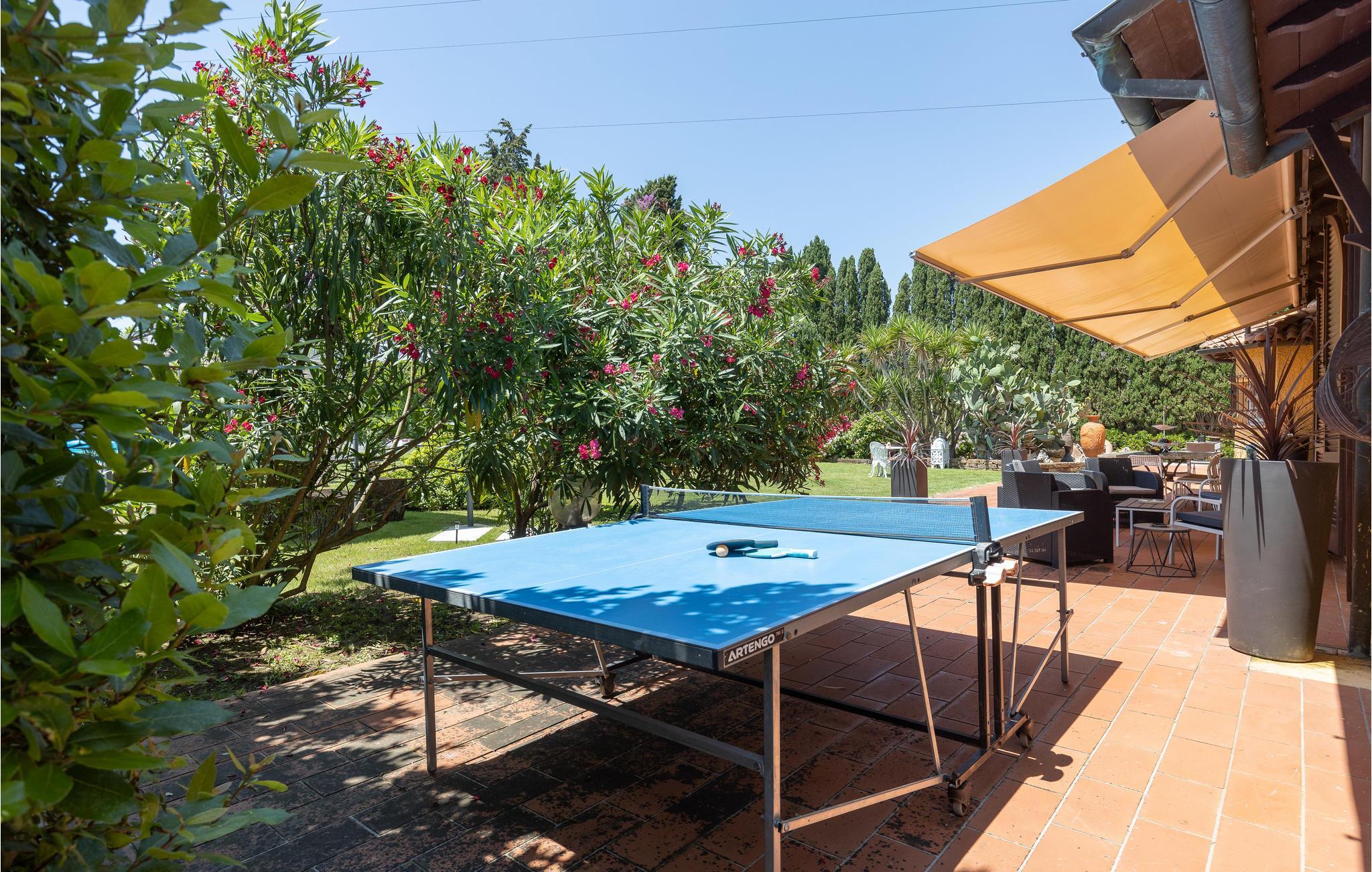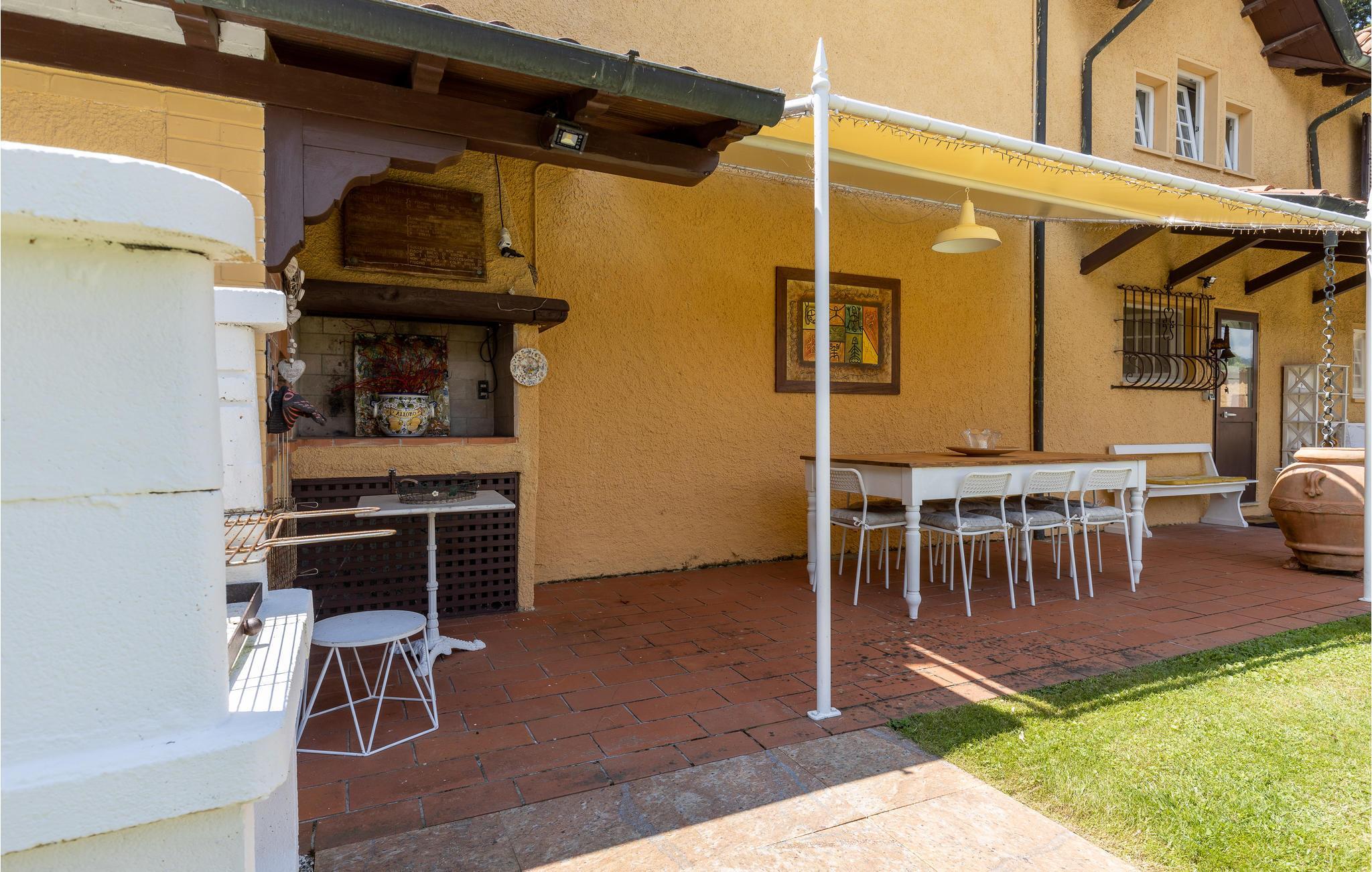 Diese geräumige Ferienvilla mit Privatschwimmbad und angrenzendem Kinderpool ist auf zwei Ebenen verteilt und hat ein ca. 3000 m2 großes Gartengrundstück, das komplett eingezäunt und auf den vier Seiten des Hauses verteilt ist. Der Außenbereich ist mit Holzofen, Grill, Tischen, Stühlen und Sonnenschirm ausgestattet und ist ideal um im Freien zu essen. Die Unterkunft befindet sich in Piano di Mommio, ist jedoch nur 5 km von den Stränden der Versilia entfernt gelegen. Weitere Entfernungen: 4 km Lido di Camaiore und Viareggio, 8 km Pietrasanta, 14 Km Forte dei Marmi, 25 Km Lucca, 27 Km Pisa, 72 Km Cinque Terre , 93 Km da Florenz. Weitere Entfernungen und Dienstleistungen: 0,7 km Restaurant, 0,8 km Reitstall, 1 km Geschäfte aller Art und Tennisplatz, 2 km Supermarkt, 4,7 km Strände, sowohl frei als auch mit Bedeanstalten (Viareggio und Lido di Camaiore), 14 km Golfplatz, 18 km Thermalbäder. Ausblick auf die Apuanischen Alpen sowohl vom Haus als auch vom Grundstück. Der gesamte Besitz besteht aus einem eingezäunten Grundstück von ca. 5000 m2, in dem sich ebenfalls das Cottage der Besitzerin des Hauses befindet, mit der die Gäste nur die Einfahrtsallee teilen.