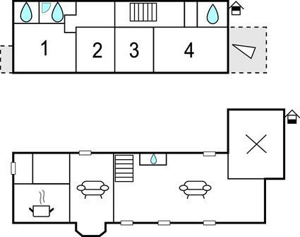 Badezimmer (nr. 1) - WC. Warmes und kaltes Wasser. Dusche
