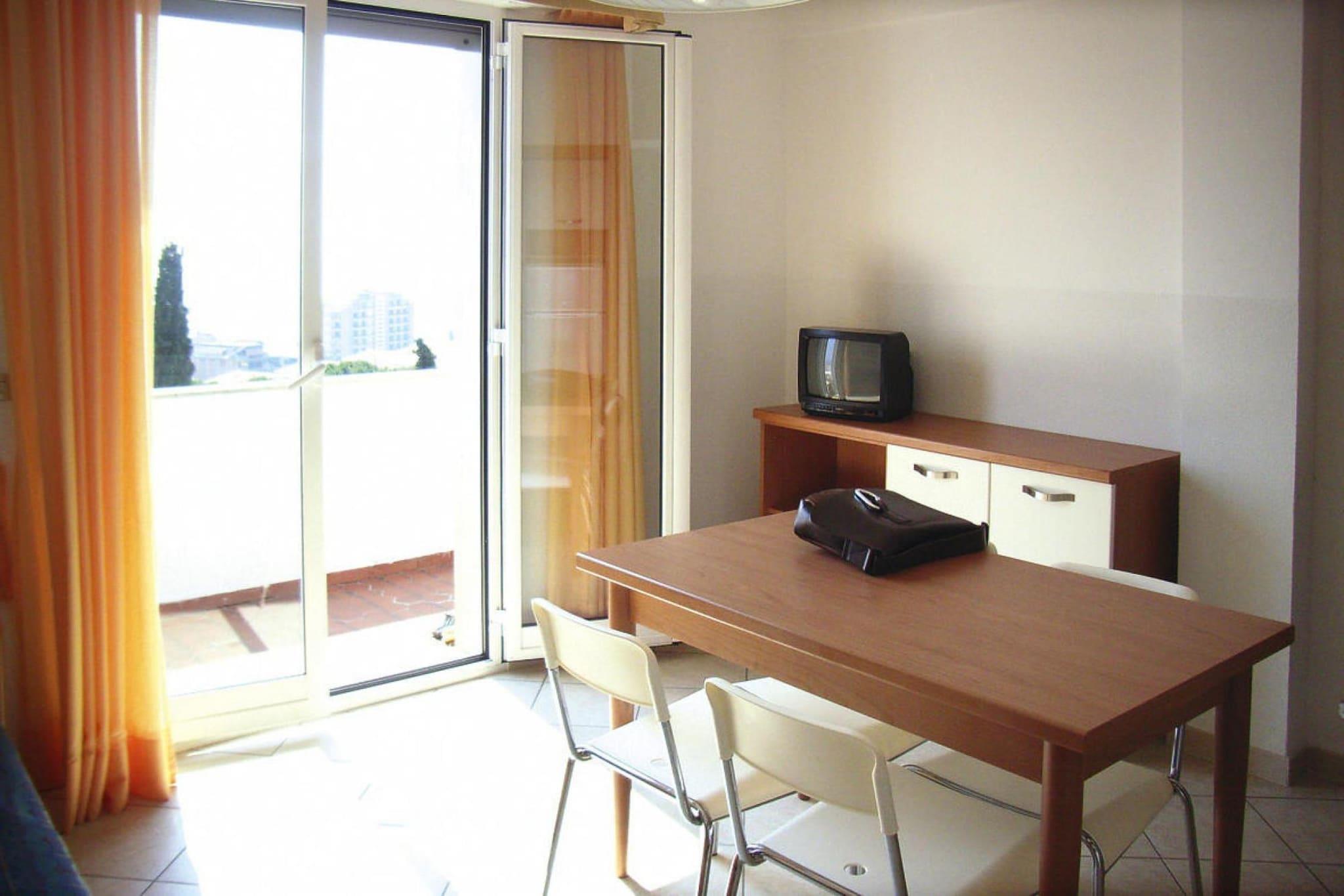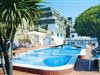 Wohnzimmer(Doppelschlafcouch, TV(Satellit)), Kochnische(Esstisch, Herd(Gas), Backofen, Mikrowelle, Kühl-/Gefrierkombination), Schlafzimmer(Einzelbett, Doppelbett), Badezimmer(Badewanne oder Dusche, Toilette, Föhn), Rezeption, Bar, Imbiss, Dusche(Gemeinschaftliche Nutzung mit anderen Gästen), Balkon, Heizung, Klimaanlage, Terrasse(Gemeinschaftliche Nutzung mit anderen Gästen), Gartenmöbel, Liegen, Sonnenschirm, Pool(Gemeinschaftliche Nutzung mit anderen Gästen, 18 x 8 m., geöffnet von 1/2 Mai bis einschließlich Okt), Aufzug, Babybett (kostenpflichtig)
