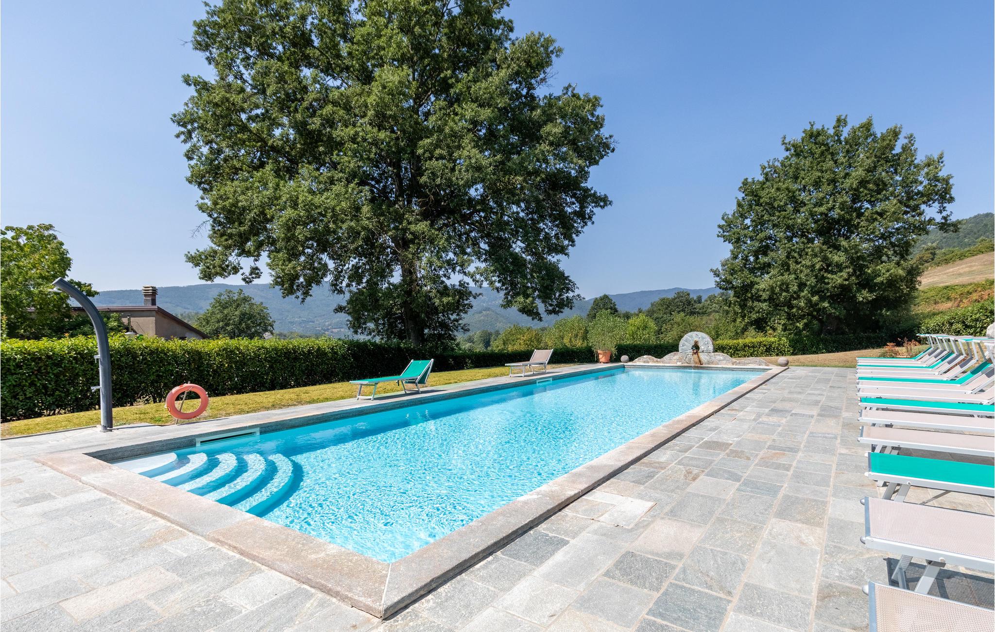 Erleben Sie italienische Lebensart in einer traumhaften Kulisse. An den sonnigen Südhängen des Apennins begrüßt Sie dieses liebevoll restaurierte ehemalige Bauernhaus, das rustikalen Charme mit modernen Annehmlichkeiten verbindet und Platz für größere Gruppen bietet. Starten Sie den Tag mit einem Frühstück auf der großen überdachten Terrasse, die einen weiten Blick ins Tal bietet. Nutzen Sie den großzügigen Grillbereich, um regionale Köstlichkeiten zuzubereiten und genießen Sie bei jedem Wetter gesellige Mahlzeiten im Freien. Erfrischen Sie sich im privaten, umzäunten Pool und entspannen Sie auf der Sonnenterrasse und im Poolhaus.