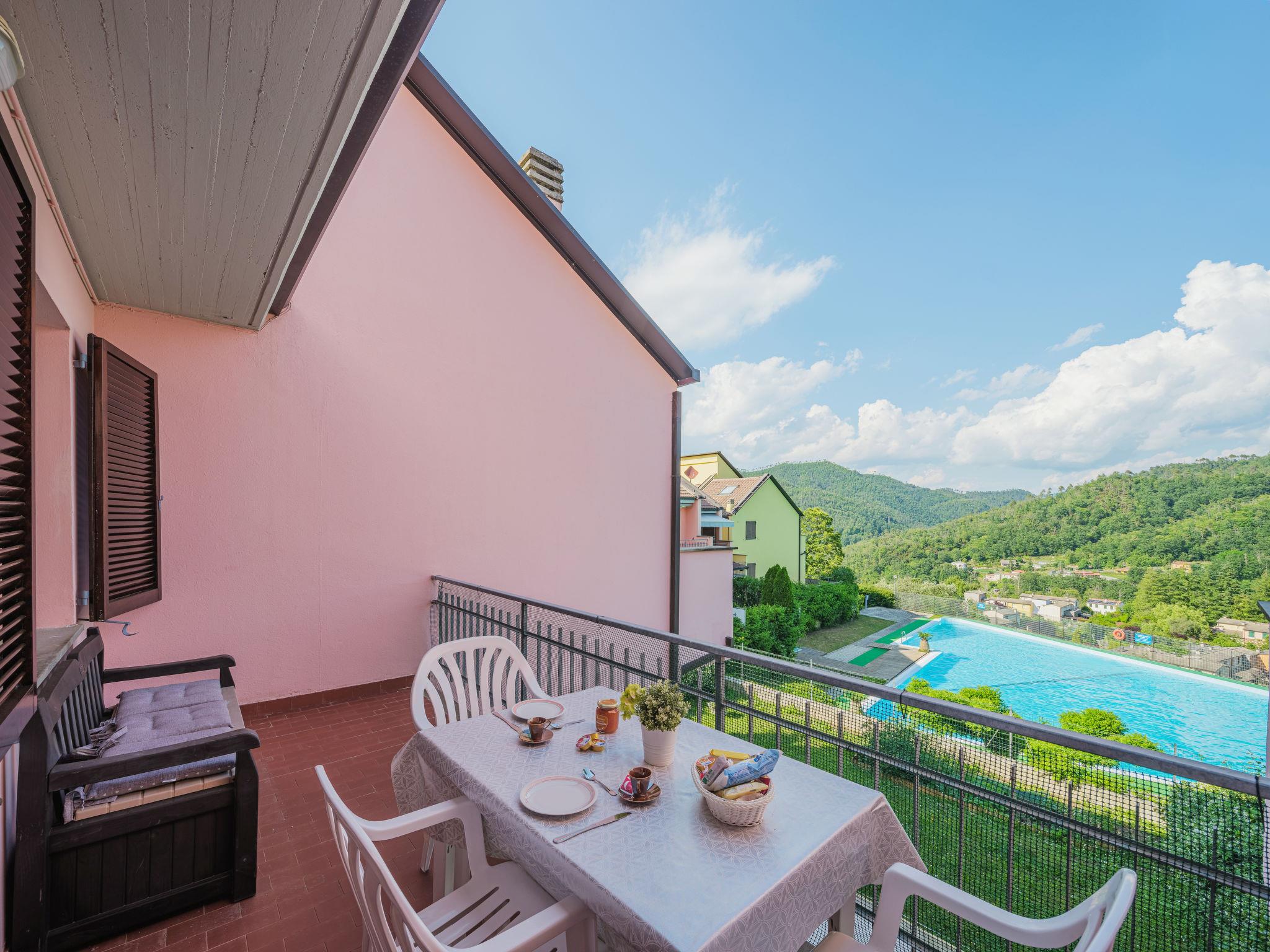 Grosse Residenz "Villaggio 5 Terre", 460 m.ü.M., umgeben von Bäumen. Im Weiler Puin, 6 km vom Zentrum von Pignone, 11 km vom Zentrum von Levanto, 22 km vom Zentrum von La Spezia, ruhige, erhöhte Lage, 9 km vom Meer, 9 km vom Strand. Zur Mitbenutzung: Park (eingezäunt), Schwimmbad eckig (400 m2, 170 - 220 cm tief, saisonale Verfügbarkeit: 15.Jun. - 15.Sep. Öffnungszeiten Schwimmbad: 09:30-19:30). Kinderbecken, Aussendusche, Tennis, Tischtennis, Boccia, Grillhaus, Kinderspielplatz, Poolpflege durch den Besitzer/Gärtner. Im Hause: Zentralheizung, Heizung vor Ort zu zahlen (22.Mar. - 31.Okt.), Heizung nur verfügbar von 01.Nov. - 21.Mar.. Parkplatz auf dem Grundstück. Lebensmittelgeschäft 6 km, Supermarkt 6 km, Einkaufszentrum 22 km, Restaurant, Bushaltestelle 100 m, Bahnstation "Monterosso / Levanto" 10 km, Sandstrand 9 km. Nahe gelegene Sehenswürdigkeiten: Monterosso al Mare 9 km, Vernazza 10 km, Corniglia 13 km, Santa Margherita 72 km, Levanto 26 km, Riomaggiore 31 km. Wandergebiete: Parco Nazionale delle Cinque Terre. Bitte beachten: Fahrzeug empfohlen. Geeignet für Familien. Der Besitzer akzeptiert keine Jugendgruppen. Die Nachbarschaft ist sehr lärmempfindlich. Ruhe und gutes Benehmen wird erwartet. Badekappenpflicht.