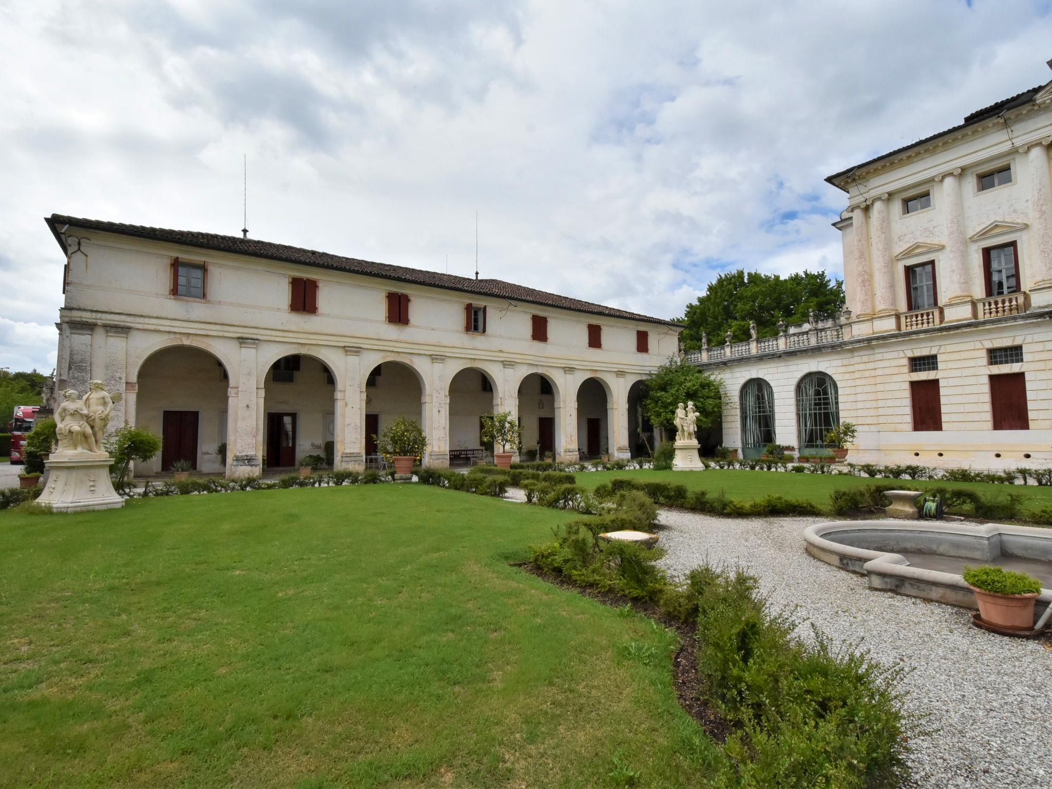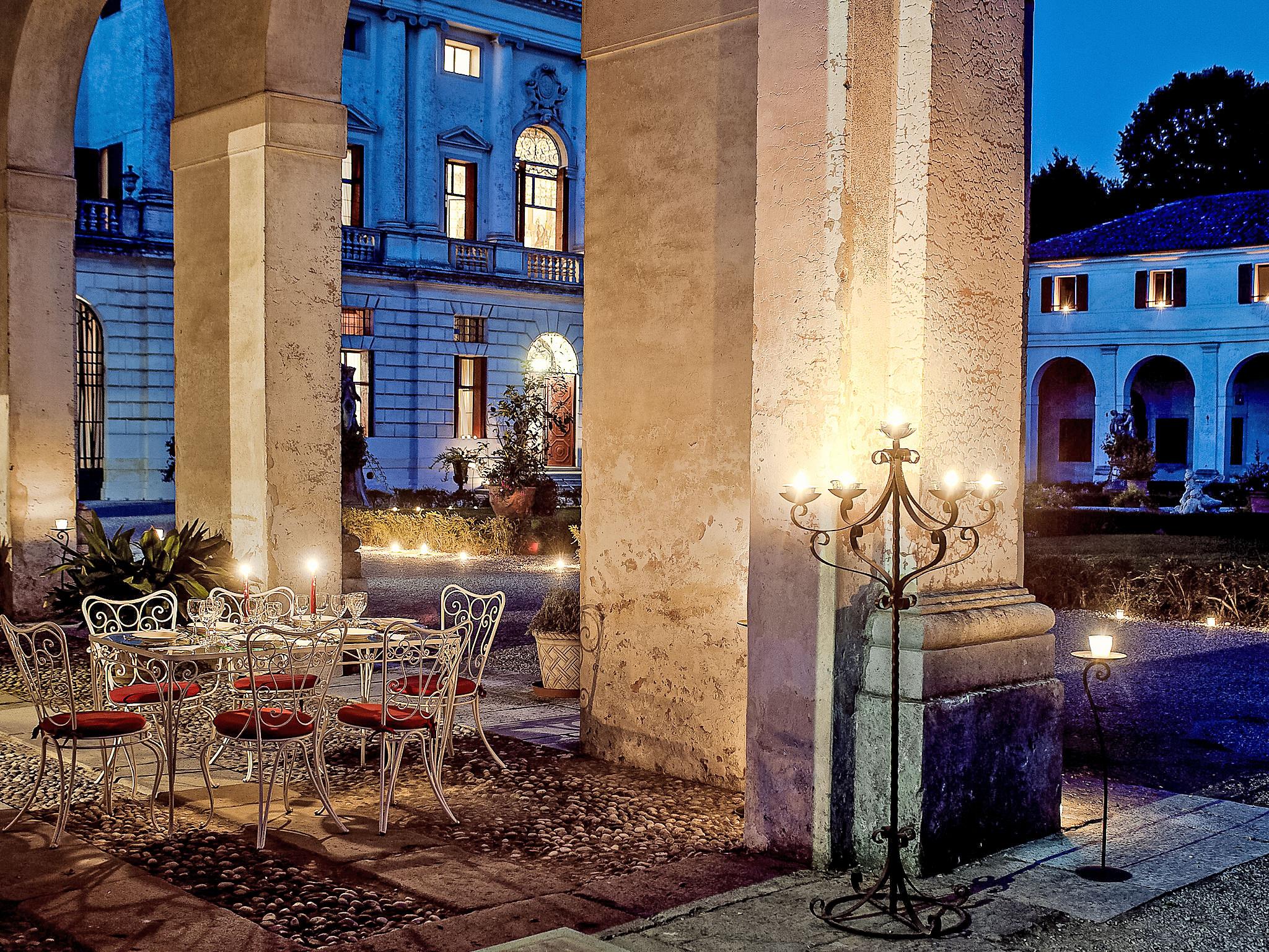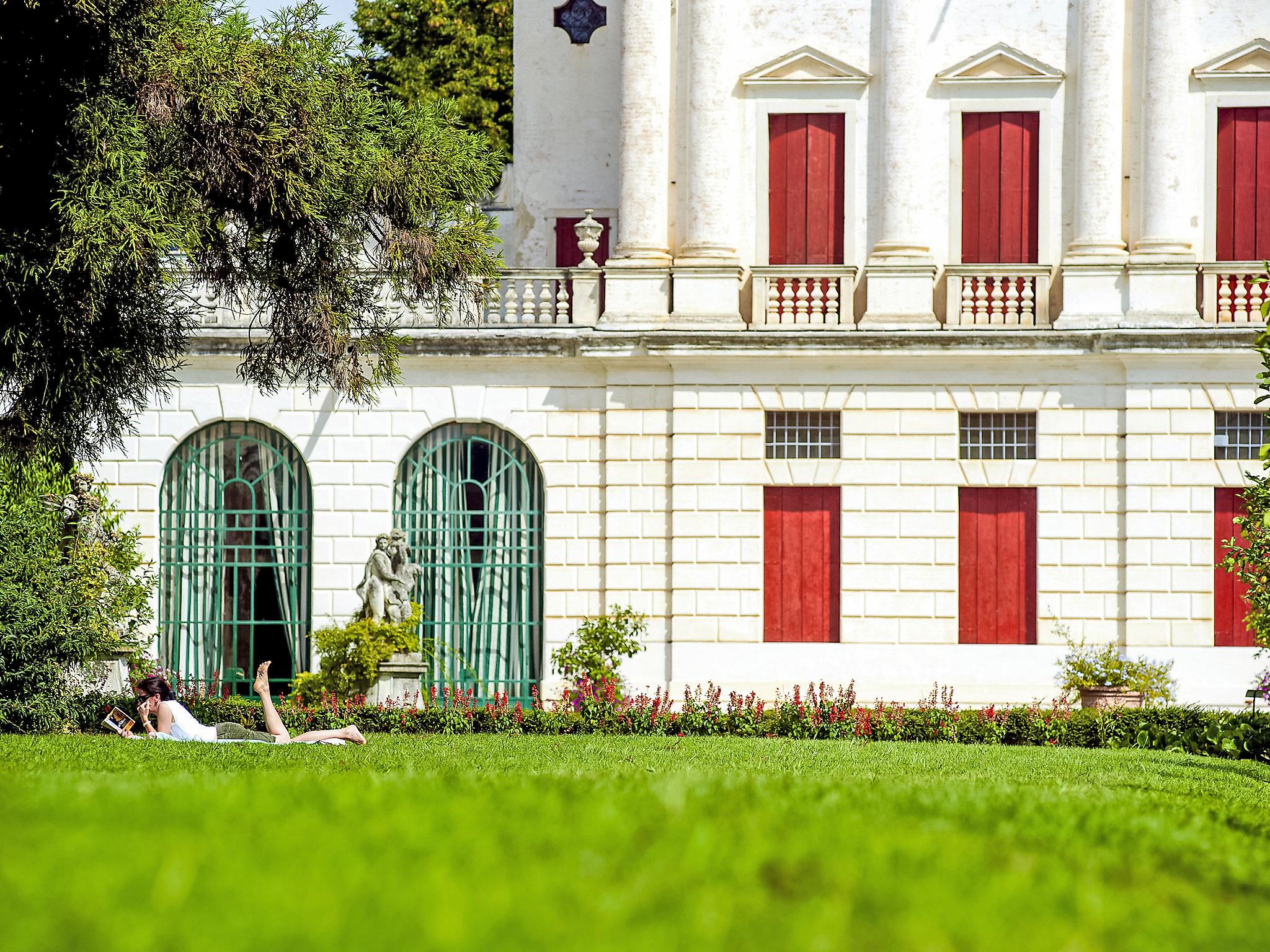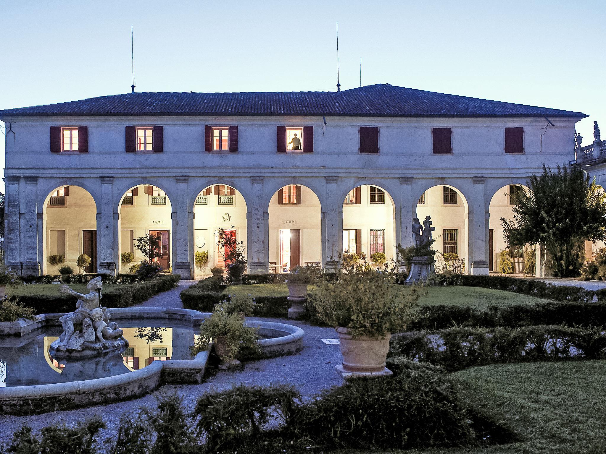 "Barchessa Palladio", 7-Zimmer-Doppelhaushälfte 360 m2 auf 3 Stockwerken. Geräumig und hell, antik und stilvoll eingerichtet: grosser Eingang. Grosses Wohnzimmer mit Sat-TV, Radio, CD, Stereoanlage, DVD und DVD Sammlung vorhanden. Ausgang zum Garten. Grosses Esszimmer mit Esstisch. 1 Zimmer mit 1 Doppelbett, Dusche/Bidet/WC und Klimaanlage. Grosse, offene Küche (Backofen, Geschirrspüler, 5 Flammen, Toaster, Wasserkocher, Mikrowelle, Tiefkühler) mit Esstisch. Obergeschoss: 1 Zimmer mit 1 Doppelbett, Dusche/Bidet/WC und Klimaanlage. Studio. 1 Zimmer mit 1 Doppelbett und Klimaanlage. 1 Zimmer mit 2 Betten und Klimaanlage. Dusche/Bidet/WC. Heizung. Parkettboden. Liegestühle (4). Schöne Sicht auf den Garten. Zur Verfügung: Kinderhochstuhl, Babybett (extra). Internet (Wireless LAN, gratis). Bitte beachten: geeignet für Familien. Nichtraucher-Unterkunft. Bei Belegung mit weniger Personen als der maximalen Personenzahl stehen nicht alle Schlafzimmer zur Verfügung. IT028064C2VZ6JGGJ4