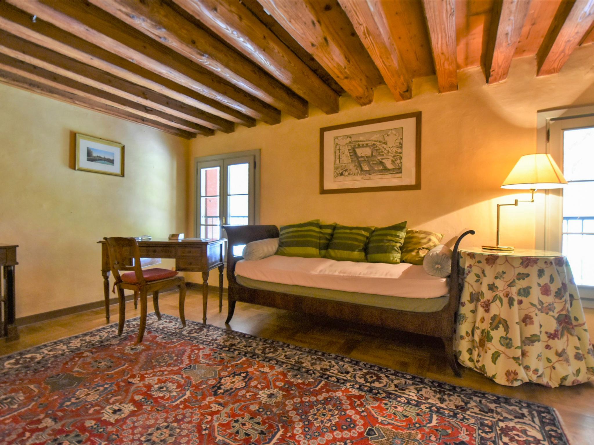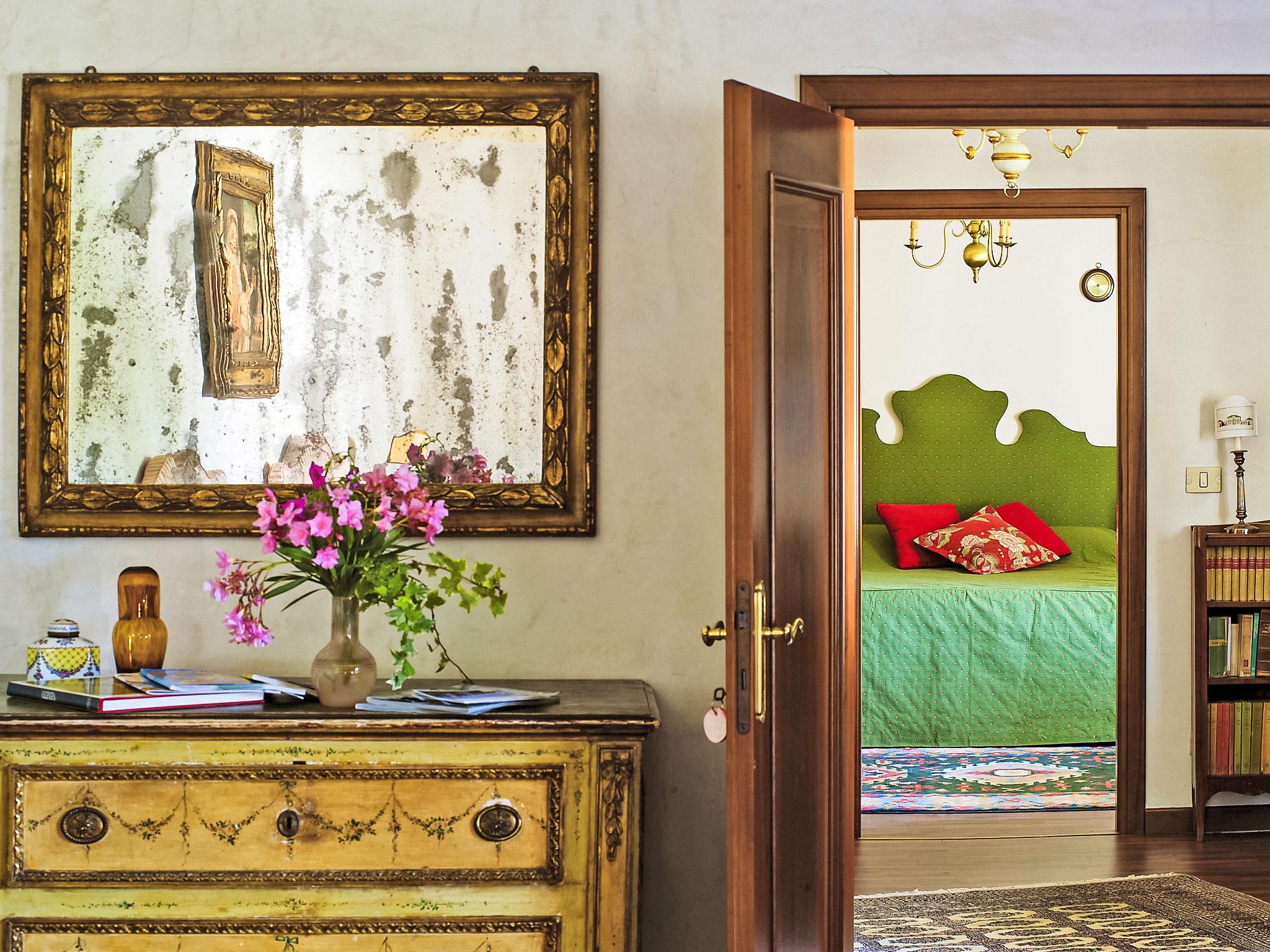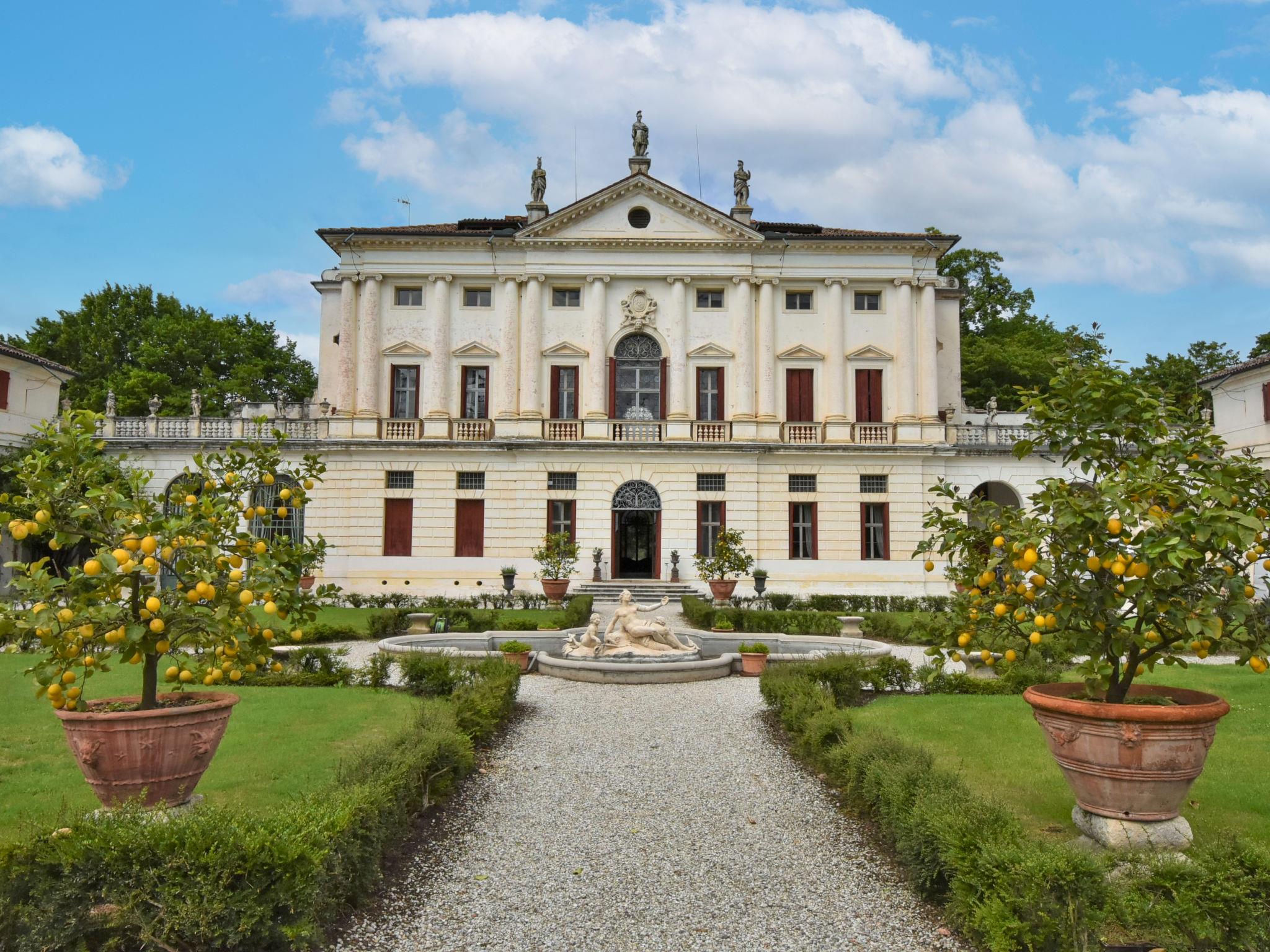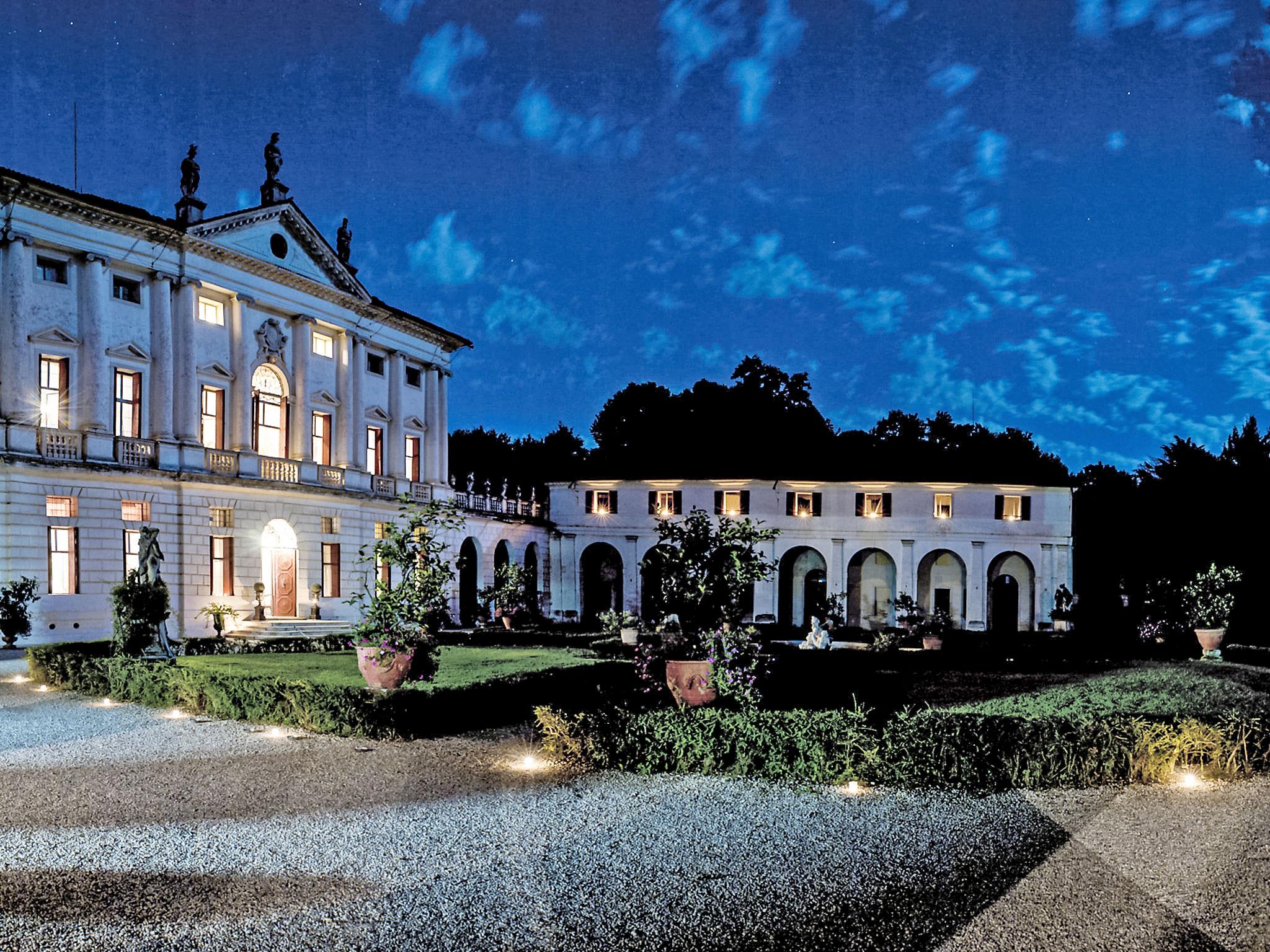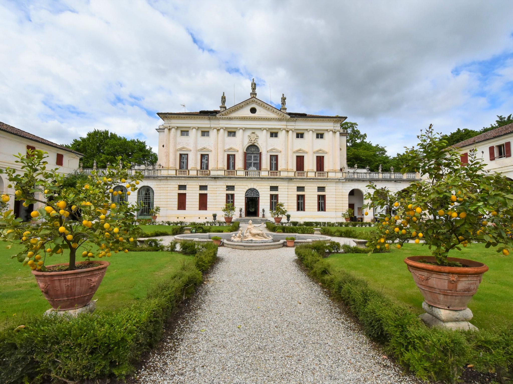 "Barchessa Palladio", 7-Zimmer-Doppelhaushälfte 360 m2 auf 3 Stockwerken. Geräumig und hell, antik und stilvoll eingerichtet: grosser Eingang. Grosses Wohnzimmer mit Sat-TV, Radio, CD, Stereoanlage, DVD und DVD Sammlung vorhanden. Ausgang zum Garten. Grosses Esszimmer mit Esstisch. 1 Zimmer mit 1 Doppelbett, Dusche/Bidet/WC und Klimaanlage. Grosse, offene Küche (Backofen, Geschirrspüler, 5 Flammen, Toaster, Wasserkocher, Mikrowelle, Tiefkühler) mit Esstisch. Obergeschoss: 1 Zimmer mit 1 Doppelbett, Dusche/Bidet/WC und Klimaanlage. Studio. 1 Zimmer mit 1 Doppelbett und Klimaanlage. 1 Zimmer mit 2 Betten und Klimaanlage. Dusche/Bidet/WC. Heizung. Parkettboden. Liegestühle (4). Schöne Sicht auf den Garten. Zur Verfügung: Kinderhochstuhl, Babybett (extra). Internet (Wireless LAN, gratis). Bitte beachten: geeignet für Familien. Nichtraucher-Unterkunft. Bei Belegung mit weniger Personen als der maximalen Personenzahl stehen nicht alle Schlafzimmer zur Verfügung. IT028064C2VZ6JGGJ4