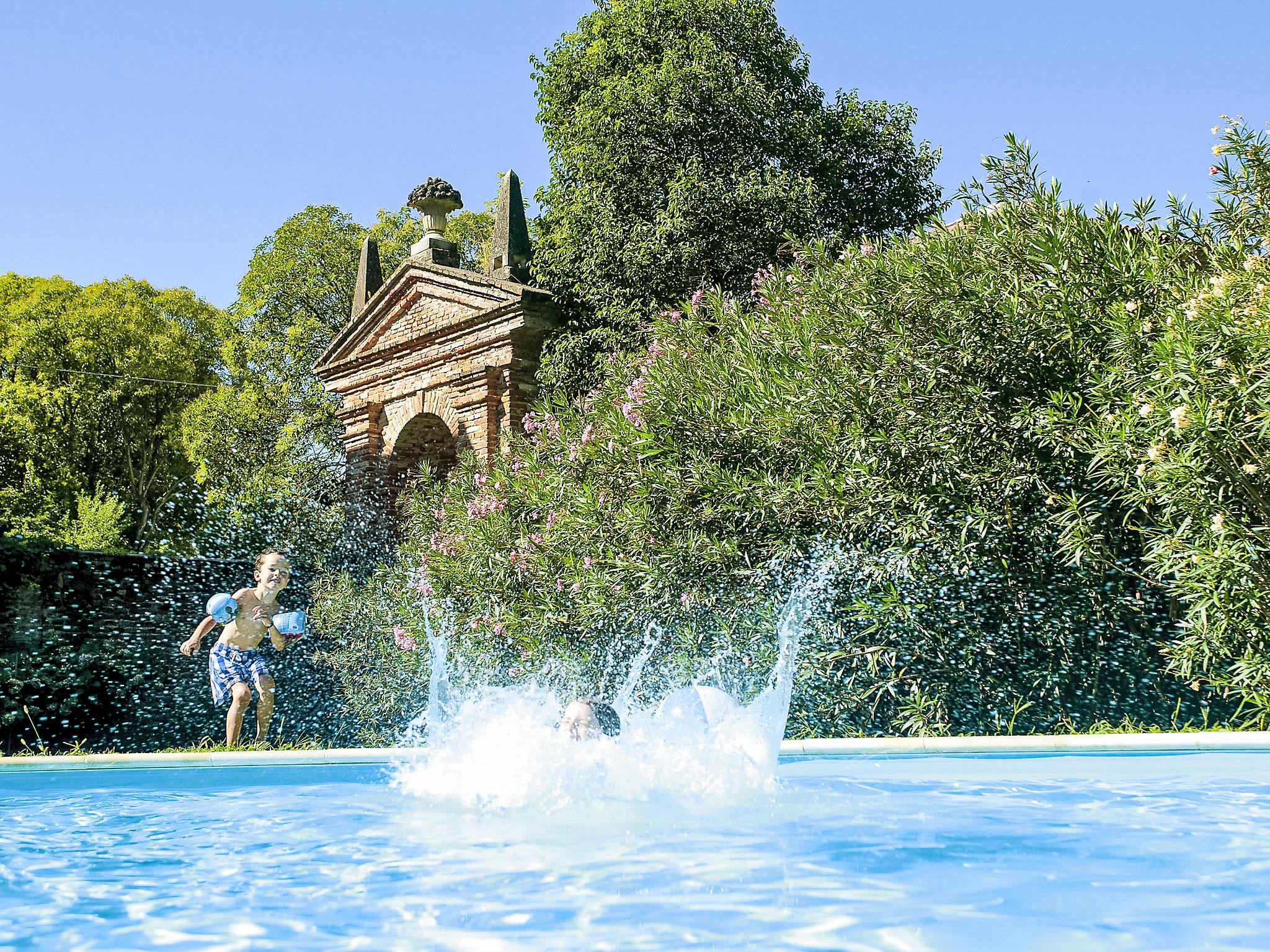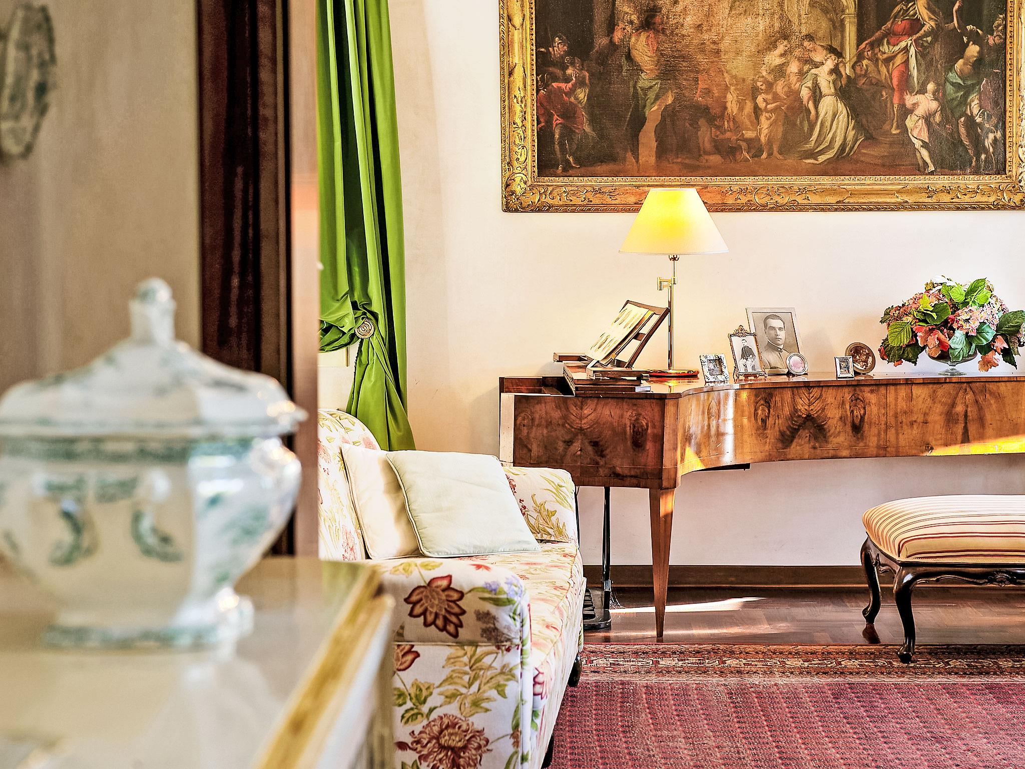 Schöne, historische Villa "Cà Marcello", auf 3 Stockwerken, einseitig angebaut, Baujahr 1550, umgeben von Feldern und Weinbergen. Ausserhalb des Ortes Levada di Piombino Dese, ruhige, sonnige Lage, im Grünen. Zur Mitbenutzung: Park 6 ha (eingezäunt) mit Rasen 2'000 m2, Blumen. Zur Alleinbenutzung: Garten 500 m2 (eingezäunt), Schwimmbad nicht einsehbar (9 x 6 m, 160 - 160 cm tief, saisonale Verfügbarkeit: 01.Mai. - 01.Okt.). Poolhaus mit Kühlschrank, Pergola, Gartenmöbel, Grill, Kinderspielplatz. Im Hause: Wireless LAN, Zentralheizung, Klimaanlage, Waschmaschine, Wäschetrockner, Heizung nur verfügbar von 15.Okt. - 15.Apr.. Wäschewechsel 1 mal wöchentlich. Handtuchwechsel 1 mal wöchentlich. Wohnungsreinigung 1 mal wöchentlich (inkl.). Koch möglich (extra). Parkplatz beim Haus. Einkaufsgeschäft 2 km, Lebensmittelgeschäft 500 m, Supermarkt 8 km, Restaurant 2 km, Fahrradverleih 1.5 km, Bushaltestelle 650 m, Bahnstation 6 km. Golfplatz (18 Loch) 15 km, Tennis 10 km, Radweg 300 m. Nahe gelegene Sehenswürdigkeiten: Treviso 16 km, Venezia 34 km, Padova 36 km, Verona 105 km. Geeignet für Events. Bitte beachten: Der Besitzer wohnt auf dem gleichen Grundstück. Autobahn 15 km vom Haus. Hauptstrasse 100 m vom Haus. Eisenbahnlinie 6 km vom Haus. Nacht Club/Disco 2 km vom Haus.