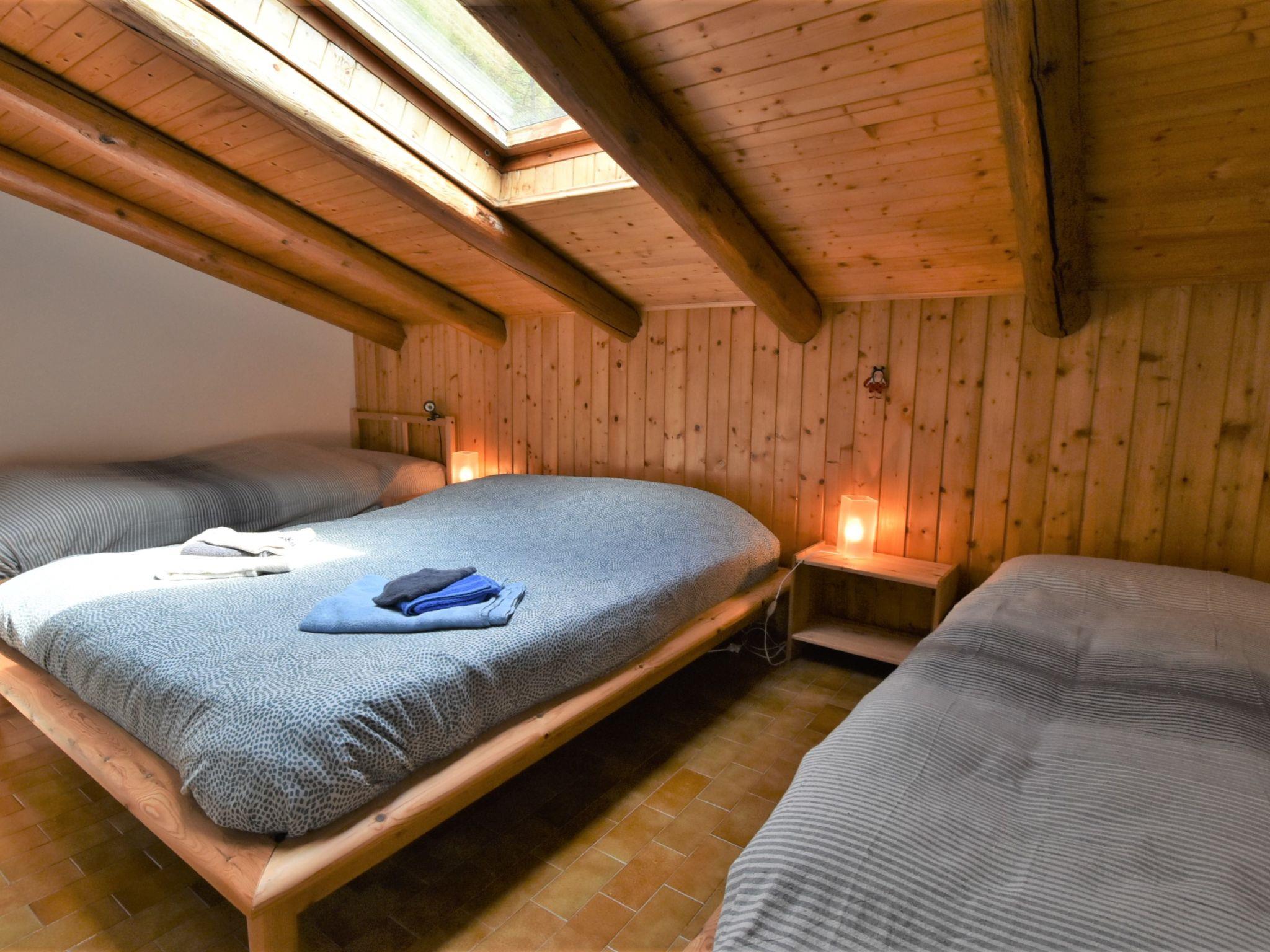 3-Zimmer-Wohnung 75 m2 im 3. Stock. Abgeschrägt, zweckmässig und komfortabel eingerichtet: Wohn-/Esszimmer, Deckenhöhe 135 - 290 cm mit offenem Kamin, Esstisch, TV und Flachbildschirm. 1 abgeschrägtes Zimmer, Deckenhöhe 135 - 220 cm mit Dachfenster, ohne Schrank mit 1 Bett und 1 Doppelbett. 1 abgeschrägtes Zimmer, Deckenhöhe 135 - 220 cm mit Dachfenster mit 1 Bett und 1 Doppelbett. Grosse Kochnische (Backofen, 4 Induktionskochplatten, Toaster, Wasserkocher, Mikrowelle, elektrische Kaffeemaschine). Sitzbad/Bidet/WC. Heizung. Heizung nur verfügbar von 01.11. bis 01.05. Sicht auf die Berge, das Tal und den Wald. Zur Verfügung: Waschmaschine, Kinderhochstuhl, Babybett. Internet (Wireless LAN, gratis). Bitte beachten: geeignet für Familien. Nichtraucher-Unterkunft. Kein Fahrstuhl. Es werden keine zusätzlichen Gebühren vor Ort fällig, ausgenommen der örtlichen Kurtaxe. IT017148C2HQCIAQG5