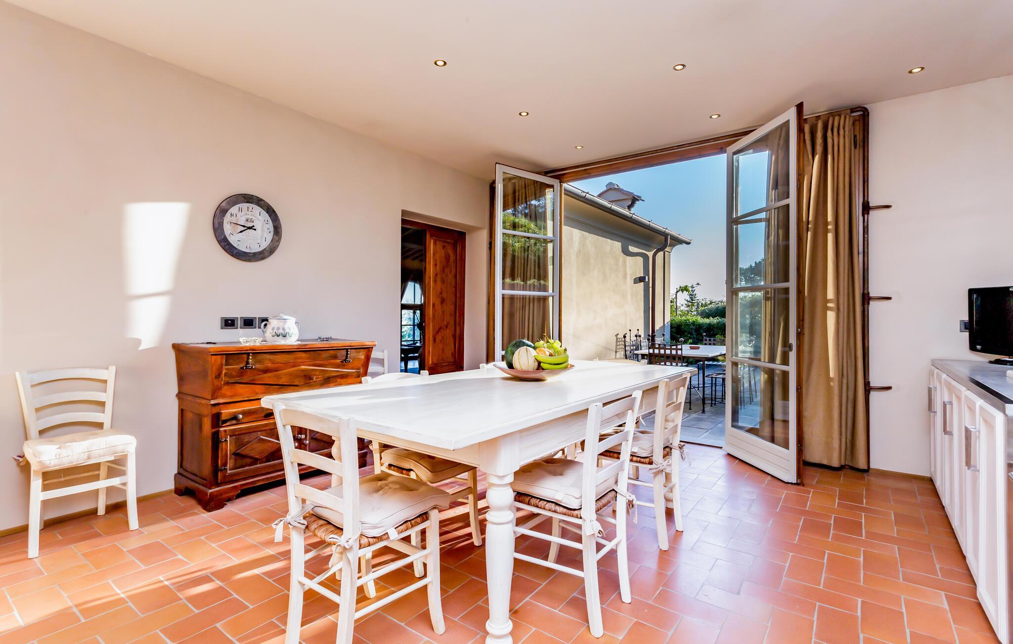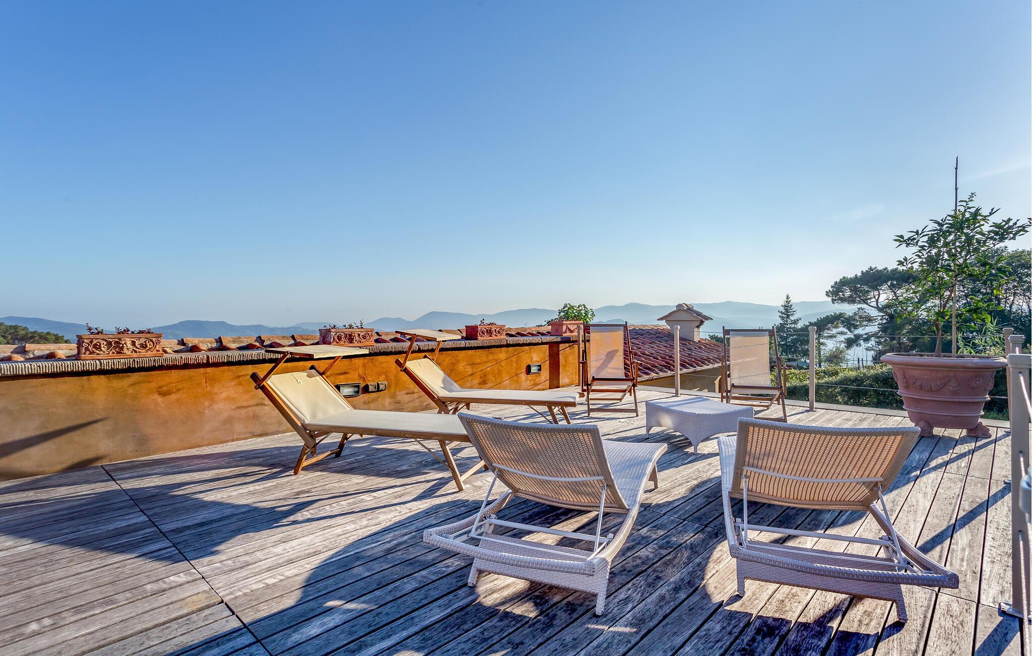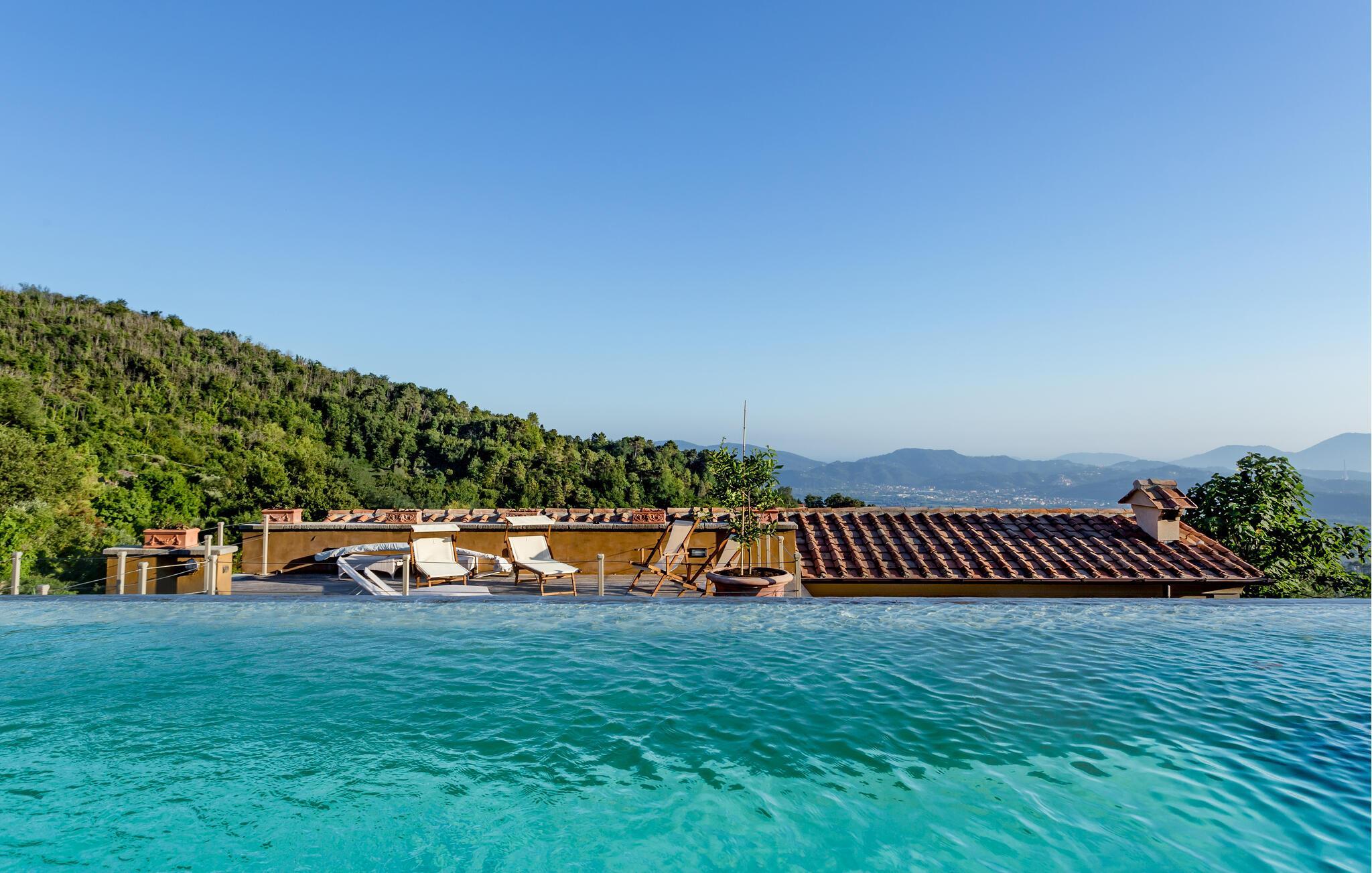 Dieser Ferienhausurlaub nahe La Spezia verspricht Erholung und unvergessliche Momente. Das luxuriöse anmutende und geräumige Ferienhaus liegt eingebettet in eine malerische Hügellandschaft und bietet einen atemberaubenden Blick auf die umliegenden Berge und Täler. Beginnen Sie Ihren Tag mit einem erfrischenden Bad in dem sagenhaften Pool. Die elegante Einrichtung des Hauses strahlt eine warme und einladende Atmosphäre aus. Machen Sie es sich im geräumigen Wohnzimmer gemütlich, das mit hochwertigen Möbeln und stilvollen Details ausgestattet ist. Bereiten Sie in der offenen Essküche köstliche Mahlzeiten zu und servieren Sie diese am Esstisch oder draußen auf der sonnigen Terrasse unter freiem Himmel.