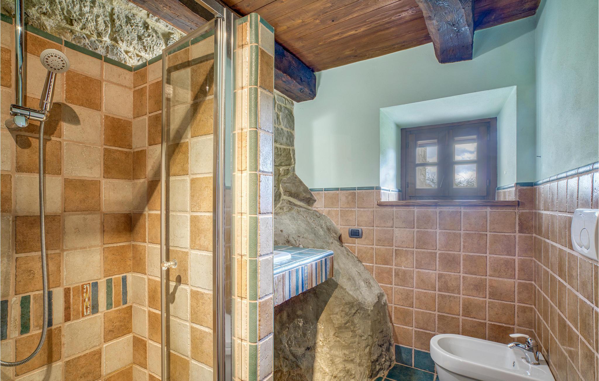 Etwa 5 km von Poppi, in malerischer Hügellage, liegt dieses freundliche Ferienhaus mit malerischem Rundumblick. Das ehemalige Bauernhaus wurde liebevoll restauriert und im toskanischen Landhaus-Stil eingerichtet, so dass Sie hier zum einen die rustikale Atmosphäre vergangener Zeiten als auch modernen Komfort genießen können. Beide Stockwerke können Sie ebenerdig betreten; im oberen befindet sich der zentrale Wohnbereich mit Küche und Esszimmer, Wohnzimmer mit offenem Kamin und Ausgang auf die Terrasse; Barbecue und eine weitere möblierte Terrasse auf dem privaten Grundstück, sowie der Poolbereich mit Panoramablick - hier können Sie sich bestens entspannen, baden, sonnenbaden, schmökern und den Ferientag bei einem Gläschen Rotwein genüsslich ausklingen lassen. Und falls Sie ein wenig Bewegung brauchen: Ihnen stehen verschiedene Spiele wie Tischtennis, Tischfußball, Boccia u.a. gemeinsam mit den Gästen des benachbarten Ferienhauses ITA045 zur Verfügung. Garage auf Anfrage. Ein Paradies nicht nur zum Entspannen sondern auch für Trekking und Exkursionen zu den Städtchen und Burgen des Casentino-Naturparks - – oder besuchen Sie den Zoo von Poppi! Eine der imposantesten Burgen finden Sie gleich im mittelalterlichen Poppi, einem reizenden Städtchen, wo es Ihnen gefallen wird, einen Cappuccino am Morgen, einen Aperitif am Abend – oder umgekehrt – einzunehmen. Gute Trattorien bieten lokale Gerichte, z.B. mit Steinpilzen oder Trüffel. Entdecken Sie Arezzo (45 km) mit seiner sehenswerten Altstadt - z.B. beim Bummeln durch den Corso, beim Besichtigen der sehenswerten Kathedrale, der romanischen Pieve, der Kirche San Francesco mit dem berühmten Freskenzyklus von Piero della Francesca - und natürlich beim Aperitif auf der Piazza Grande! Im Juni und September finden auf der Piazza Grande die traditionellen Reiterspiele des Saraceno statt; an jedem ersten Wochenende im Monat wird die ganze Altstadt vom großen nationalen Antiquitätenmarkt bunt belebt. Unasphaltierte Zufahrt 300m.
