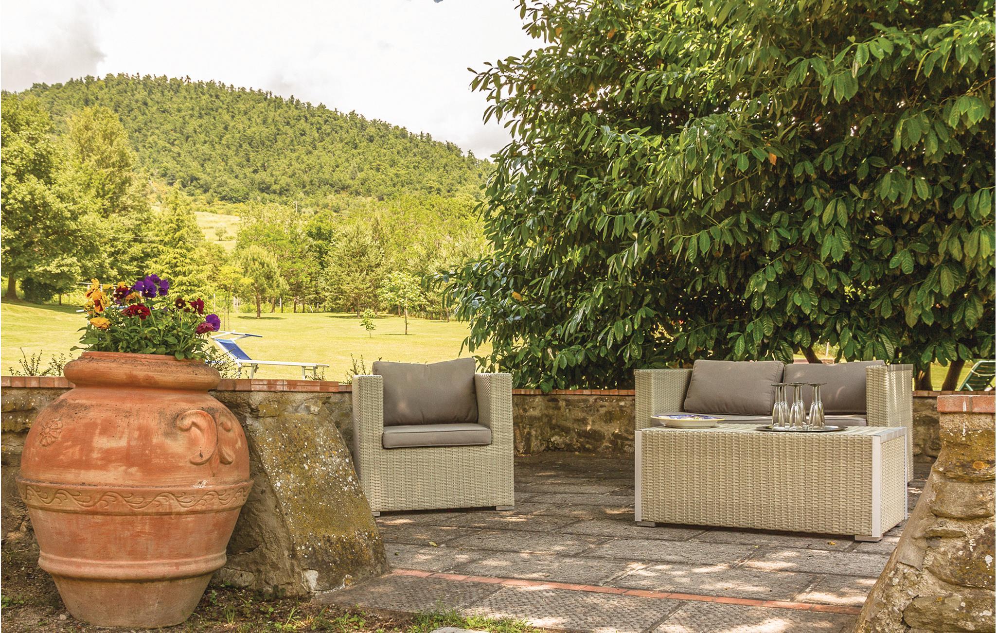 Im Casentino, nur 7 km von Poppi und Bibbiena entfernt, liegt dieses ehemalige Bauernhaus in einem ruhigen Seitental. Das Haus ist liebevoll eingerichtet: Im EG große Wohnküche mit offenem Kamin sowie zwei Schlafräume mit Bad; im 1. Stock - durch eine Außentreppe zu erreichen - weitere zwei Wohnräume mit Kamin, zwei Schlafzimmer und Bad. Auf dem großzügigen, gepflegten Grundstück gibt es alles, was das Herz begehrt: Eine romantische Terrasse mit Barbecue, einen Pizzaofen, Platz für Ballspiele und Cricket, eine sonnenbeschienene Liegewiese und einen Whirlpool (für 6 Personen) zum vollkommenen Relaxen. Der Garten grenzt zudem an einen Wasserlauf, der in nur hundert Metern Entfernung eine natürliche Badestelle mit Wasserfall zu bieten hat - ein spannendes Badeerlebnis, das vor allem Kindern in Erinnerung bleiben wird. Das Grundstück ist umgeben von den weiten unberührten Wäldern des Casentino-Nationalparks, die zum Wandern einladen. In 8 km Entfernung erreicht man das Kloster Camaldoli in über 1000m Höhe - ein ideales Ziel für heiße Sommertage; zu entdecken sind aber auch die malerischen Burgen und Städtchen des Casentino. Florenz und Arezzo sind innerhalb einer Stunde Fahrt (50-60 km) zu erreichen. Nächste Ortschaft mit Geschäften ist Soci (3km). Das Grundstück grenzt an das von ITA106. Anreise ausschließlich 16 - 19 Uhr.