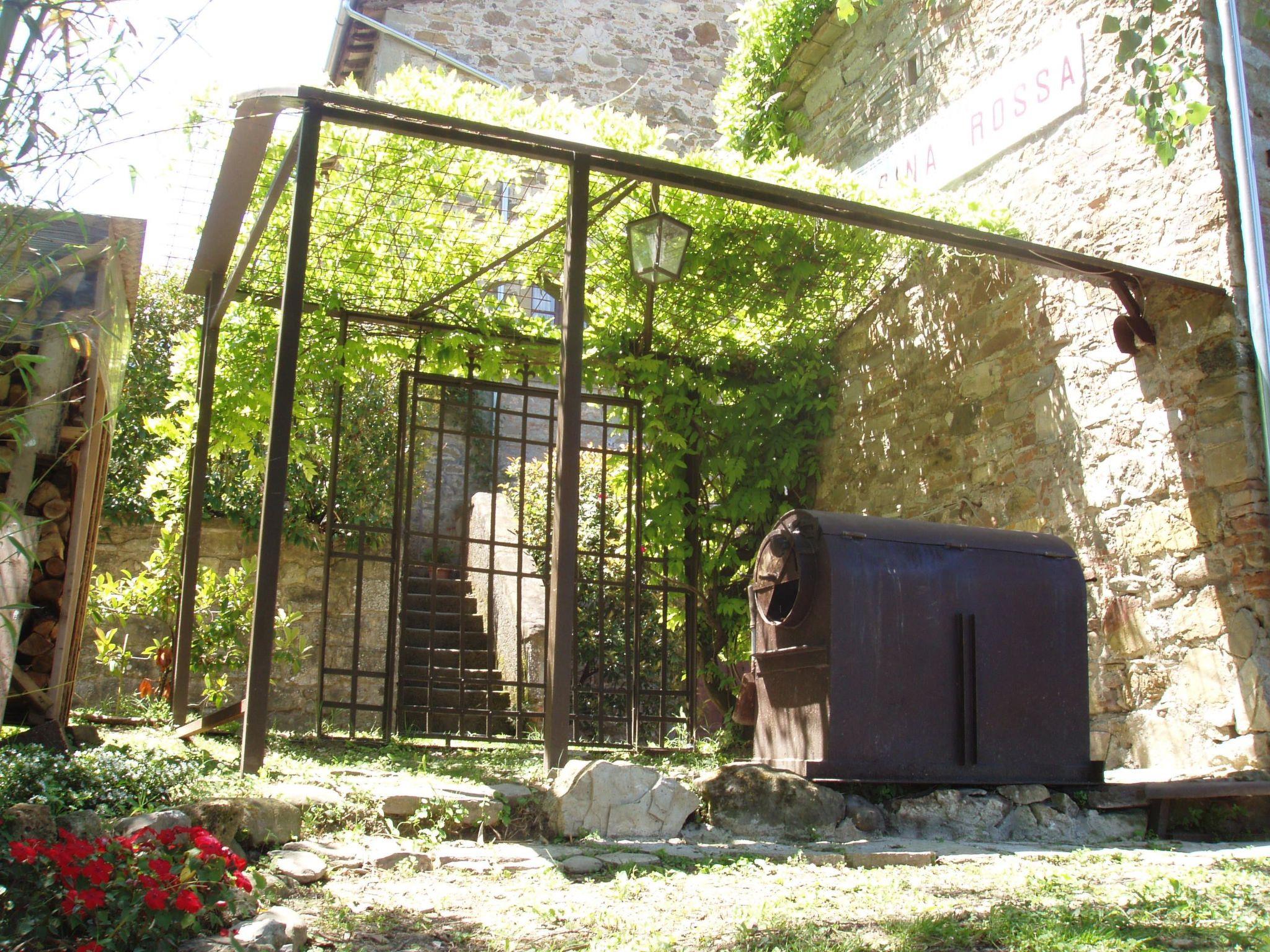 Außenbalkon mit Panoramablick auf die Burg von Poppi, die umliegenden Hügel und das Franziskaner-Heiligtum "La Verna". Kleiner privater Innenhof mit Pergola und Grill, Parkplatz und Fahrradschuppen vorhanden.