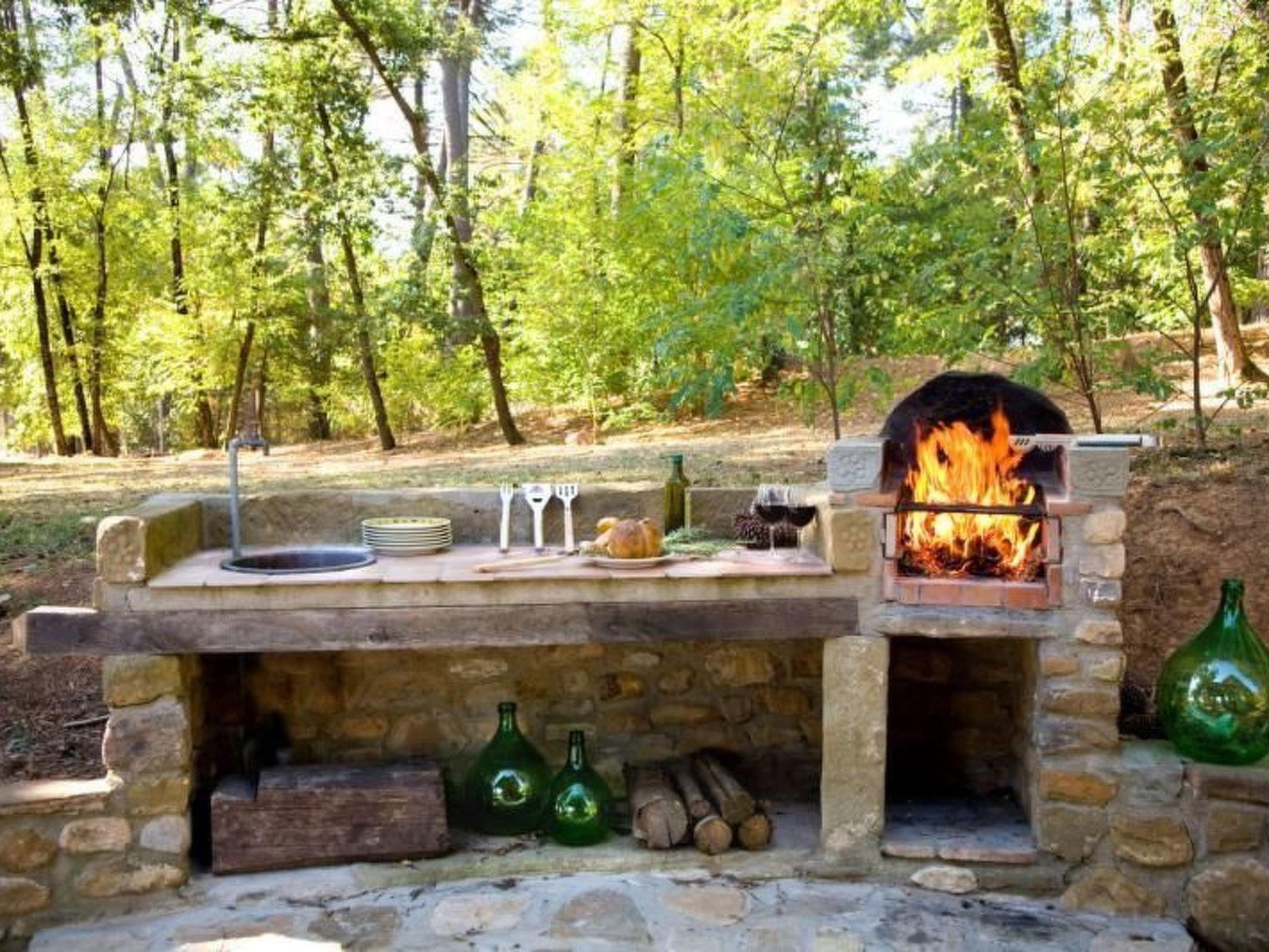 Im Außenbereich gibt es zwei Loggias. Die erste, etwa 25 Quadratmeter groß, ist direkt von der Küche aus zugänglich, verfügt über einen antiken Holzofen und ist mit Tisch und Stühlen ausgestattet. Da sie beleuchtet ist, ist sie ideal für Mahlzeiten im Freien. 2 m von der Loggia entfernt, gegenüber, immer entlang des Gehwegs des Hauses (behindertengerecht), befindet sich die Grillecke mit Spüle, Arbeitsplatte und Grill. Die zweite Loggia von ca. 25 m², ideal für romantische Abende bei Kerzenschein in den kälteren Monaten des Jahres, wurde vor kurzem auf allen Seiten mit modernsten Vorrichtungen geschlossen, beheizt und mit einer bequemen Hydromassagewanne für fünf Personen ausgestattet, die mit Chromotherapie und Musik versehen ist, um den herrlichen Blick auf das Casentino-Tal zu genießen. 30 m vom Eingang der Villa entfernt befindet sich ein großes Schwimmbad (5 x 12 m) mit einer römischen Treppe, komplett gepflastert und mit einer behindertengerechten Dusche ausgestattet. Das Solarium ist mit einer Pergola mit Sofas und einem Kartentisch, Liegestühlen, Stühlen und Sonnenschirmen ausgestattet. Das Panorama ist herrlich, mit Blick auf das Schloss Poppi und den Sacro Monte de la Verna. Gegenüber befindet sich ein Spielplatz für Kinder und Erwachsene mit Tischtennisplatte. Ein Teil des Anwesens ist ein Park mit Eichen, Kastanienbäumen, Steineichen, Akazien und jahrhundertealten Kiefern, in dem die Gäste zu jeder Jahreszeit in eine Umarmung aus Farben, Düften und Früchten verwickelt werden und in dem man sich in einer direkten, einfachen und wahren Beziehung mit der Natur fühlen kann. Wenn man den Park durchquert, in dem man wilde Kaninchen, Eichhörnchen, Schleiereulen und Bussarde beobachten kann, kommt man vor der Villa an, die in ihrer beherrschenden Lage authentische Bilder des Casentino-Tals bietet: im Osten die Wallfahrtskirche von Verna, im Westen das mittelalterliche Schloss von Poppi, im Süden die Pratomagno-Kette und im Norden den tausendjährigen Casentino-Wald, der heute ein Nationalpark ist.