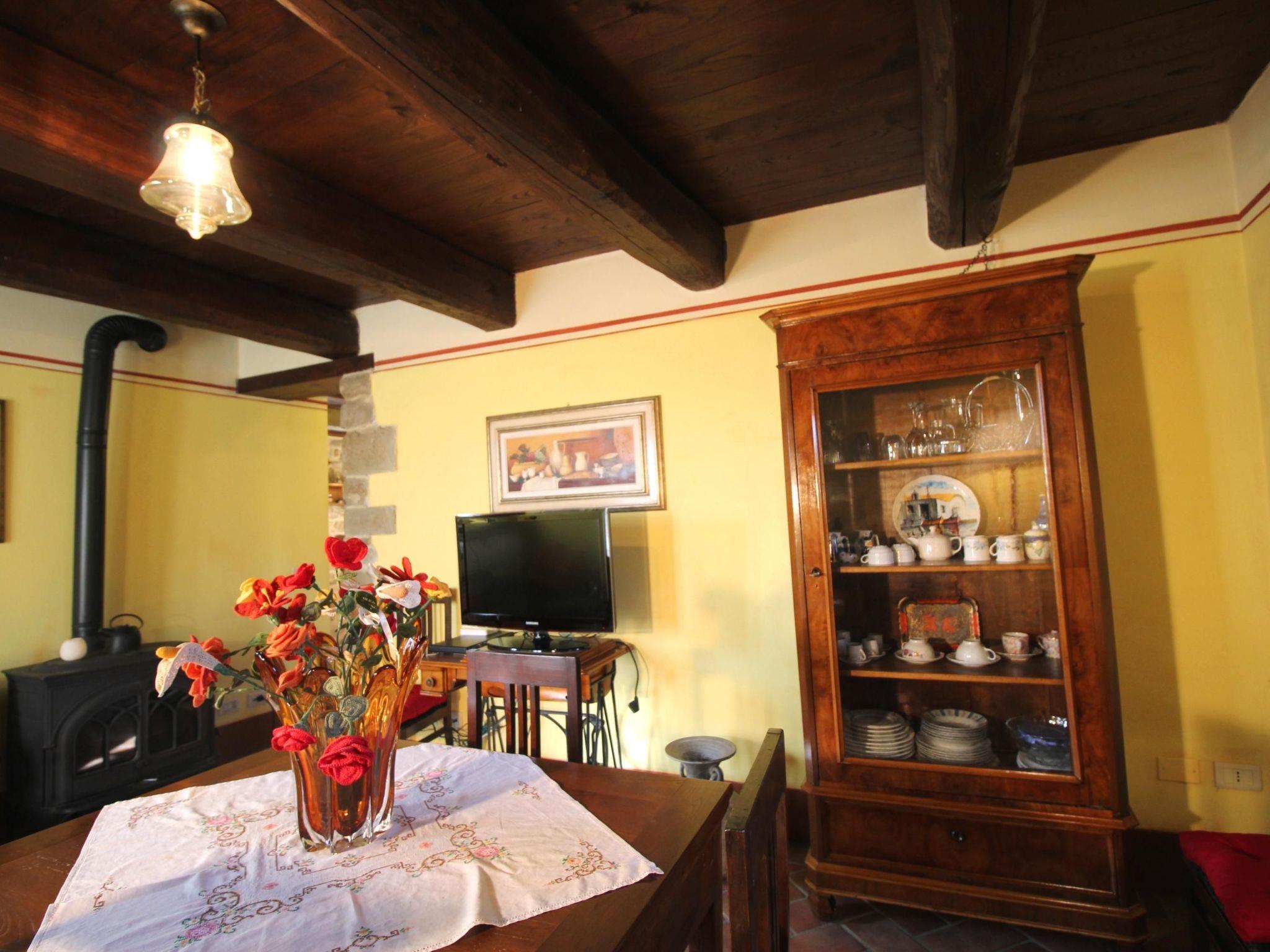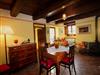 Die Wohnung erstreckt sich über eine Fläche von etwa 60 Quadratmetern, die sich im Erdgeschoss eines alten Gebäudes aus dem Jahr 1800 befindet, wo die Eigentümer im Obergeschoss wohnen. Die Wohnung kann bis zu drei Personen beherbergen und hat zwei unabhängige Eingänge: von der Küche und vom Wohnzimmer aus. Die gemütliche und charakteristische Küche ist mit einem Fünf-Flammen-Herd, einer Dunstabzugshaube, einem Elektrobackofen, einer Spüle, einem Kühlschrank mit Gefrierfach und Arbeitsplatten ausgestattet. Das Wohnzimmer ist mit zwei Sesseln, einem gusseisernen Holzofen, Satellitenfernsehen, einem Esstisch, Stühlen und einer antiken Vitrine ausgestattet. Das Doppelschlafzimmer und das Einzelzimmer haben ein verdunkelbares Fenster. Das Badezimmer hat eine Dusche, Toilette, Bidet und Waschbecken. Die Wohnung ist mit allen notwendigen Wäschestücken ausgestattet.