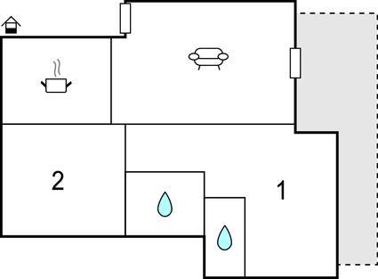 Badezimmer (nr. 2) - WC. Warmes und kaltes Wasser. Dusche