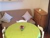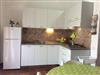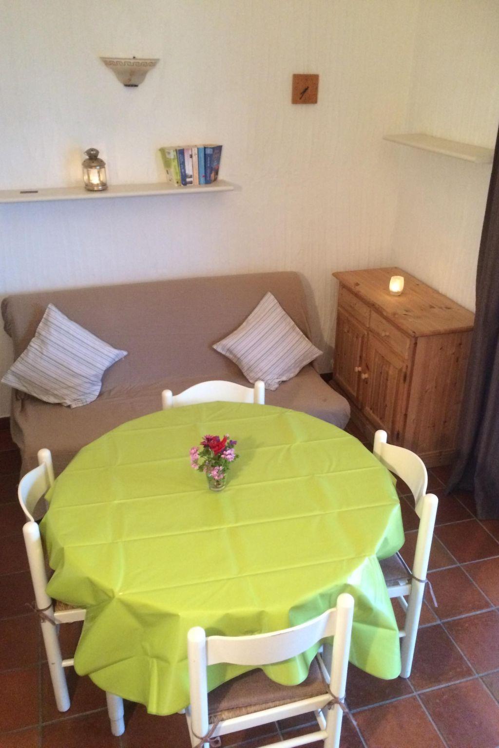 Das circa 50 qm große Ferienhaus ist für vier Personen geeignet. Es verfügt über eine Wohnküche mit offenem Kamin und einem Sofa. Des Weiteren gibt es einen Essbereich mit TV, hinter dem sich die Küchenzeile befindet. Diese ist mit Gasherd und Kühlschrank mit Gefrierfach ausgestattet. Die Klimaanlage in der Küche ist so positioniert, dass bei offenen Türen der Schlafräume die kühle Luft auch die Schlafzimmer erreicht und für angenehme Temperaturen sorgt. Über drei Stufen erreicht man das Duschbad und ein Schlafzimmer mit einem Doppelbett (Breite 160 x190cm) sowie ein weiteres Schlafzimmer mit zwei Einzelbetten (80 x 190cm). Das gemütliche kleine Reihenhaus ist ideal für Familien mit Kindern, aber auch Pärchen fühlen sich hier wohl.