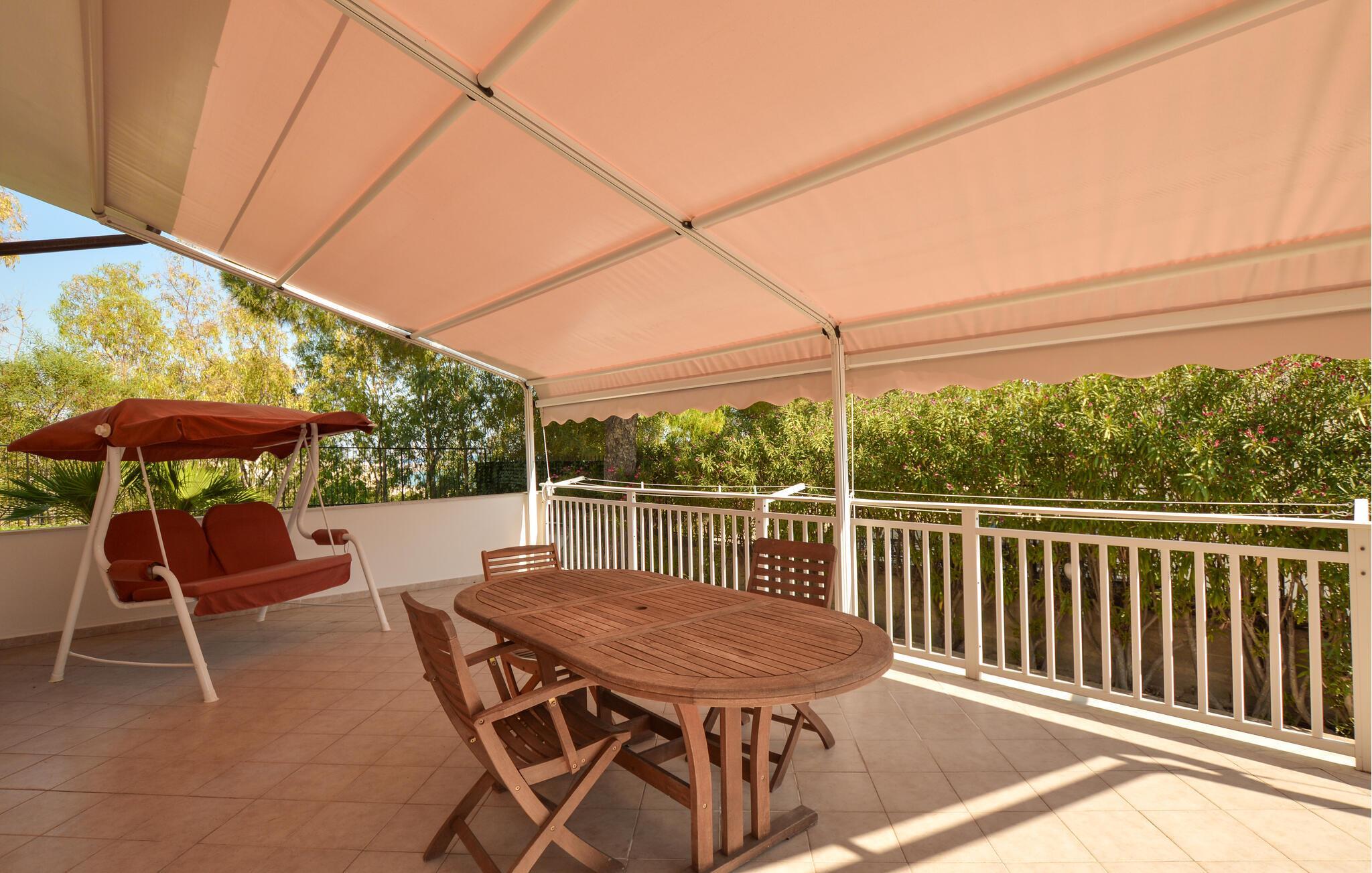 Die herrliche, dank einer großen Markise beschattete Terrasse ist der ideale Ort für ein ausgiebiges Frühstück im Freien. Lassen Sie die Seele auf der Hollywoodschaukel baumeln und plaudern Sie abends bei Wein und Kerzenschein in die warme Sommernacht hinein.