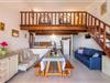 In der 2. Etage: (Wohnzimmer(Doppelschlafcouch, TV, Esstisch), offene Küche(Kochplatte, Kühl-/Gefrierkombination, Waschbecken, Waschmaschine), Schlafzimmer(Doppelbett), Schlafzimmer(Einzelbett, Einzelbett), Galerieschlafzimmer(Einzelbett, Einzelbett), Badezimmer(Dusche, Waschbecken, Toilette, Bidet), Klimaanlage, Terrasse, Gartenmöbel) Parkplatz