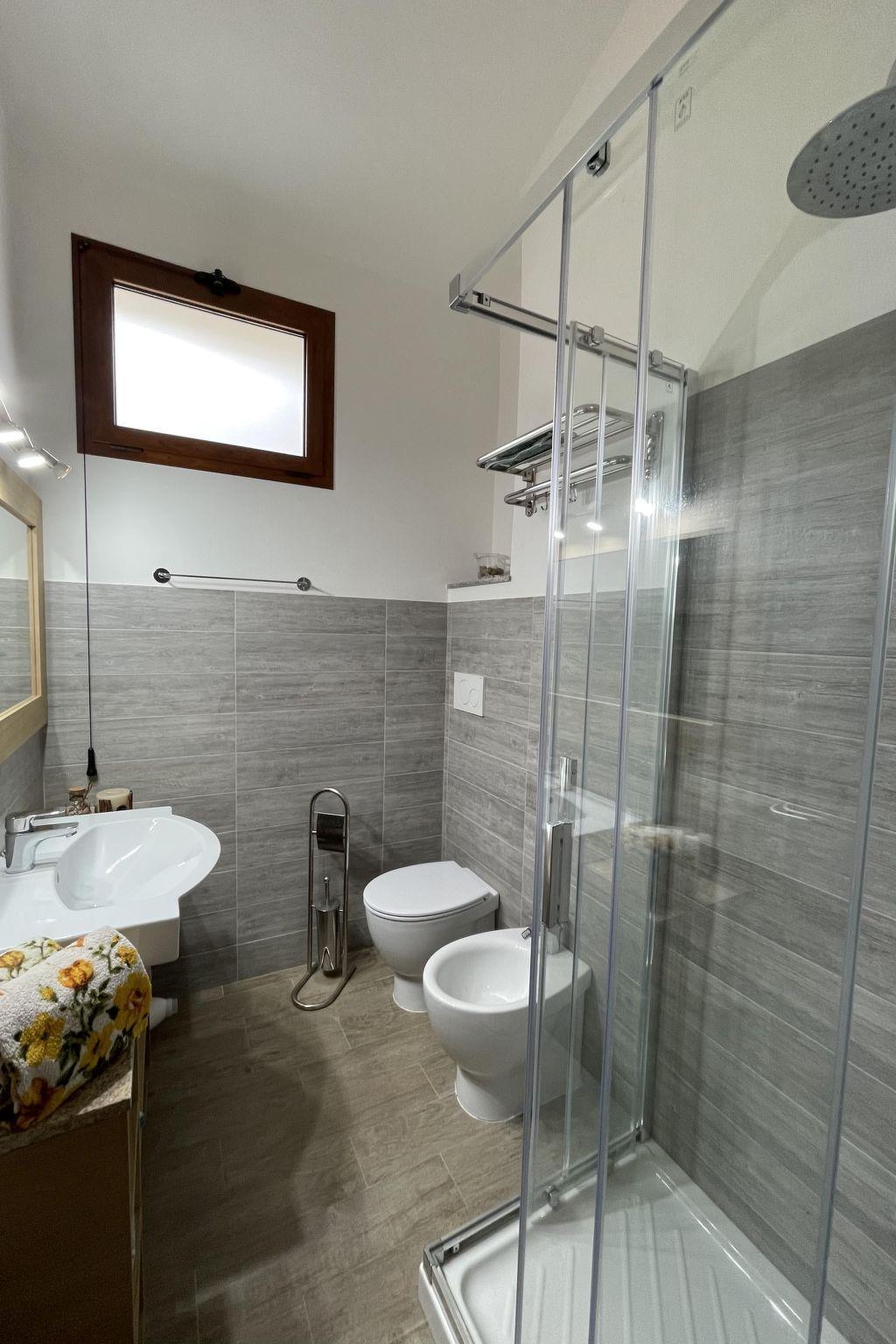 Das alte Gebäude wurde 2021 komplett renoviert, wobei der ursprüngliche Stil des ehemaligen Gästehauses der alten Gemeinde von Don Gelmini beibehalten wurde. Vom großen Park mit mediterraner Macchia und Sukkulenten gelangt man in die Struktur, die sich auf den Hügel öffnet, von dem aus man einen 180°-Blick auf den gesamten Golf hat. Über den großen Innenhof mit Entspannungs- und Essbereich gelangt man in die Wohnung, in der sich eine große, moderne, voll ausgestattete Küche und ein Fernsehbereich befinden. Dazu kommen 3 Doppelschlafzimmer und 2 Bäder mit Dusche. Das gesamte Anwesen ist mit Wi-Fi-Anschluss und Klimaanlage ausgestattet. Haustiere sind nicht erlaubt.