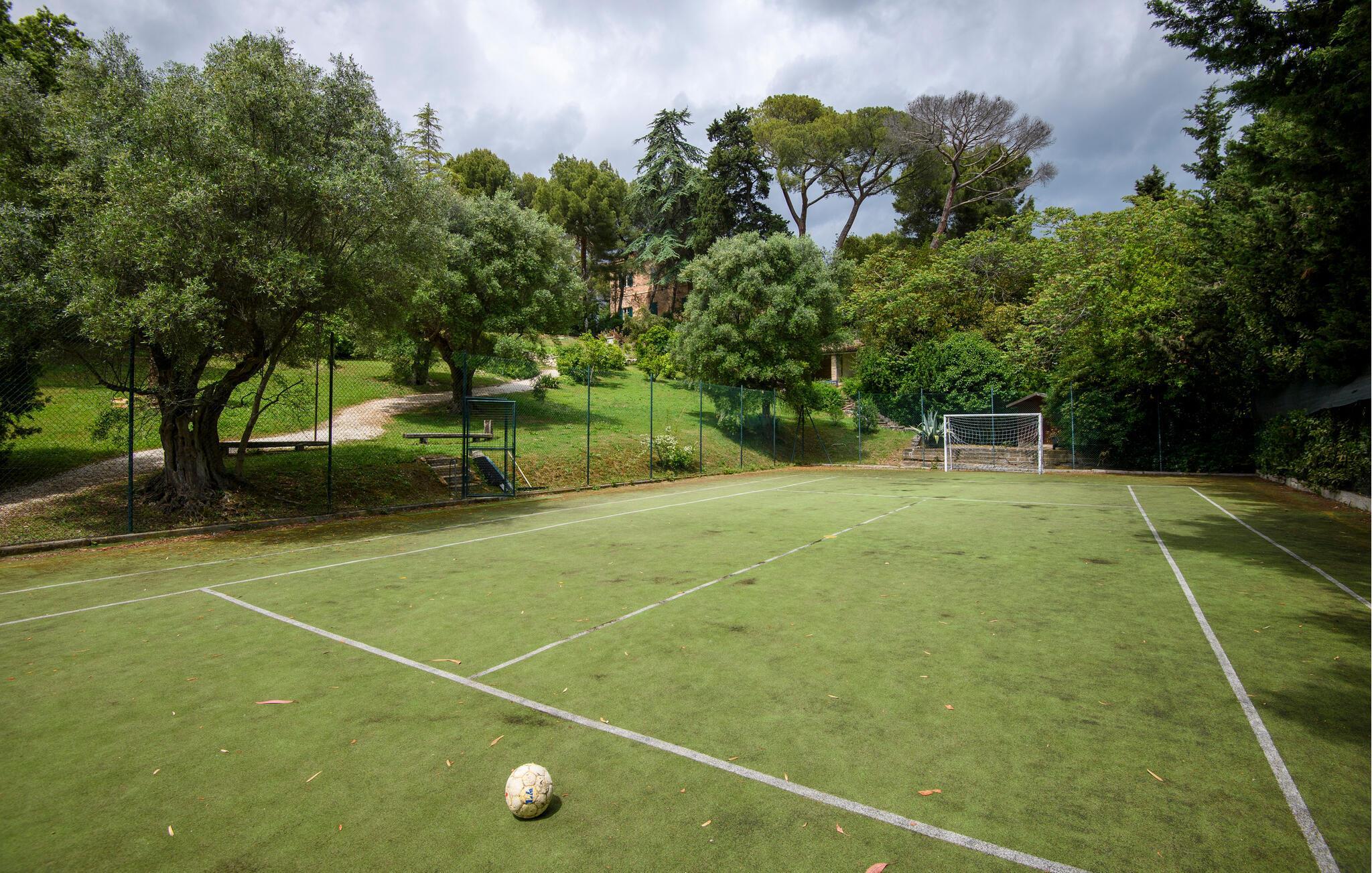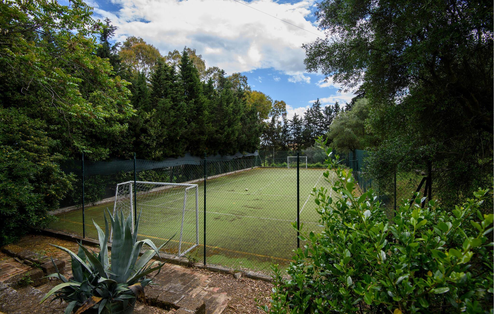 Schlendern Sie entlang der gepflegten Wege des weitläufigen Gartens und lassen Sie sich von der ruhigen Umgebung verzaubern. Spielen Sie eine Partie Basketball oder Fußball auf dem großen Außenbereich oder nutzen Sie den gemeinsamen Tennisplatz für eine sportliche Herausforderung.