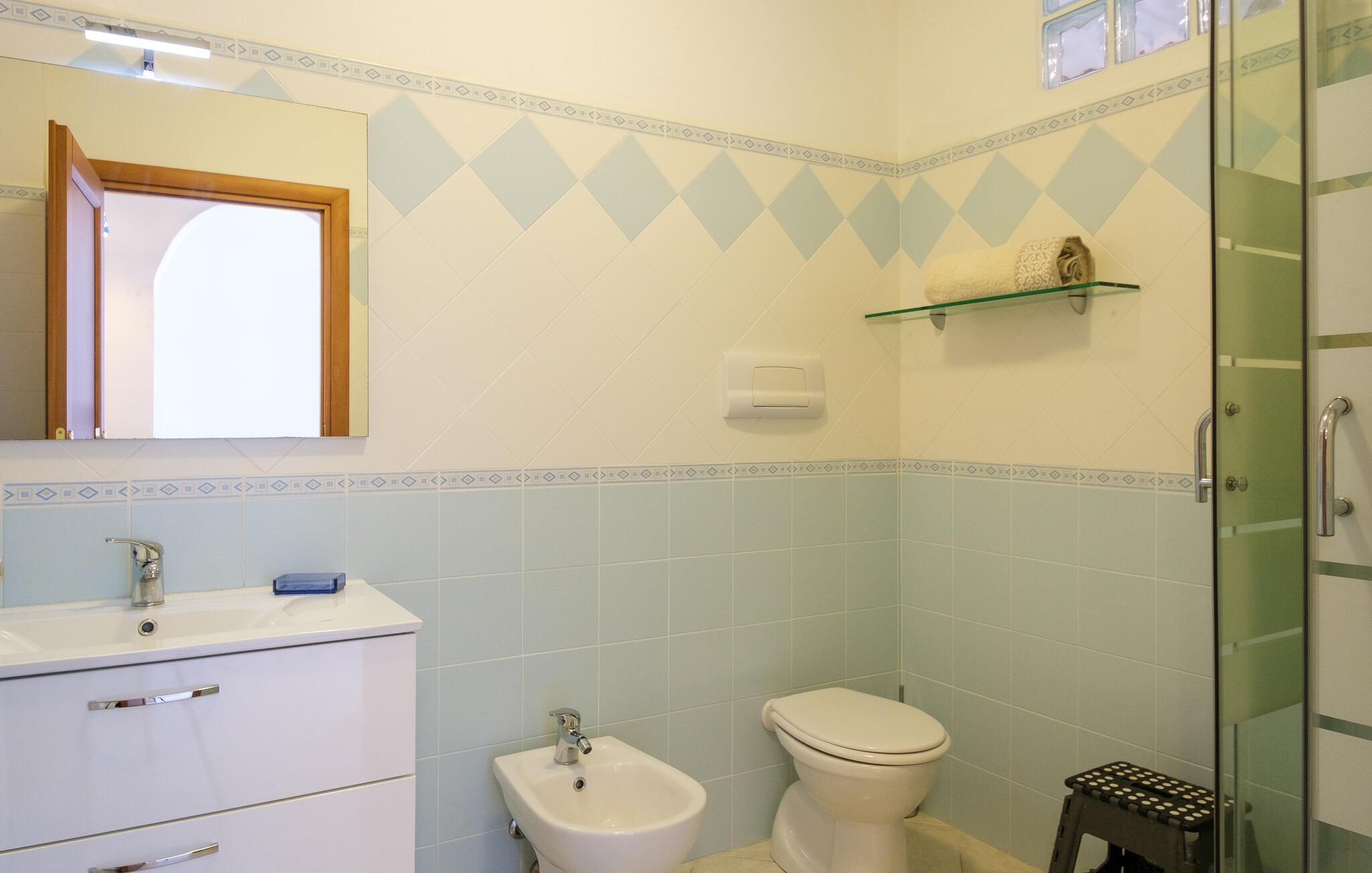 Dieses helle Ferienhaus mit Platz für Ihre Familie ist die ideale Basis für Ihren Sommerurlaub auf Sardinien. Die Küche hat direkten Zugang zur überdachten Terrasse, auf der Sie Ihre Mahlzeiten oder einfach nur eine gute Tasse Kaffee genießen können. Das eine Schlafzimmer hat Zugang zum schön bewachsenen Garten.
