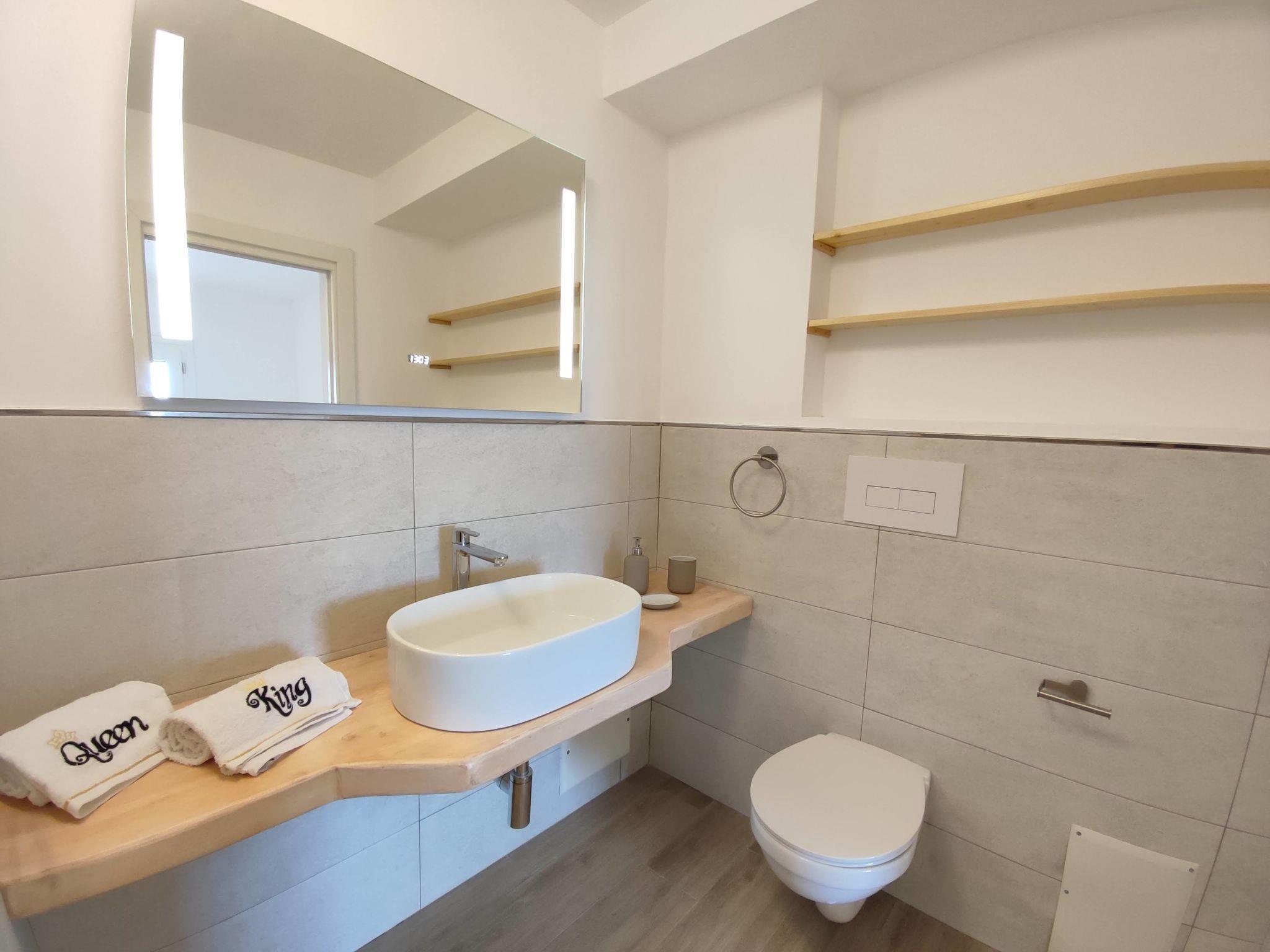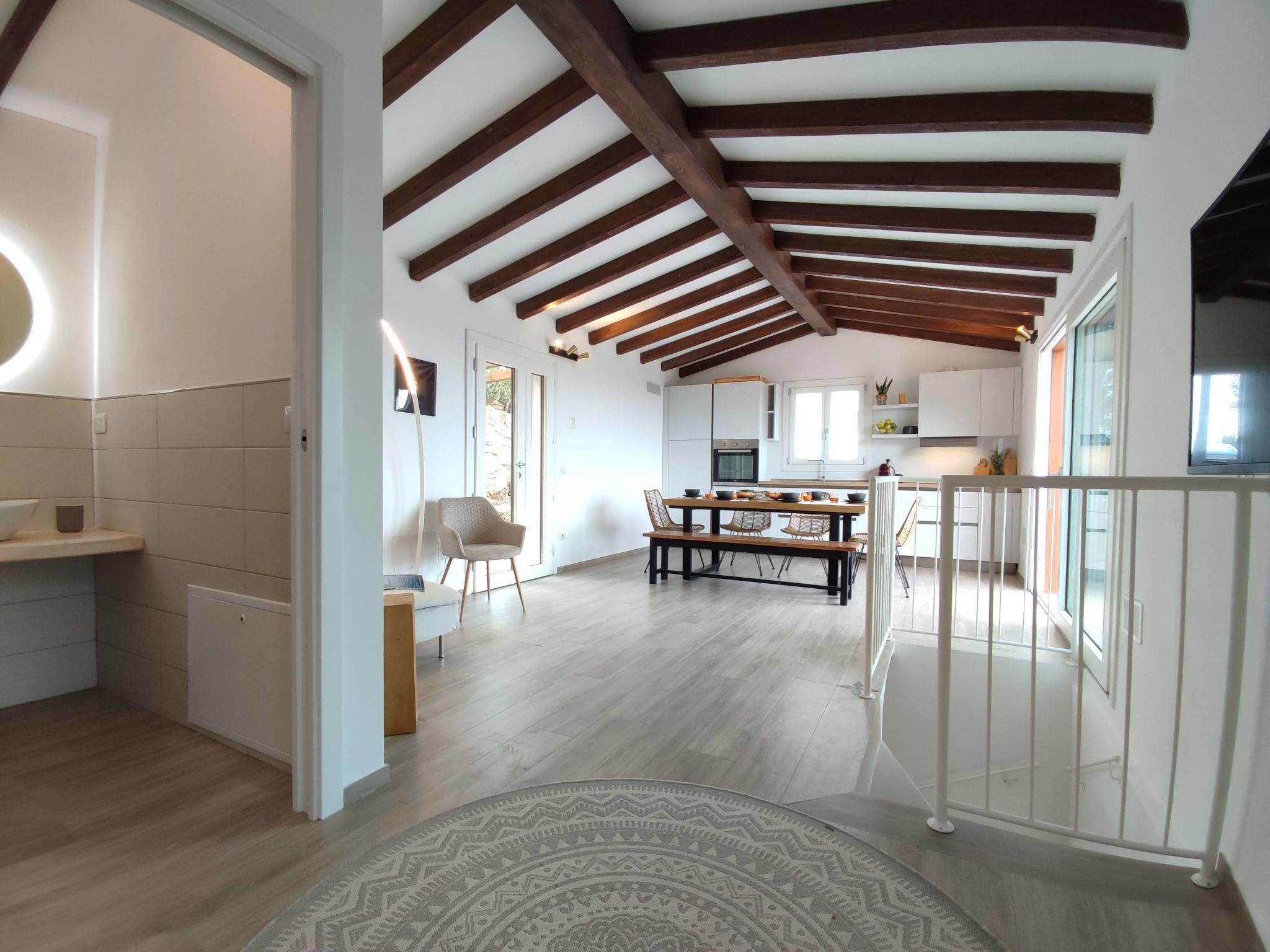4-Zimmer-Villa 90 m2 auf 2 Stockwerken. Modern und gemütlich eingerichtet: Wohn-/Esszimmer mit Esstisch und TV. Ausgang zum Garten, zur Terrasse. Kochnische (Backofen, Geschirrspüler, 4 Induktionskochplatten, elektrische Kaffeemaschine, Kapseln für die Kaffeemaschine (Nespresso)). Dusche/Bidet/WC. Fussbodenheizung, Boiler. Unteres Geschoss: 1 Zimmer mit begehbarem Kleiderschrank mit 1 Doppelbett und Dusche/WC. Ausgang zur Terrasse. 1 Zimmer mit 1 Doppelbett und Dusche/WC. Ausgang zur Terrasse. 1 Zimmer mit begehbarem Kleiderschrank mit 1 Doppelbett. Ausgang zur Terrasse. Terrasse 33 m2, kleine Terrasse 14 m2. Terrassenmöbel. Sehr schöne Fernsicht auf das Meer und die Ortschaft. Zur Verfügung: Waschmaschine, Bügeleisen, Haartrockner. Internet (WLAN, gratis). Bitte beachten: Nichtraucher-Haus. Eigener Eingang. Bei Belegung mit weniger Personen als der maximalen Personenzahl stehen nicht alle Schlafzimmer zur Verfügung. IT090084C2000R3352