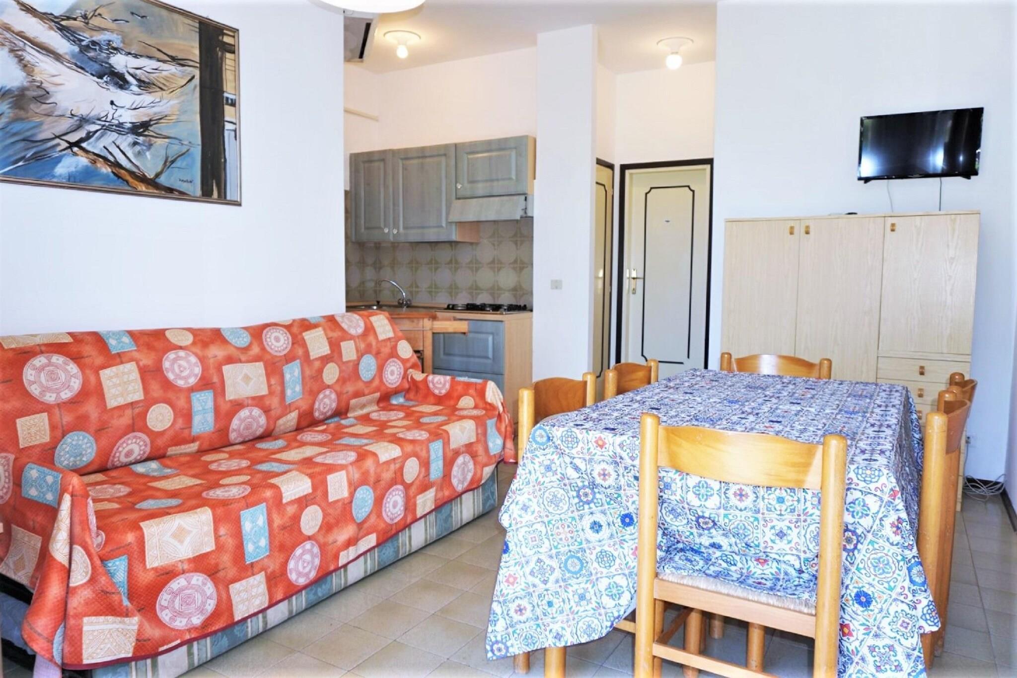Familienapartment mit privatem Garten Dieses haustierfreundliche Apartment im Erdgeschoss in Porto Santa Margherita ist ideal für einen erholsamen Urlaub am Meer. Das geräumige Wohnzimmer verfügt über einen Fernseher, einen Esstisch und eine gemütliche Sitzecke. Die offene Küche ist komplett ausgestattet mit Herd, Dunstabzugshaube, Mikrowelle, Kühlschrank und Waschbecken – ideal für gemütliche Mahlzeiten mit Familie oder Freunden. Bequeme Schlafplätze für größere Gruppen Mit zwei Schlafzimmern bietet das Apartment bequem Platz für Gäste. Ein Schlafzimmer verfügt über ein Doppelbett, das zweite über zwei Einzelbetten und ein Etagenbett – ideal für Kinder oder Gruppen. Das Badezimmer ist mit Dusche, Waschbecken, WC und Bidet ausgestattet. Die Klimaanlage sorgt auch in den wärmeren Monaten für ein angenehmes Raumklima. Outdoor-Spaß & Top-Lage Genießen Sie Ihre private Terrasse und Ihren Garten zum Essen im Freien oder Sonnenbaden. Gäste haben außerdem Zugang zum gemeinschaftlich genutzten Außenpool (geöffnet von Mai bis September). Mit Parkplätzen vor Ort und dem nur 240 Meter entfernten Restaurant Riva sind Sie ideal für einen komfortablen Aufenthalt in Venetien.