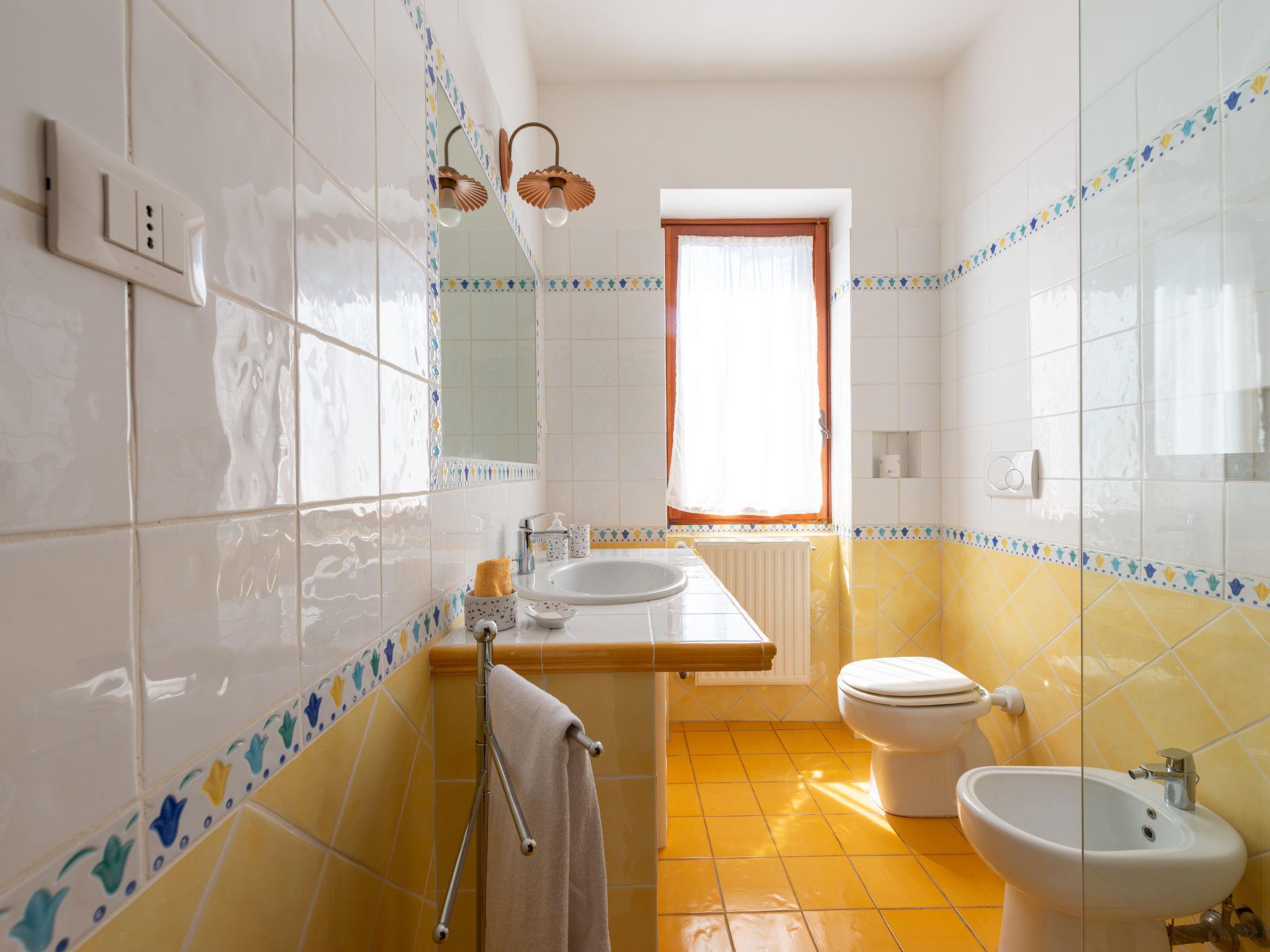 "Sole", 5-Zimmer-Doppelhaushälfte 160 m2, im Erdgeschoss. Geräumig, rustikal und gemütlich eingerichtet: grosses Wohnzimmer mit Panoramafenster mit offenem Kamin und TV (Flachbildschirm). Ausgang zur Loggia. 3 Doppelzimmer. 1 Zimmer mit 2 Betten. Offene Küche (Backofen, Geschirrspüler, 4 Flammen, Toaster, elektrische Kaffeemaschine). Ausgang zur Loggia. 2 Duschen/Bidet/WC. G-Heizung. Grosse Terrasse 38 m2, überdacht, Garten, Rasen. Terrassenmöbel, Liegestühle, Loggia. Herrliche Sicht auf das Meer. Zur Verfügung: Waschmaschine, Bügeleisen, Fliegengitter, Kinderhochstuhl, Babybett bis 2 Jahre. Internet (Wireless LAN, gratis). Parkplatz (2 Autos) beim Haus. Bitte beachten: Nichtraucher-Unterkunft. Eigener Eingang, Rauchmelder. IT053016C2NT4MWW6W
