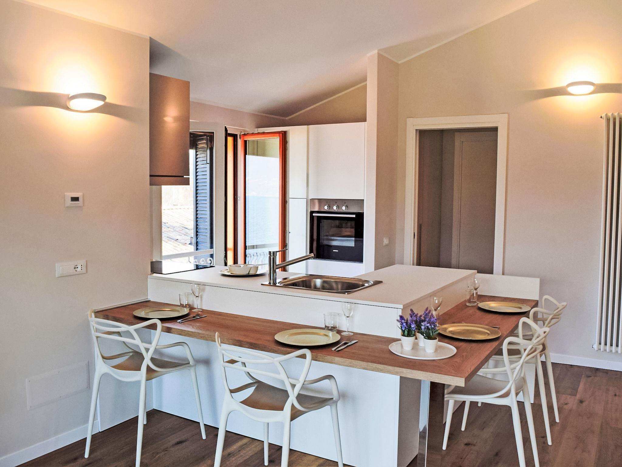 2-Zimmer-Wohnung 50 m2 im 2. Stock. Vollständig renoviert im Jahre 2018, komfortabel und modern eingerichtet: Wohn-/Esszimmer mit 1 Doppeldiwanbett, Sat-TV und elektrischem Rollladen. Ausgang zur Terrasse. 1 Zimmer mit 1 Bett und TV. Kochnische (Backofen, Geschirrspüler, 4 Induktionskochplatten, Tiefkühler, elektrische Kaffeemaschine). Dusche/Bidet/WC. Heizung (extra). Heizung nur verfügbar von 15.10. bis 15.04. Parkettboden. Terrasse 8 m2, überdacht. Terrassenmöbel. Sicht auf den See und den Garten. Zur Verfügung: Waschmaschine, Safe. Parkplatz (überdacht). IT012114C28XDZNTYJ