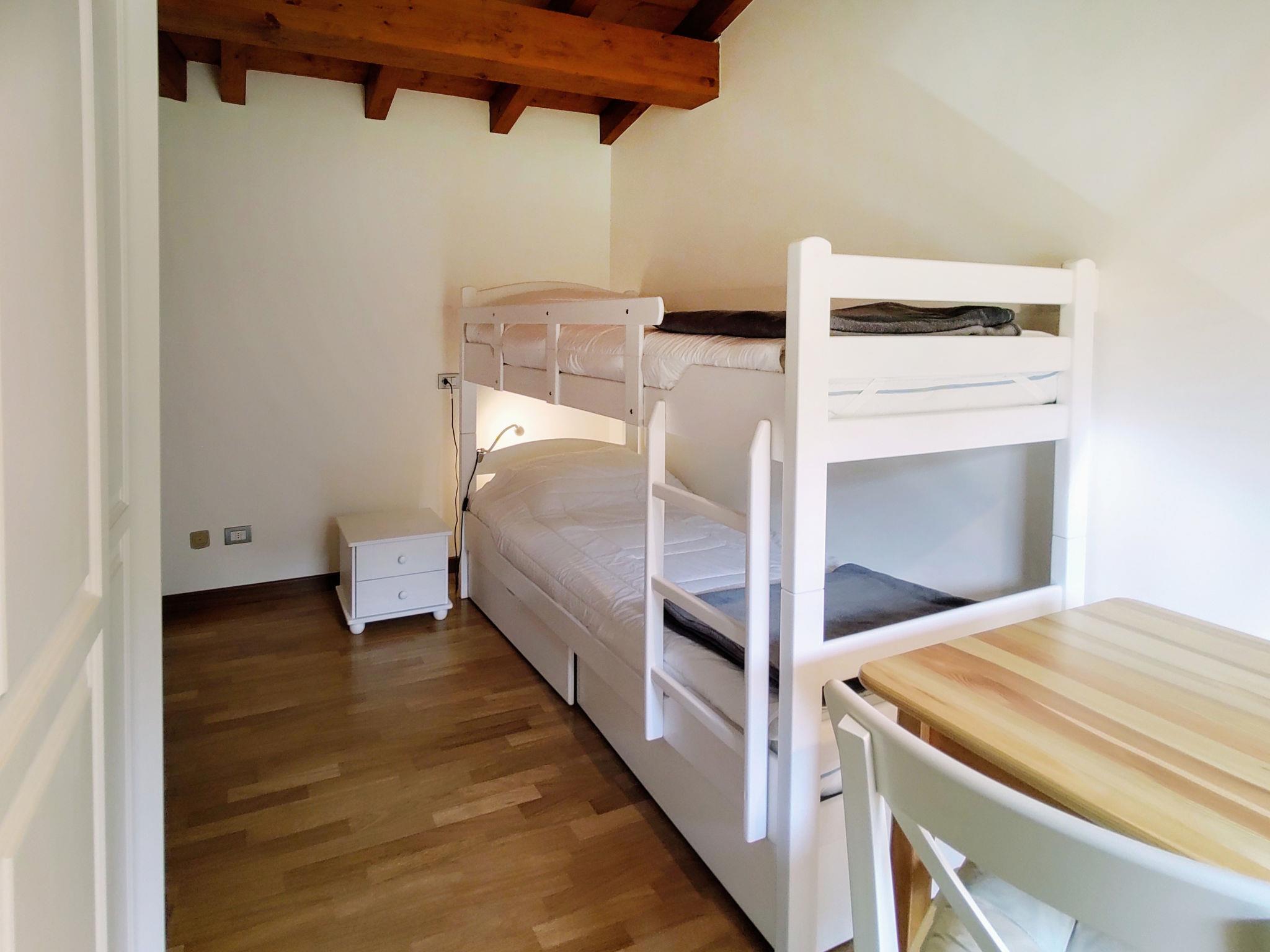 3-Zimmer-Wohnung 75 m2, im Dachgeschoss, Westlage. Hell, teilweise abgeschrägt, modern und stilvoll eingerichtet: Wohn-/Esszimmer mit Esstisch und Sat-TV. Ausgang zum Balkon. 1 Doppelzimmer. Ausgang zum Balkon. 1 Zimmer mit 1 x 2 Etagenbetten. Ausgang zum Balkon. Offene Küche (Backofen, Geschirrspüler, 4 Glaskeramikplatten, Toaster, Wasserkocher, Mikrowelle, elektrische Kaffeemaschine). Bad/WC, Dusche/WC. G-Heizung. Parkettboden. Grosser Balkon 30 m2, kleiner Balkon. Balkonmöbel, Liegestühle (2). Sehr schöne Sicht auf den See. Zur Verfügung: Waschmaschine, Kinderhochstuhl, Babybett. Internet (Wireless LAN, gratis). Parkplatz (1 Auto). Bitte beachten: Nichtraucher-Unterkunft. Maximal 1 kleines Haustier/Hund erlaubt. Eigener Eingang. IT012114C242WP8TXP