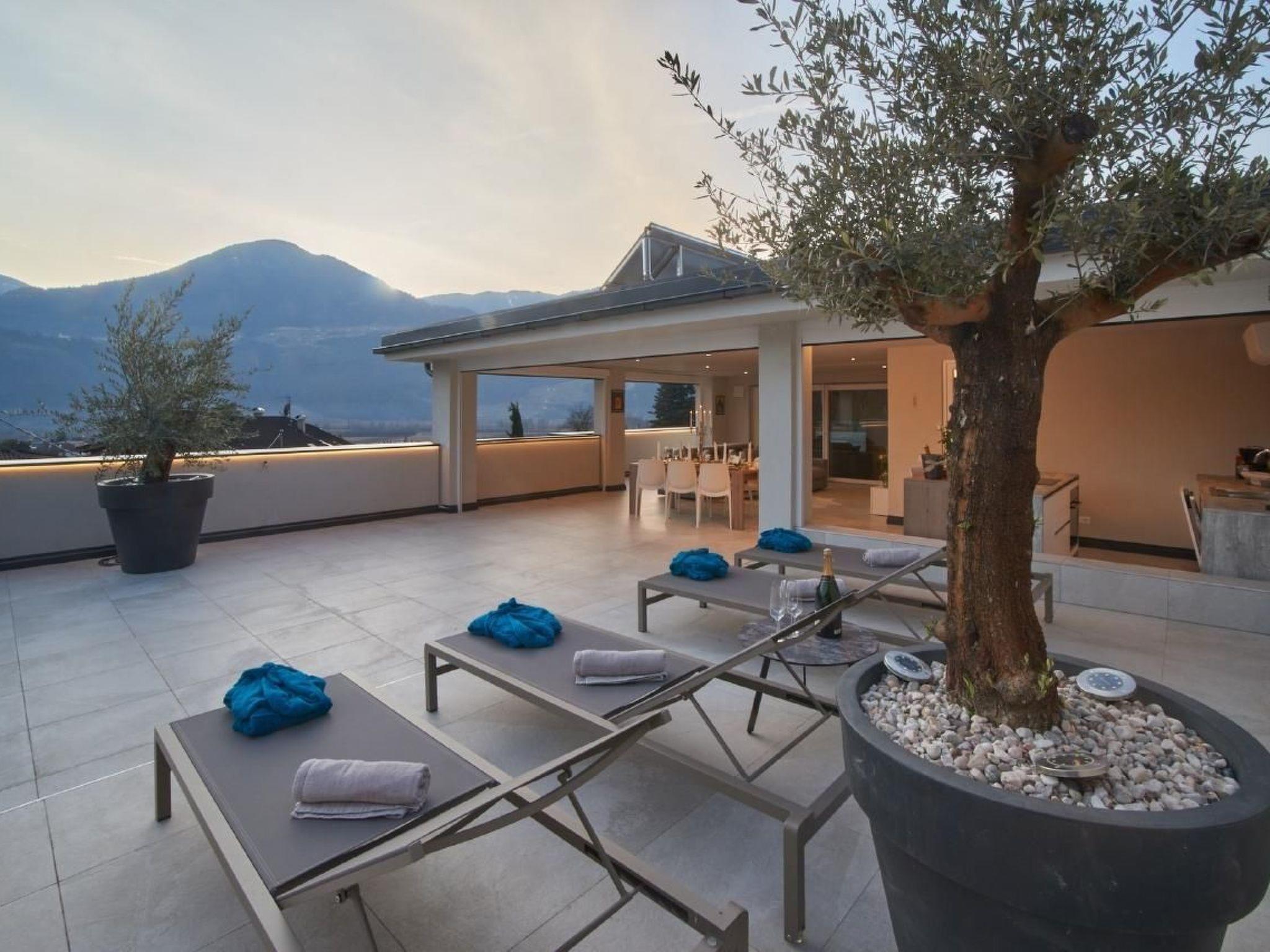Das Appartement erstreckt sich über das gesamte Dachgeschoss, umgeben von einer großzügigen Terrasse von 110 m² und jahrhundertealten Olivenbäumen.