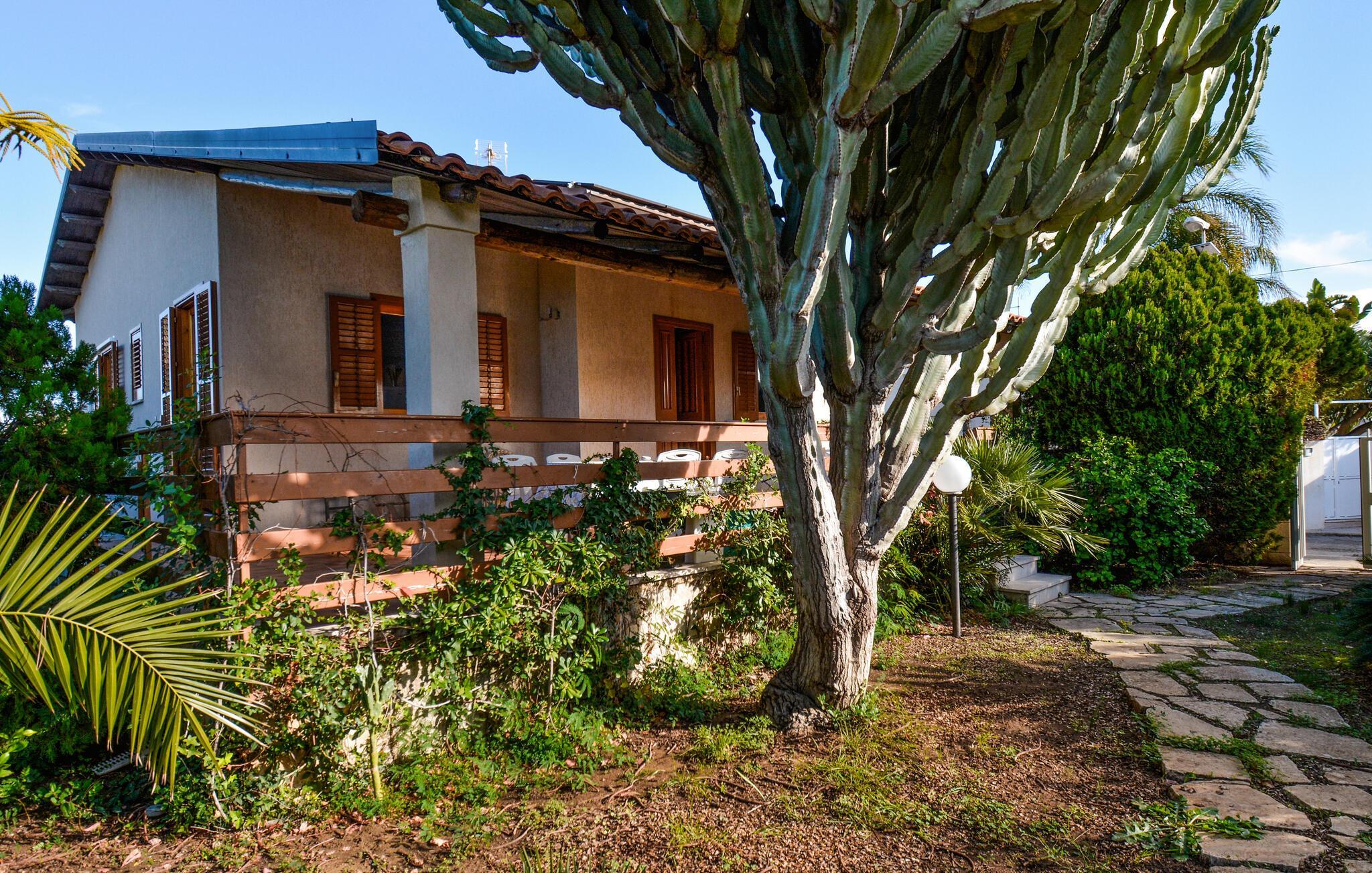 Draußen erwartet Sie eine große, überdachte Terrasse, die ideal für Mahlzeiten im Freien oder lauschige Abende mit Meeresrauschen im Hintergrund ist. Veranstalten Sie Grillabende oder nehmen Sie Platz im Garten, der mit mediterranen Pflanzen und Palmen ein grünes Paradies bildet.
