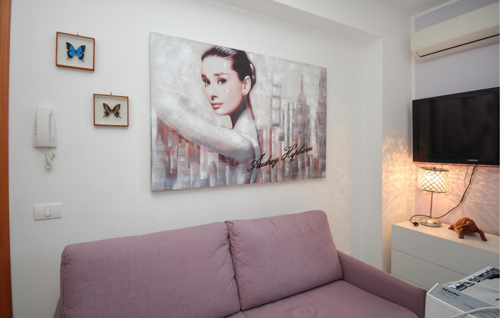 Diese Wohnung zeichnet sich durch einen moderne Stil, helle Farben und liebevolle Details aus. Im Wohnbereich mit bequemer Couch lässt es sich wunderbar entspannen, vielleicht bei einem Glas italienischem Wein oder einem interessanten Film am Abend. Die praktische Küche bietet Ihnen alles, was Sie für das Zubereiten gemeinsamer Mahlzeiten brauchen.