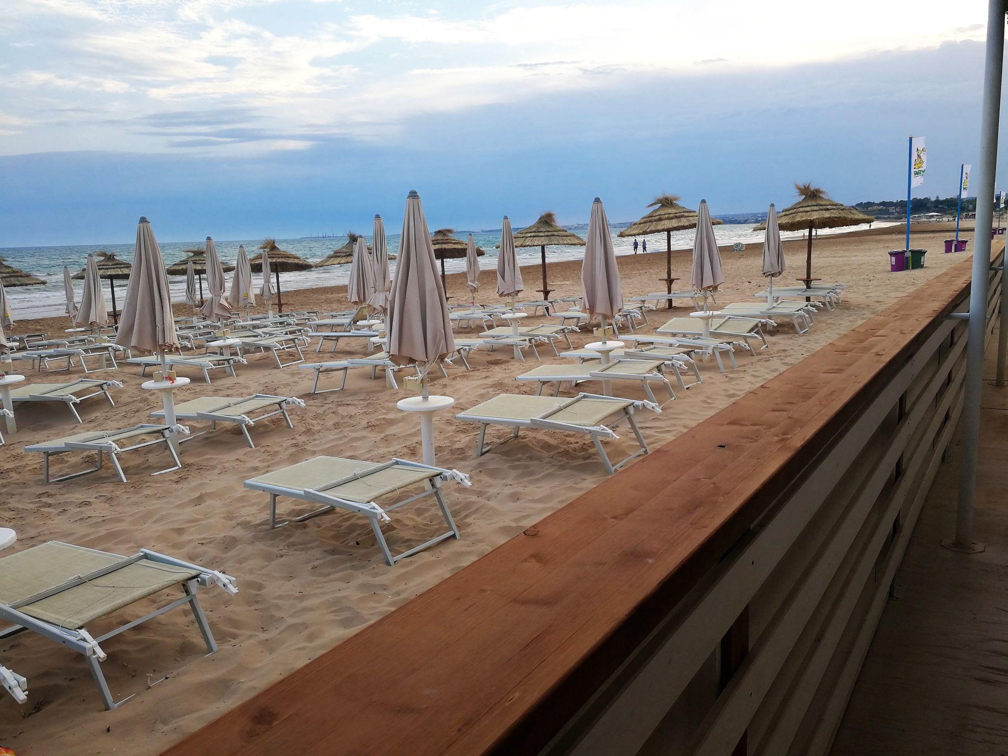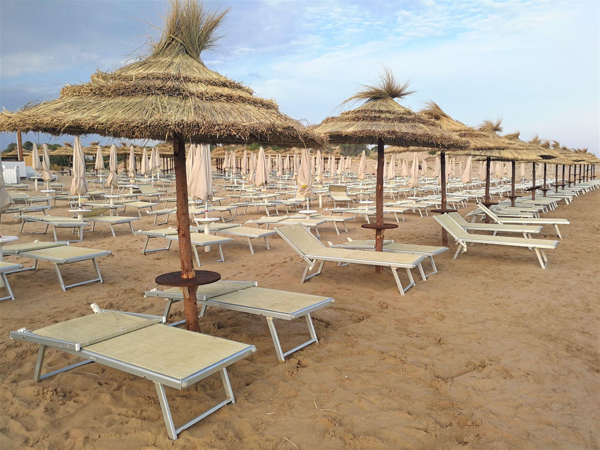 - Privater ausgestatteter Strandservice mit 1 Sonnenschirm und 2 Sonnenliegen; (vom 20. Juni bis 22. September)