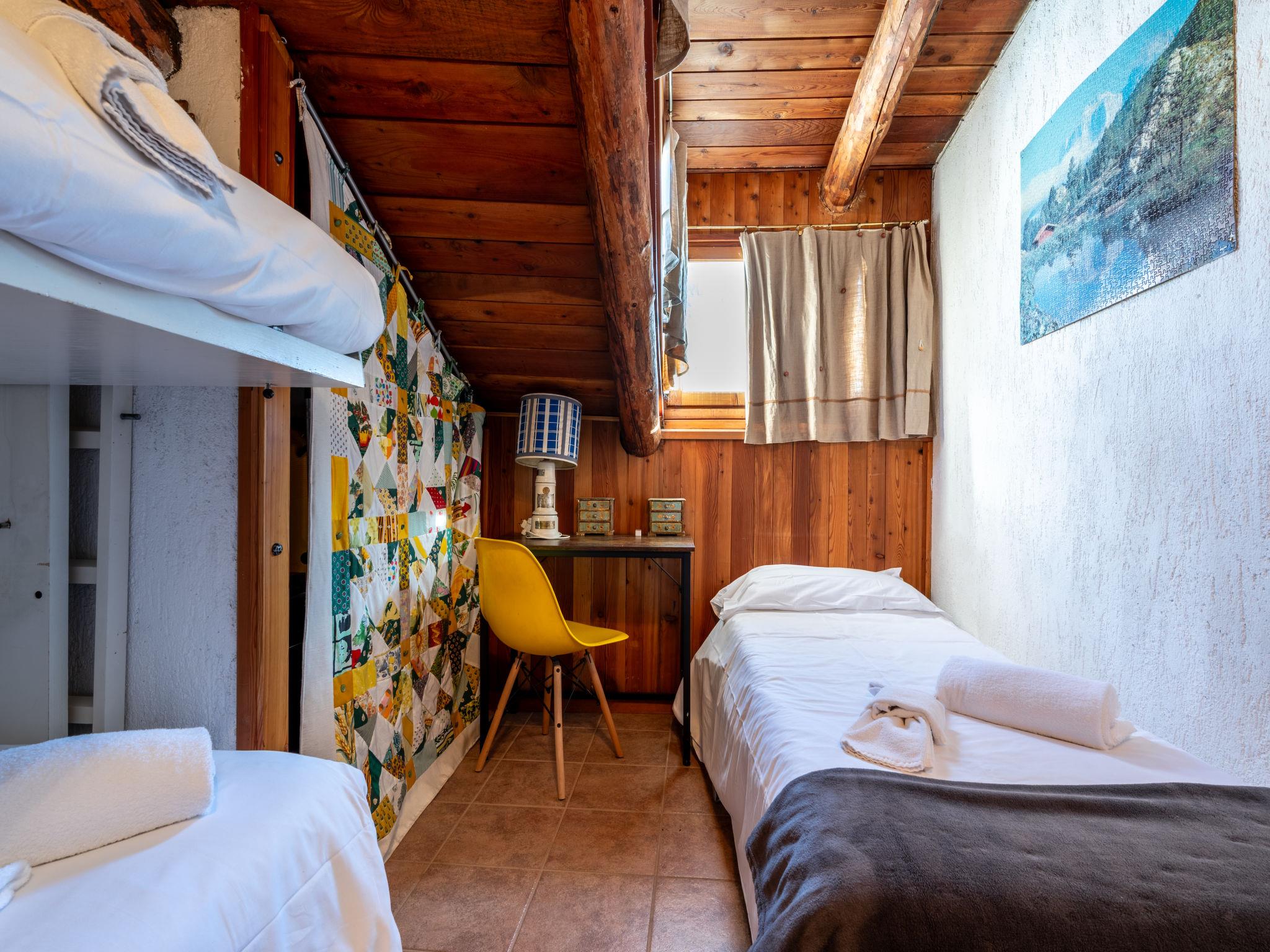 "Verrand", 4-Zimmer-Wohnung 80 m2 auf 2 Stockwerken. Zweckmässig und komfortabel eingerichtet: Wohn-/Esszimmer mit offenem Kamin (nur Deko), Esstisch und TV. Ausgang zum Balkon. Kochnische (4 Kochplatten, Backofen, Toaster, Wasserkocher, Mikrowelle, elektrische Kaffeemaschine). Sep. WC. Obergeschoss: 2 abgeschrägte Doppelzimmer. 1 abgeschrägtes Zimmer mit 1 Bett und 1 x 2 Etagenbetten. Dusche/Bidet/WC. E-Heizung. Balkon. Schöne Sicht auf die Berge. Zur Verfügung: Waschmaschine, Haartrockner. Internet (WLAN, gratis). Bitte beachten: 1 Haustier/Hund erlaubt. Rauchmelder, Feuerlöscher. IT007053C2GXW2J6XR