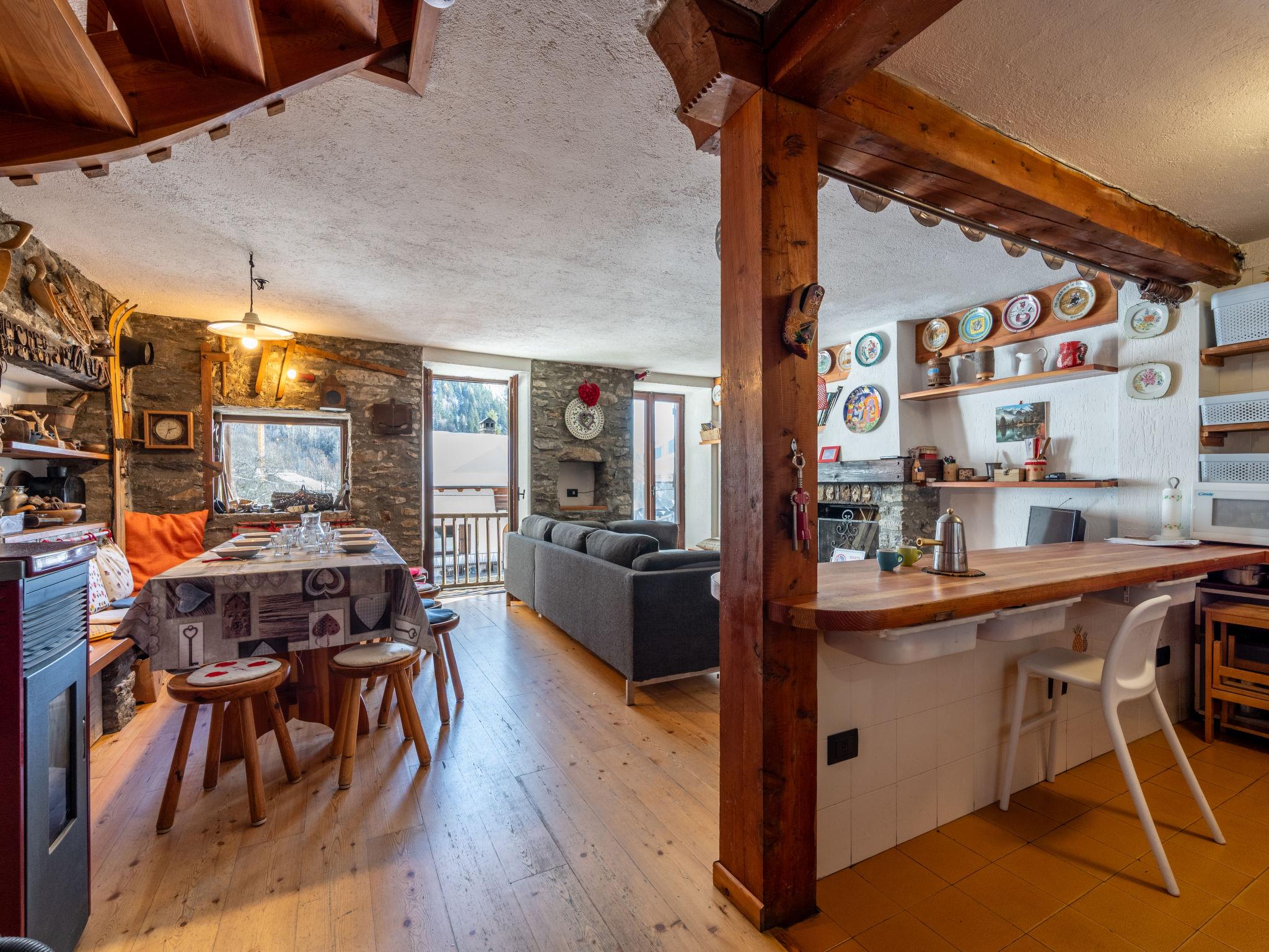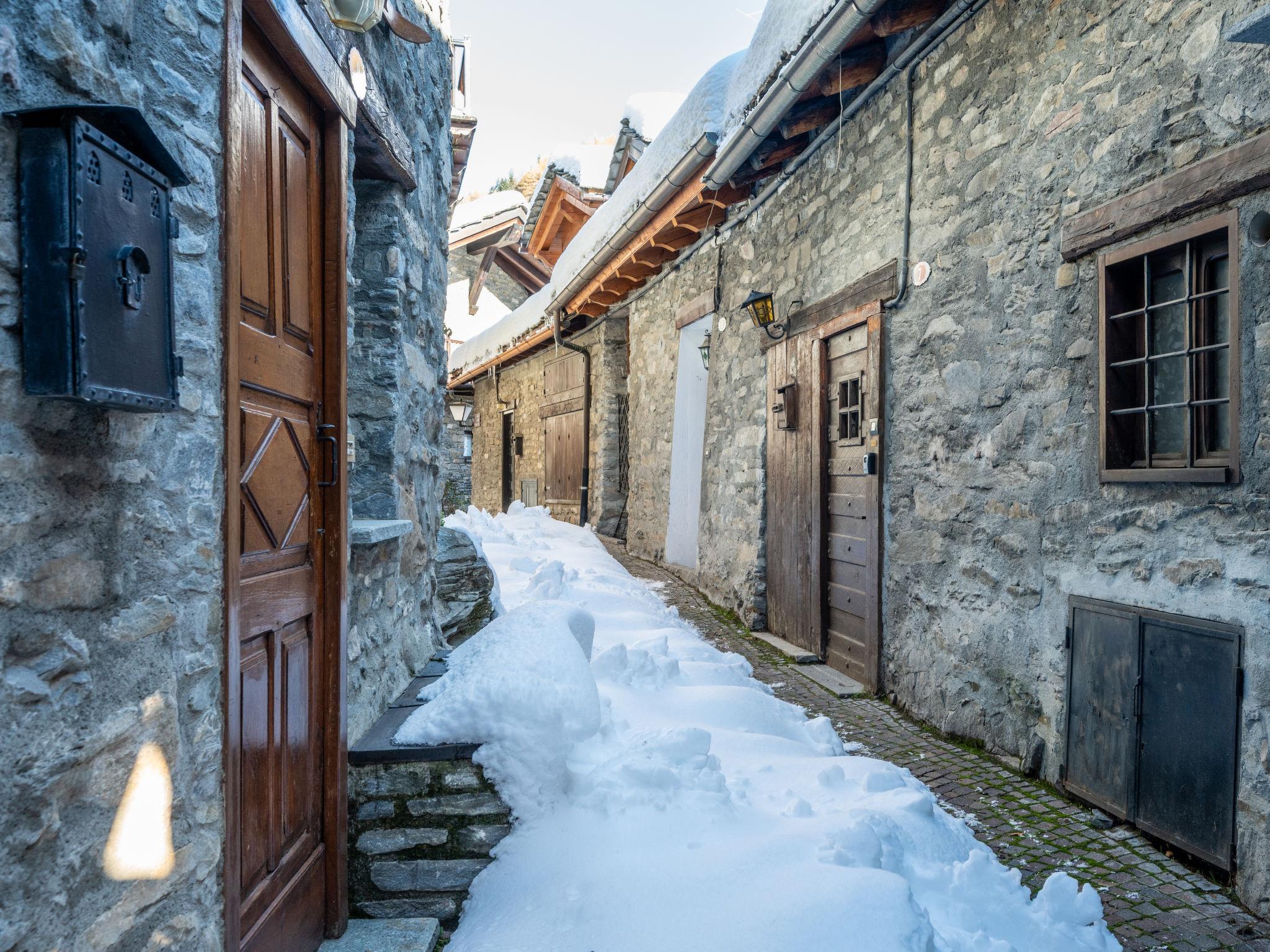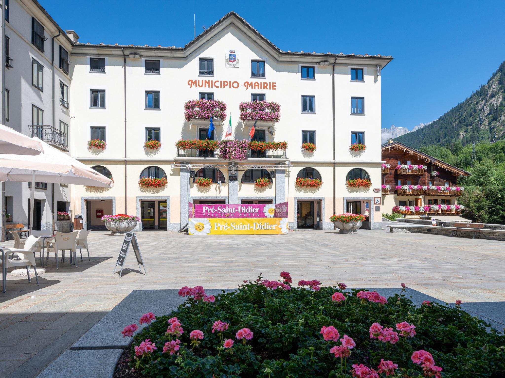 Reihenhaus 1'260 m.ü.M.. Im Ortsteil Verrand, 2 km vom Zentrum von Courmayeur, 5 km vom Zentrum von Prè Saint Didier. Im Hause: Skiraum. Im Winter bitte Schneeketten mitbringen. Öffentliche Parkplätze auf der Strasse. Lebensmittelgeschäft 800 m, Restaurant 1 km, Bar 800 m, Bushaltestelle 350 m. Skiverleih 1 km, Skischule 1 km, Kinderspielplatz 40 m. Nahe gelegene Sehenswürdigkeiten: Terme di Pré Saint Didier 5 km, Aosta 35 km. Bekannte Skigebiete sind gut erreichbar: Courmayeur 2 km, Skyway Monte Bianco 5 km, La Thuille 14 km.