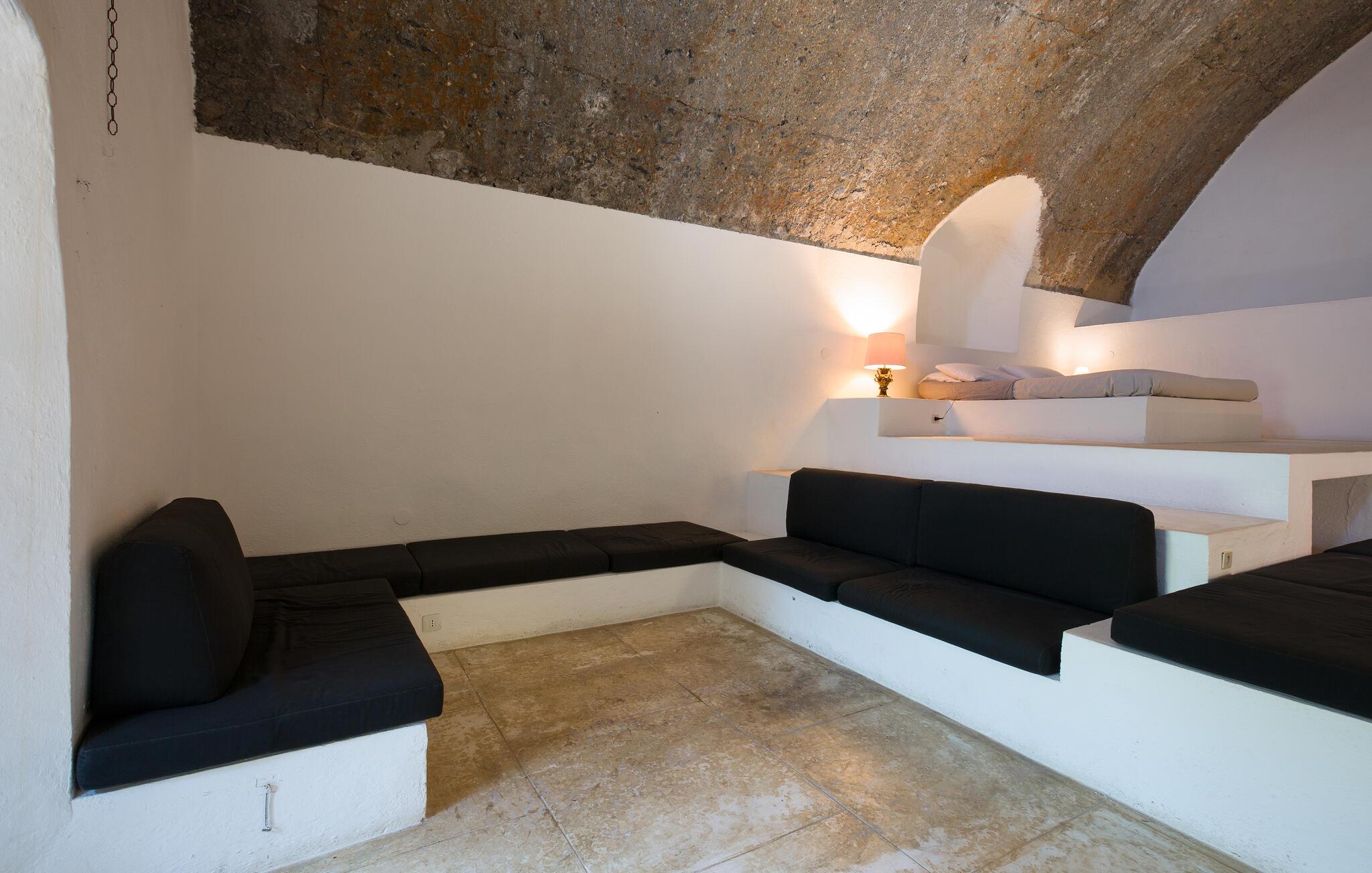 Dieses außergewöhnliche Urlaubsdomizil ist Teil einer imposanten Burg aus dem 13. Jahrhundert, die malerisch über der Küste thront. Hier können Sie romantisch zu zweit oder als kleine Familie den Alltag gegen ein stilvolles, historisches Ambiente eintauschen. Bereiten Sie sich in der praktischen Küche leckere Pastagerichte zu und lassen Sie die urige Atmosphäre bei entspannten Mahlzeiten auf sich wirken. Genießen Sie die behagliche Beleuchtung bei gemütlichen Lesestunden oder einem Glas Wein.