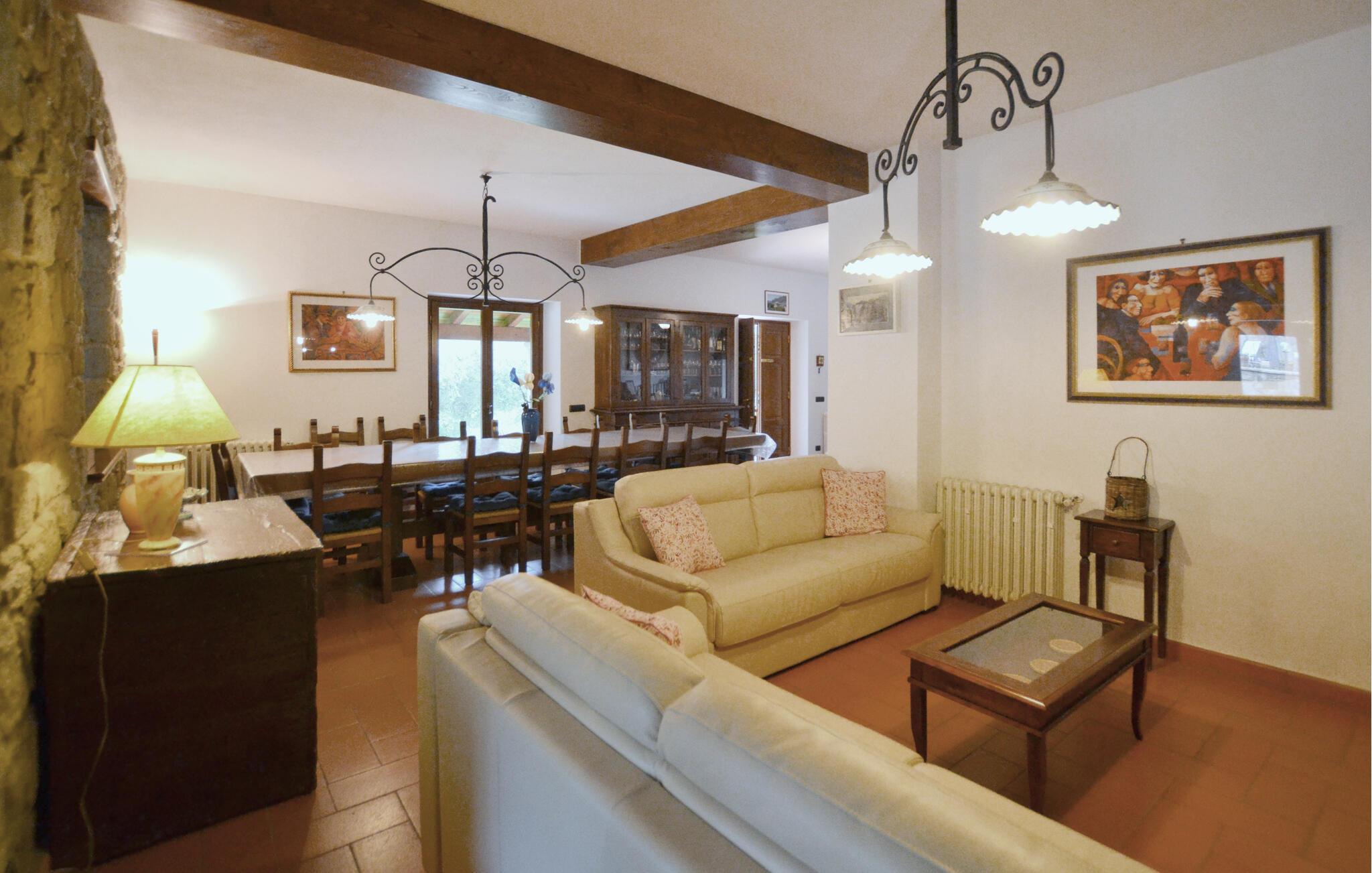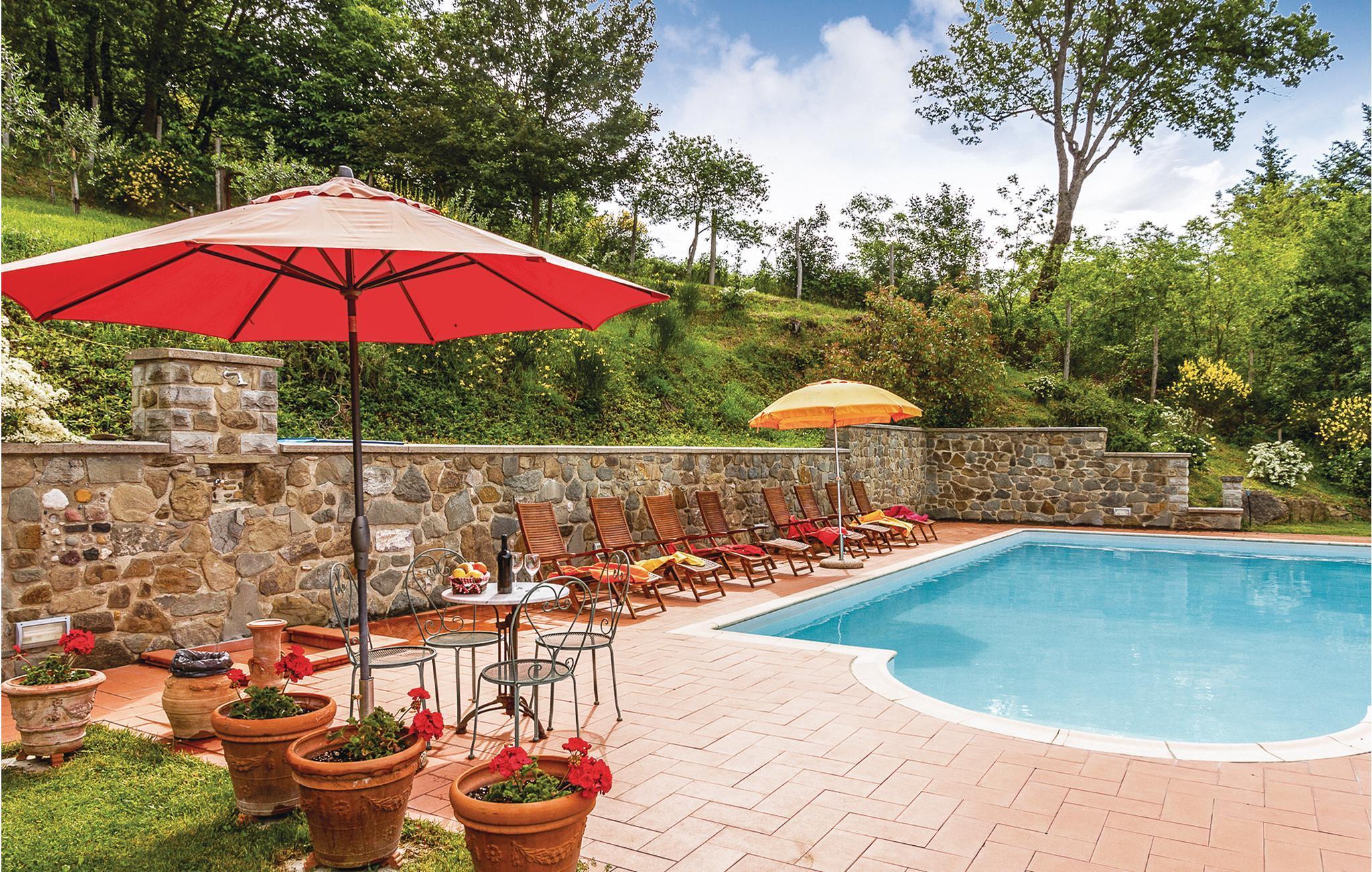 Etwa 5 km oberhalb von Pratovecchio steht dieses toskanische Natursteinhaus in der romantischen Bergwelt des Casentino. Hier finden Sie die Ruhe der Wälder, frische Höhenluft, malerische Dörfchen, mittelalterliche Burgen und Einsiedeleien. Das Haus ist mit allem Komfort ausgestattet und verfügt über eine großzügige überdachte Terrasse rund um das Haus herum mit verschiedenen Sitzplätzen; der exklusive Poolbereich mit Panoramaterrasse liegt etwas erhöht, mit einzigartigem Talblick. Für Gaumenfreunde: Die freundlichen Eigentümer kochen - auf Anfrage - sehr gut und gerne für Sie und stellen Ihnen ihren Weinkeller zur Verfügung. Die Lage am Rande des Casentino-Naturparks lädt ein zum Entspannen, Wandern und Biken. In der Nähe befindet sich das sehenswerten Berg-Kloster von Camaldoli (15km), eingebettet in hohe Wälder, die auch im Sommer kühle Frische bieten. Sehenswert auch die Burg und die Klosterkirche von Romena (7 km) und das bezaubernde Städtchen Poppi (10km) mit seiner imposanten Burg, verschiedenen Trattorien und Geschäften und einem bunten Wochenmarkt. Von Pratovecchio aus erreichen Sie Arezzo (50km) auch mit der Casentino-Bahn; Florenz 50km.
