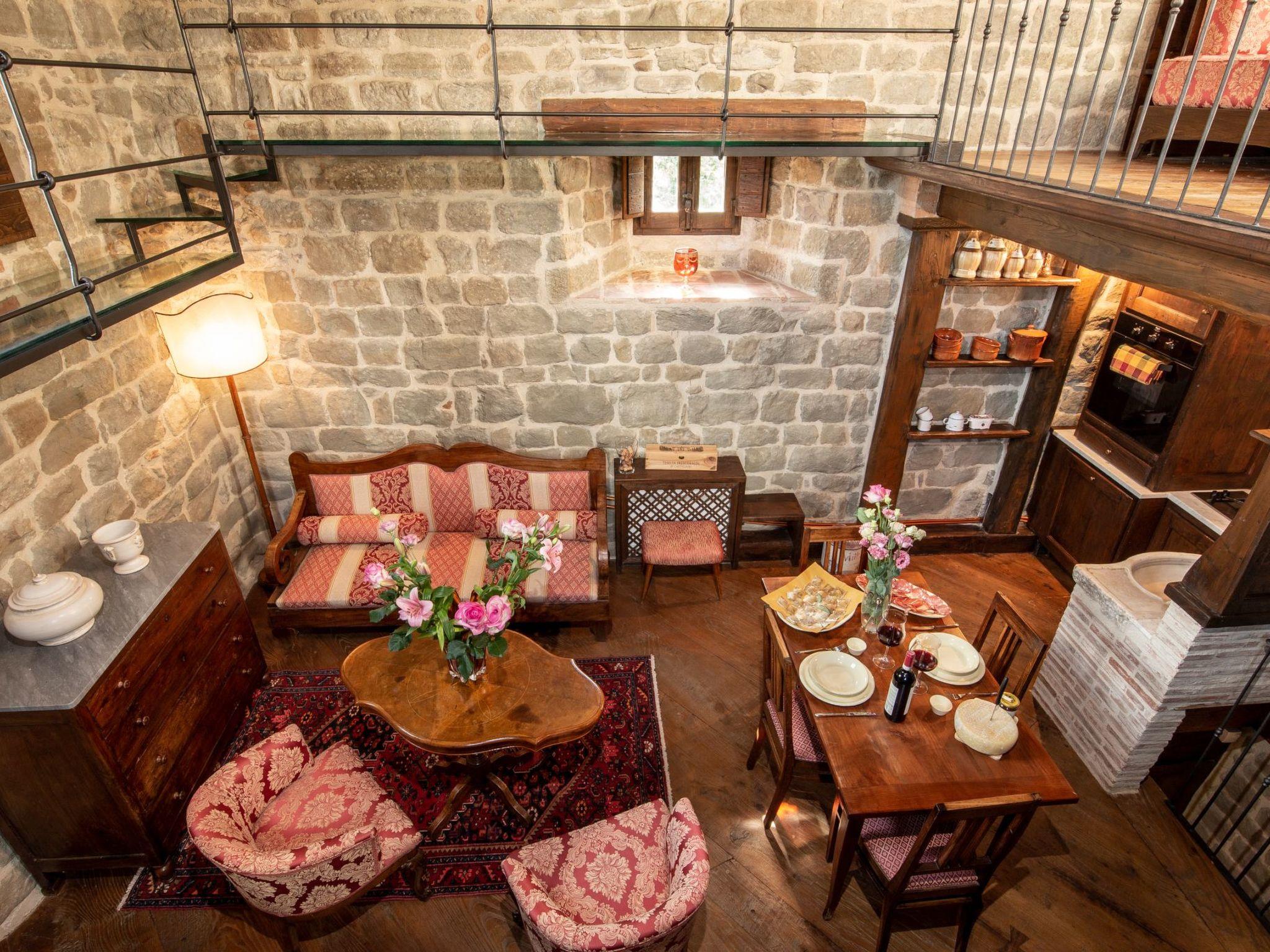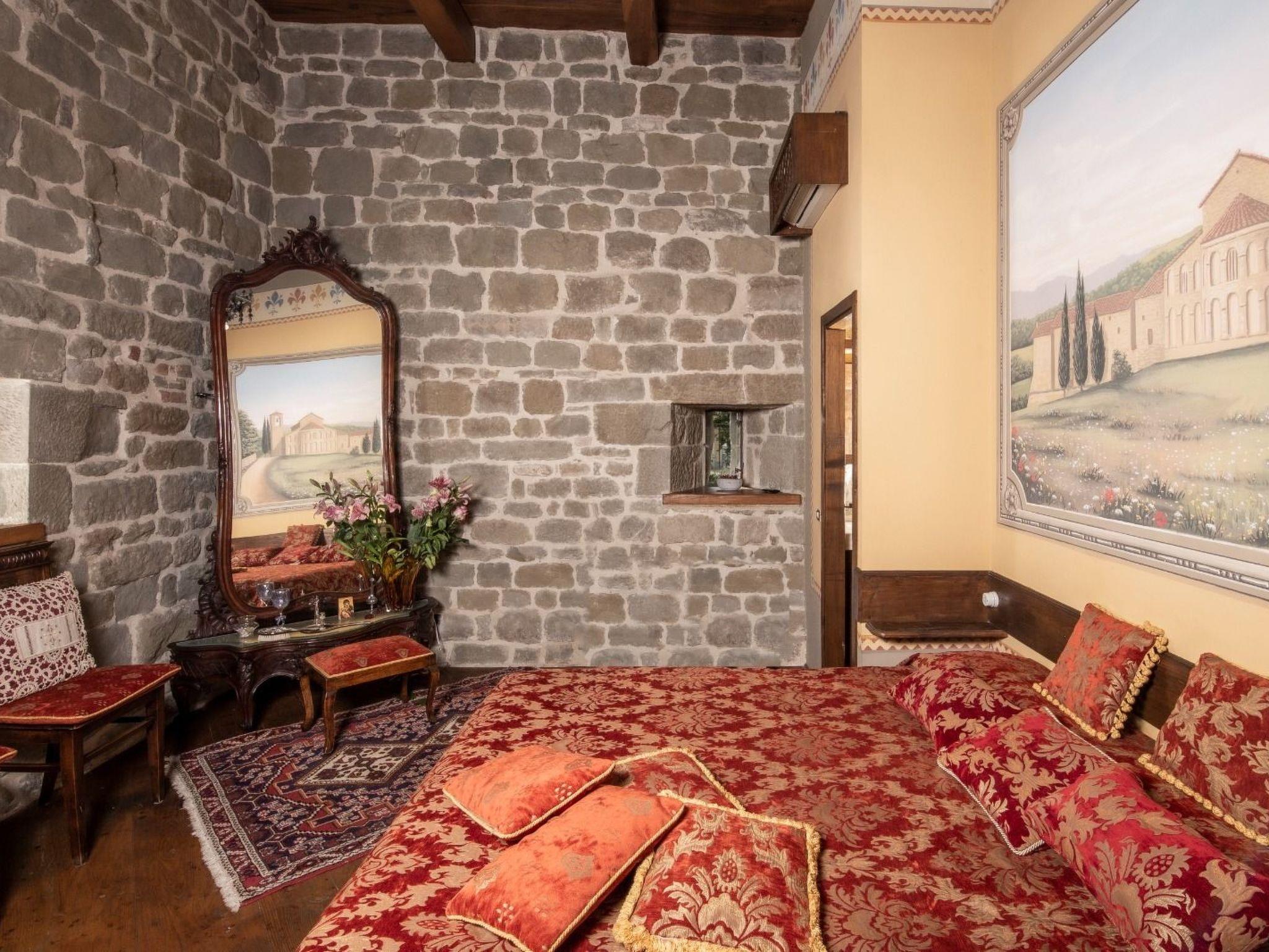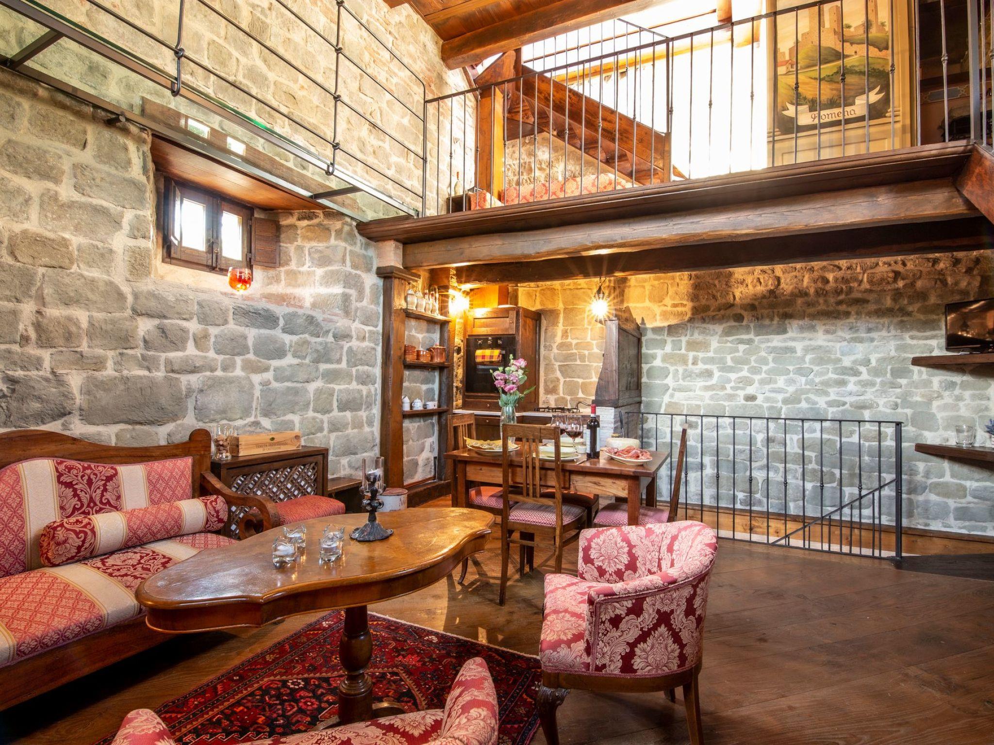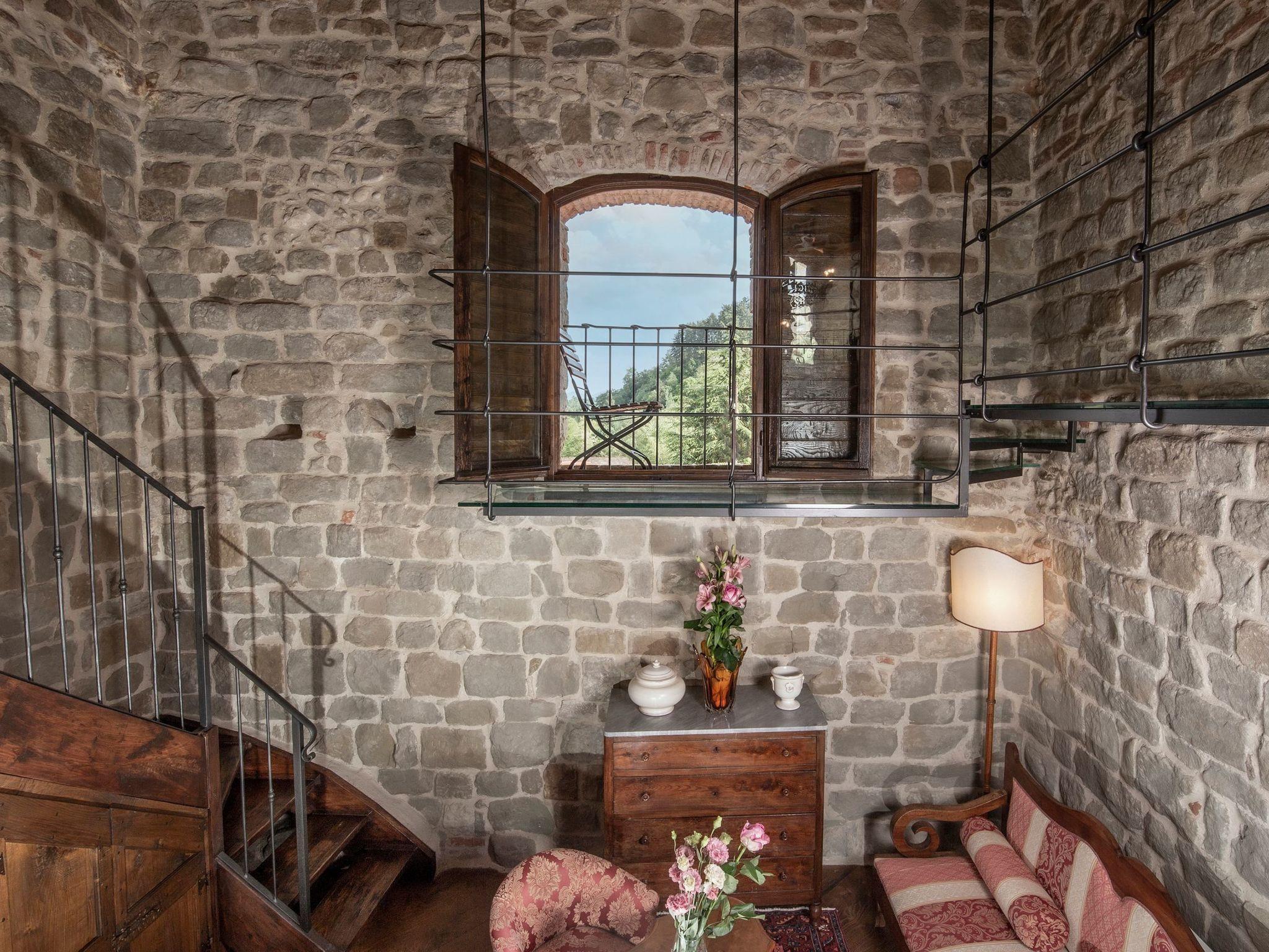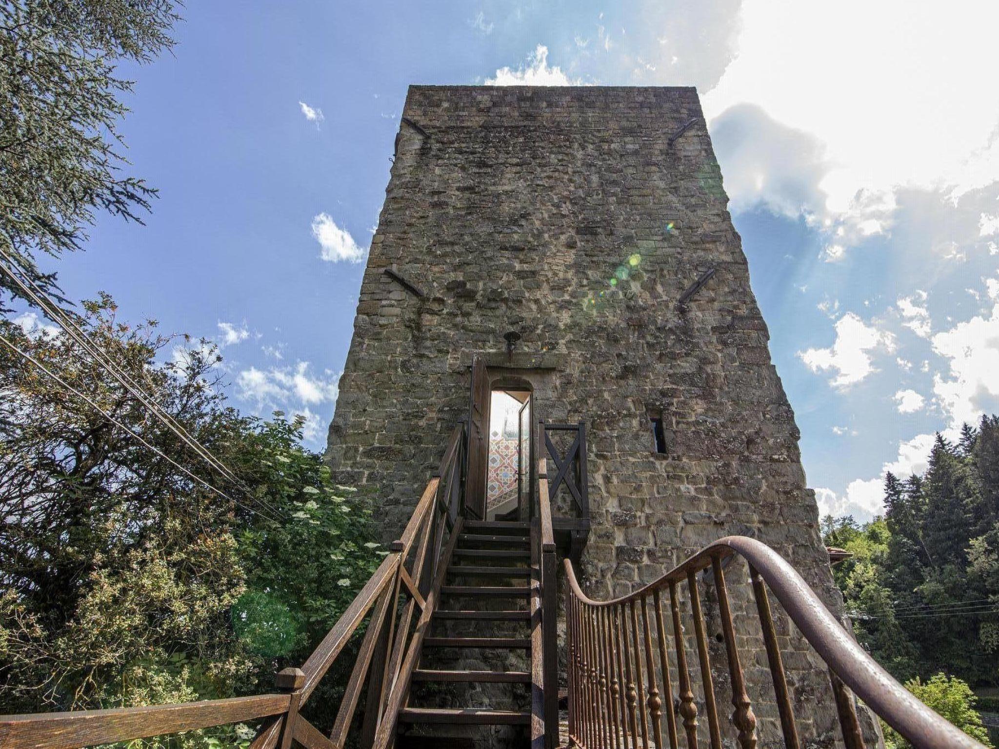 Hier können Sie einen bezaubernden Aufenthalt verbringen und auch Ihre Hochzeit inmitten der Geschichte organisieren: Nach einer sorgfältigen Restaurierung wurde ein wunderschöner unabhängiger Wohnsitz mit allem Komfort und Klimaanlage geschaffen. Der mittelalterliche Turm erstreckt sich über drei Etagen und hat zusammen mit der Terrasse eine Fläche von etwa 100 Quadratmetern. Der Zugang erfolgt auf der ersten Etage über die typische Holztreppe (33 Stufen) und führt in den Flur, der mit einem Kleiderbügel ausgestattet ist, und in das Hauptschlafzimmer (20 qm) mit majestätischen Wänden, die geschickt gebaut und restauriert wurden und mit Dekorationen aus der Feudalzeit verziert sind. In jeder Wand des gemütlichen Zimmers befinden sich typische Fensterschlitze mit Blick auf den Arno und den Garten. Im Inneren des Zimmers befindet sich der Zugang zum privaten Badezimmer (4 m²), das im Einklang mit den architektonischen Formen des Gebäudes gebaut wurde und mit WC, Bidet, Dusche und antikem Marmorwaschbecken ausgestattet ist. Vom Flur aus führt eine Treppe in das helle Wohnzimmer (28 qm) mit antikem Sofa, Sesseln, Satellitenfernsehen, Esstisch mit vier Stühlen, Abstellraum und charakteristischer Holzküche, ausgestattet mit: Kühl-Gefrierschrank, Geschirrspüler, Backofen, zwei Herdplatten und antiker Marmorspüle. Vom Wohnzimmer aus führt eine Treppe mit neun Stufen zum Dachboden (10 m²) mit einem bequemen Einzelbett und einem zweiten Badezimmer, das mit Außendekorationen, die die verschiedenen Schlösser des Tals zeigen, bereichert und mit WC, Bidet und Waschbecken ausgestattet ist. Vom Dachboden führen ein paar Stufen zur Panoramaterrasse. Internetzugang muss gebucht werden (gegen Gebühr).