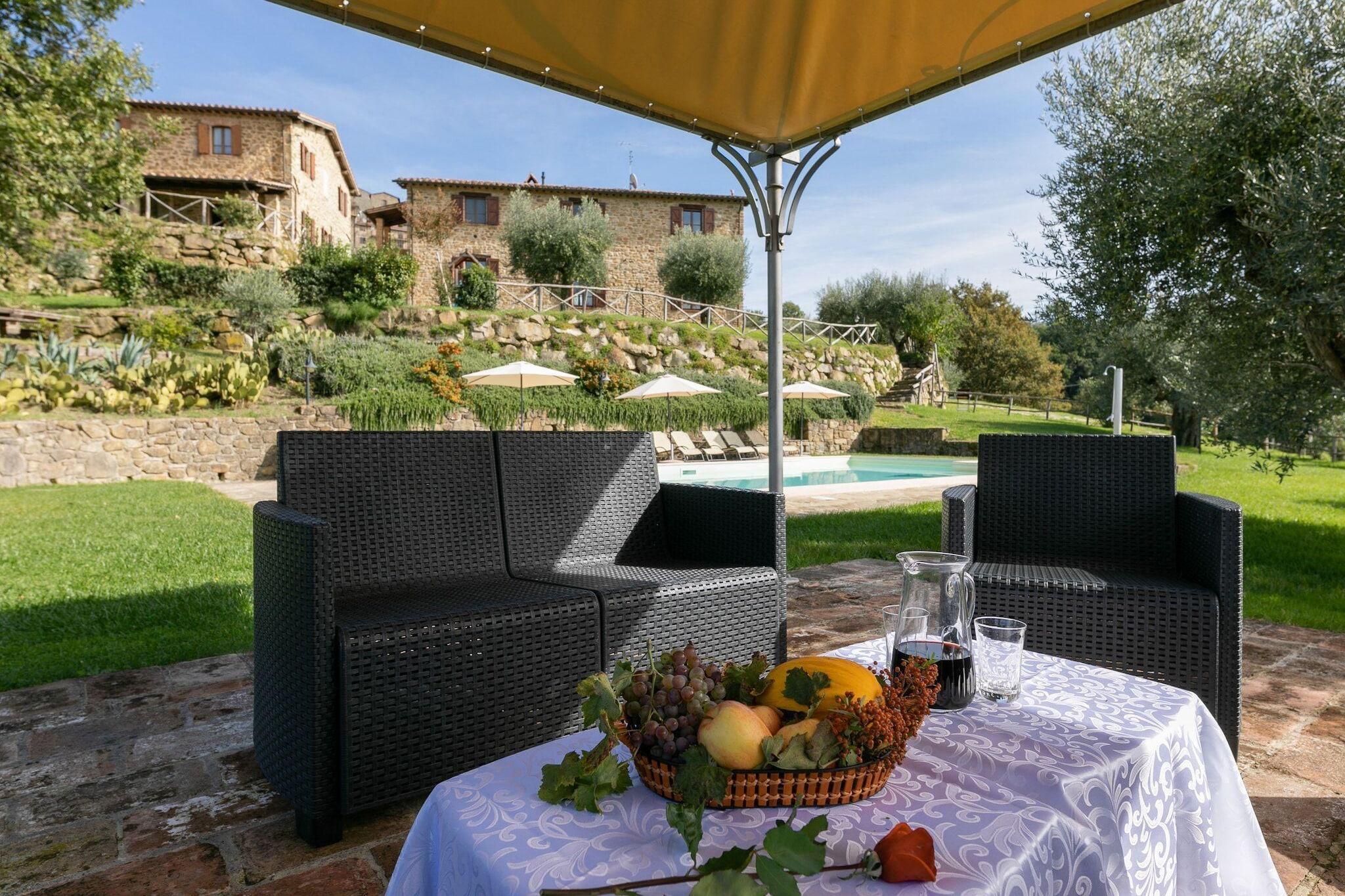 Die Villa I Due Casali liegt eingebettet auf einem Hügel mit Blick auf die umliegende grüne Landschaft Umbriens, nur wenige Schritte von Preggio, einem Dorf aus dem 11. Jahrhundert, entfernt. Die Außenanlagen befinden sich in herrlicher und attraktiver Lage inmitten grüner Wiesen, Obstbäumen, Sukkulenten und aromatischen Kräutern: der große Salzwasserpool mit Sonnenliegen, Sonnenschirmen und Pavillon, ein Kinderspielplatz und ein Kleinfeld-Fußballplatz. Dank ihrer neun geräumigen Doppelzimmer, alle mit eigenem Bad mit Dusche, bietet die Villa I Due Casali bequem Platz für bis zu 18 Personen. Die Badezimmer im Erdgeschoss sind barrierefrei. Das Erdgeschoss des Hauptgebäudes ist als großzügiger Wohnraum konzipiert, der zu geselligen und entspannten Momenten einlädt, sei es am Esstisch oder vor dem warmen Kamin. In der warmen Jahreszeit können Sie unter der Hauptloggia im Freien speisen und den Blick auf das Tal und die grünen Berge am Horizont genießen. Die Loggia ist direkt mit der geräumigen und modernen Küche verbunden, die mit allen Utensilien ausgestattet ist und an das Esszimmer angrenzt. Zwei Grillplätze, ein botanischer Garten und einheimische Obstbäume stehen den Gästen zur Verfügung. Gemüse und Obst können jederzeit geerntet und sofort verkostet werden. Diese Gegend ist dank ihrer Nähe zu Florenz und Rom (nur zwei Autostunden entfernt) und anderen Sehenswürdigkeiten der Toskana und Umbriens mit ihren kulinarischen und weinbaulichen Erlebnissen eine Entdeckungsreise wert. Der Trasimenische See bietet außerdem zahlreiche Freizeitaktivitäten wie Wandern, Reiten, Rafting und Höhlenerkundung.