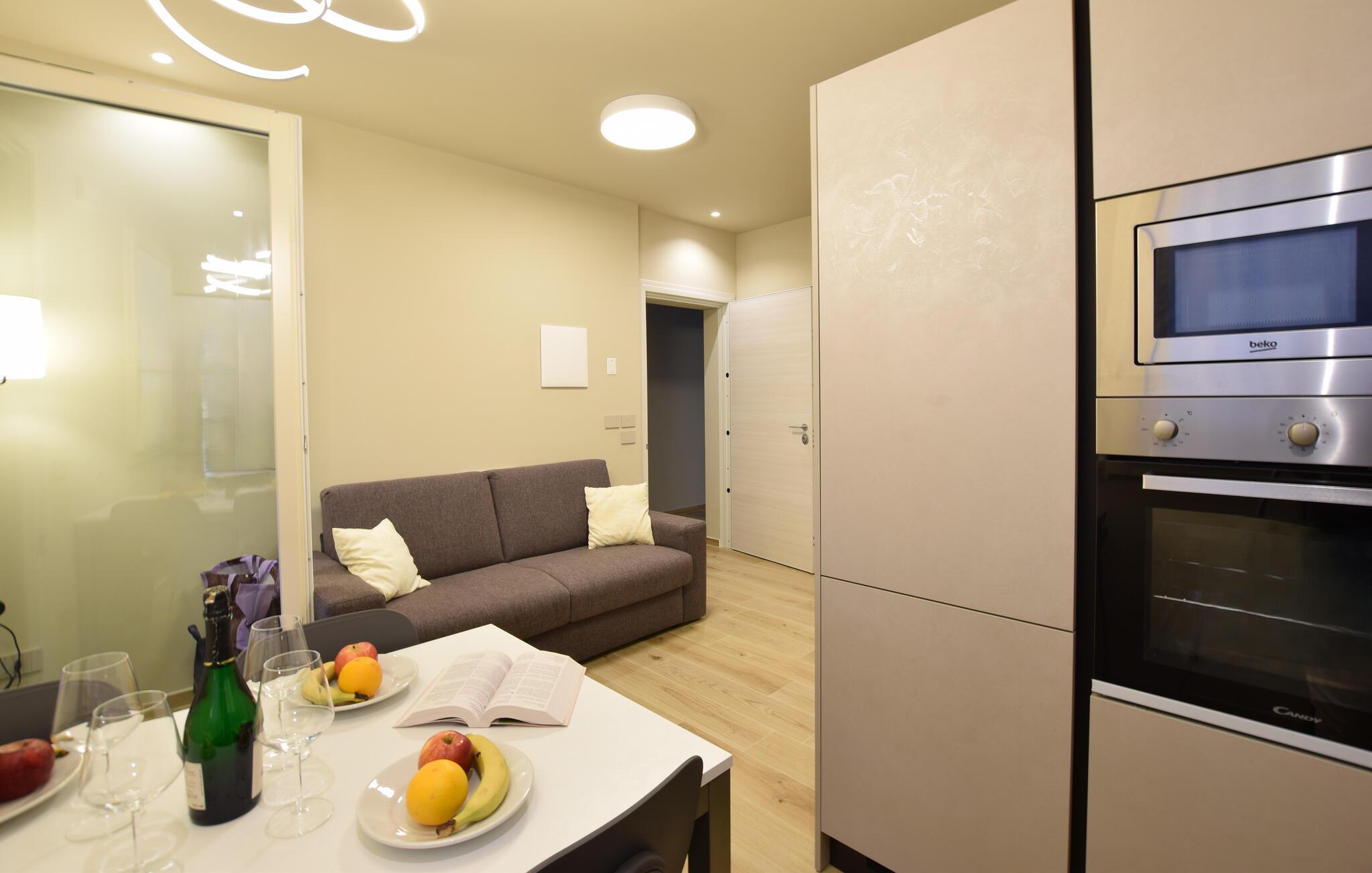 Diese Wohnung vereint Gemütlichkeit und Modernität auf harmonische Weise. Lehnen Sie sich entspannt mit einer Tasse Kaffee auf dem bequemen Sofa zurück oder probieren Sie in der Küche neue Rezepte aus. Servieren Sie zum Essen einen guten italienischen Wein und verbringen Sie den Abend mit Musikhören oder beim Kartenspiel.
