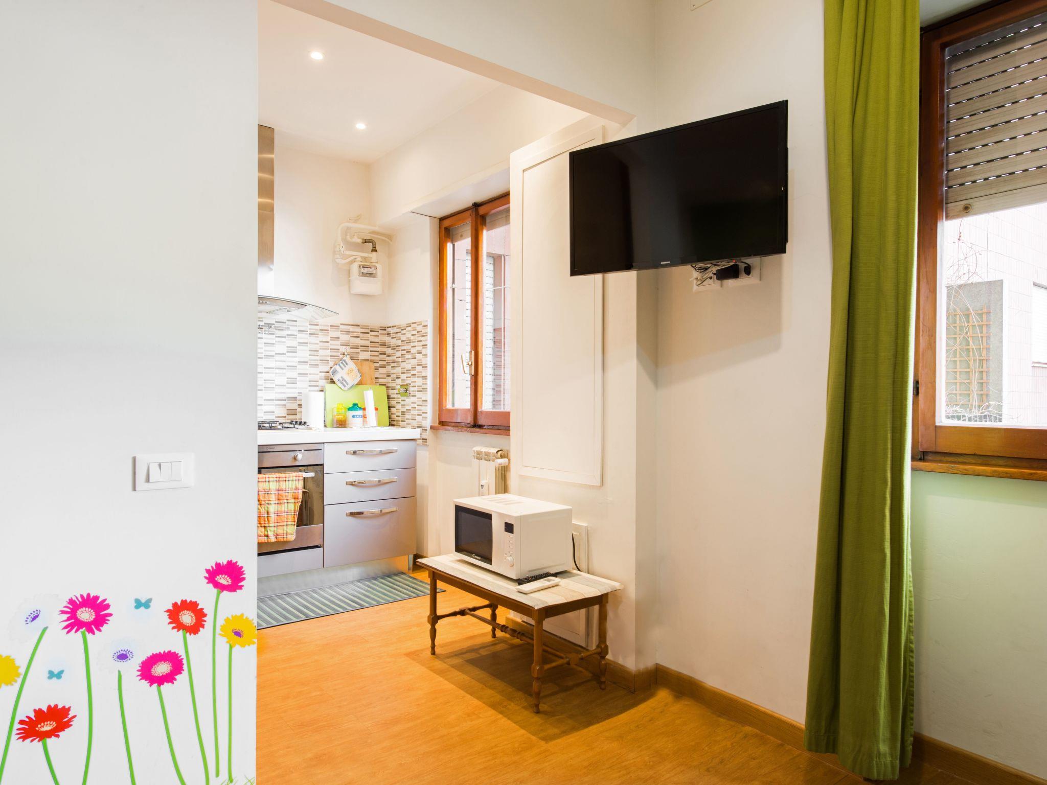 Dank ihrer günstigen Lage ist die Wohnung mit den öffentlichen Verkehrsmitteln gut an das Stadtzentrum angebunden. Direkt gegenüber einem der beiden Eingänge des Gebäudes befindet sich eine U-Bahn-Station. Der Vatikan, der Trevi-Brunnen, das Kolosseum und das Pantheon sowie das Nachtleben der Stadt sind von hier aus leicht zu erreichen. Das Viertel Aurelia ist sehr lebendig und bietet Restaurants, Bars, Pizzerien, Supermärkte, Apotheken und andere Geschäfte.
