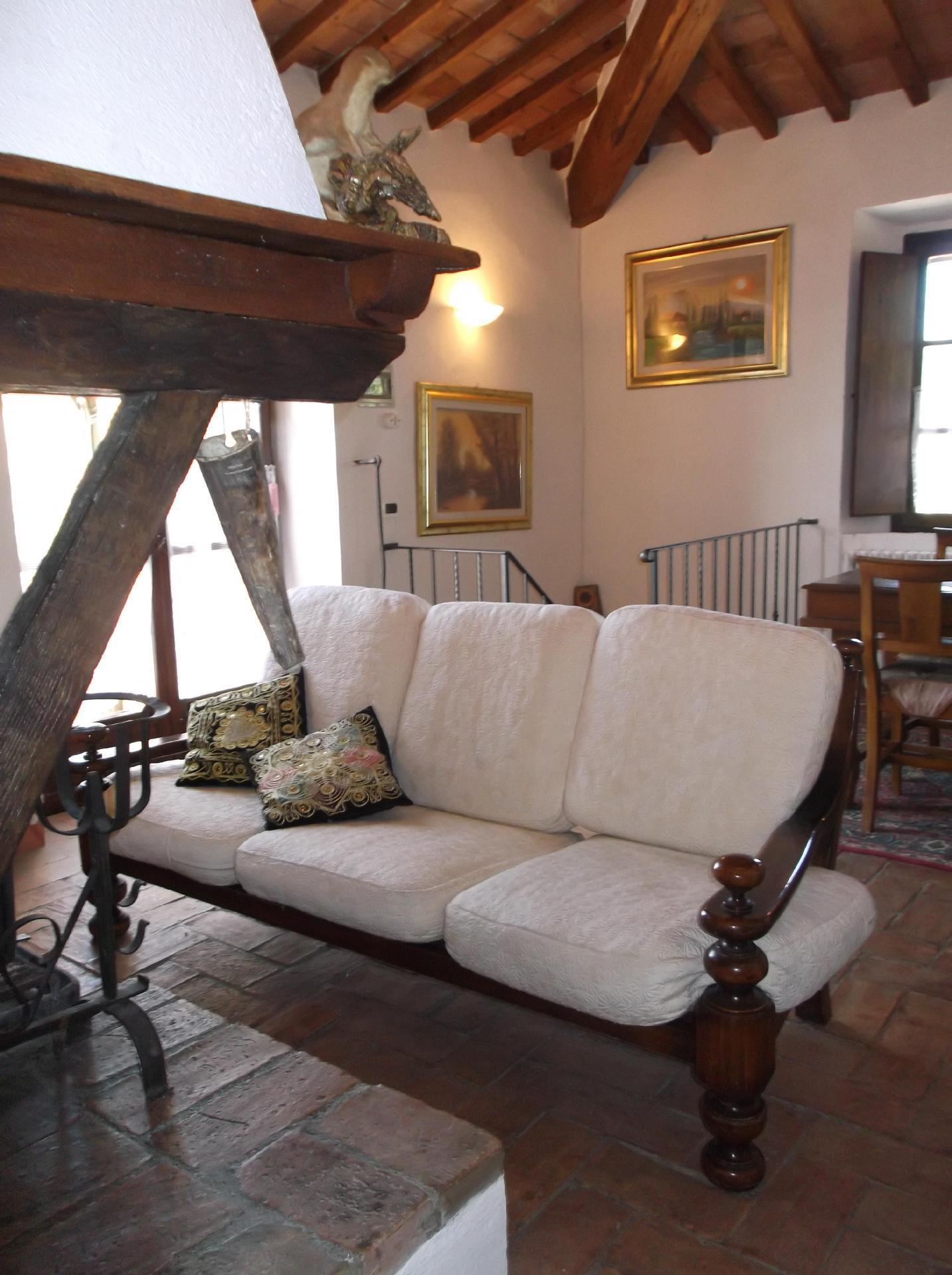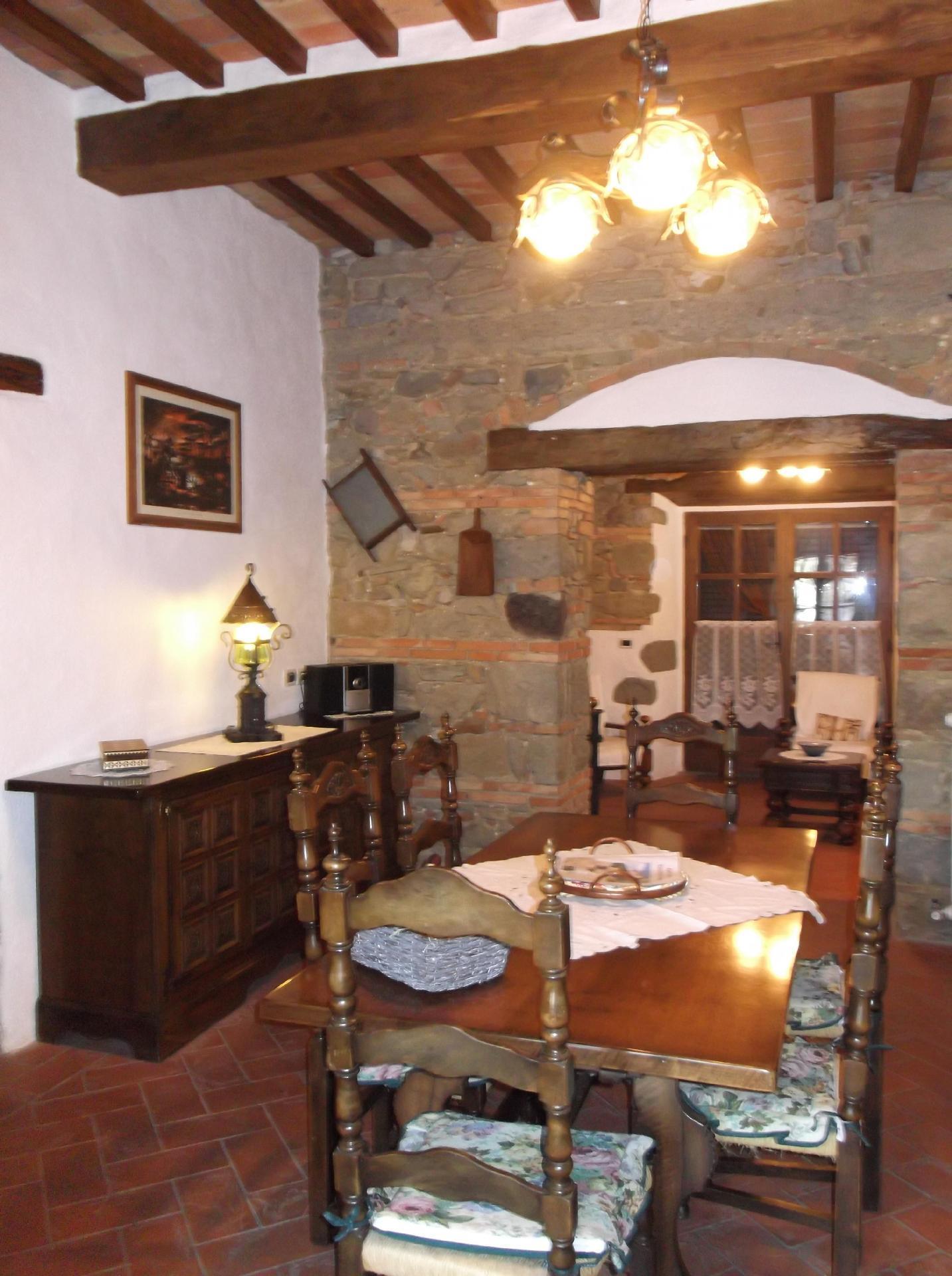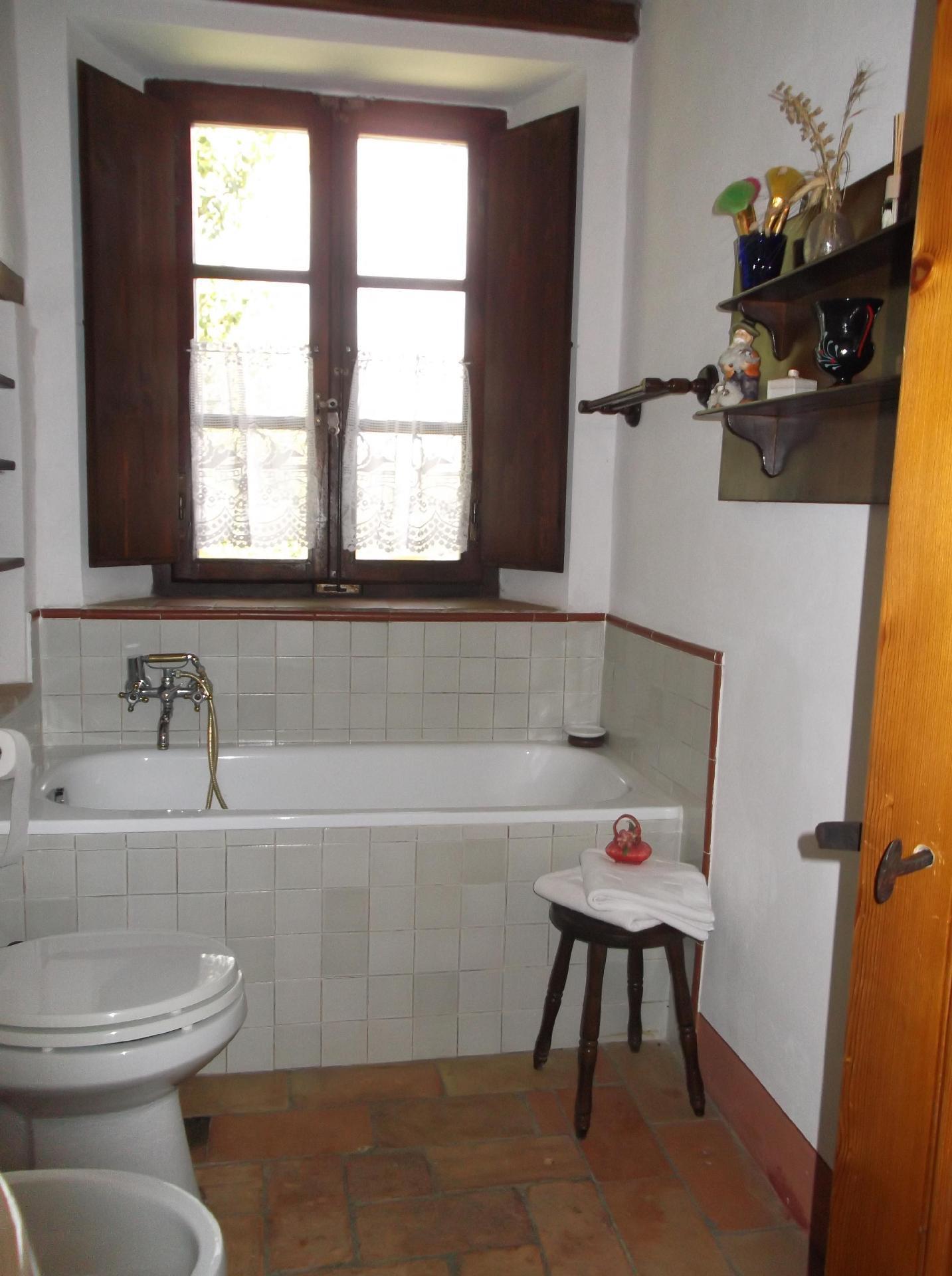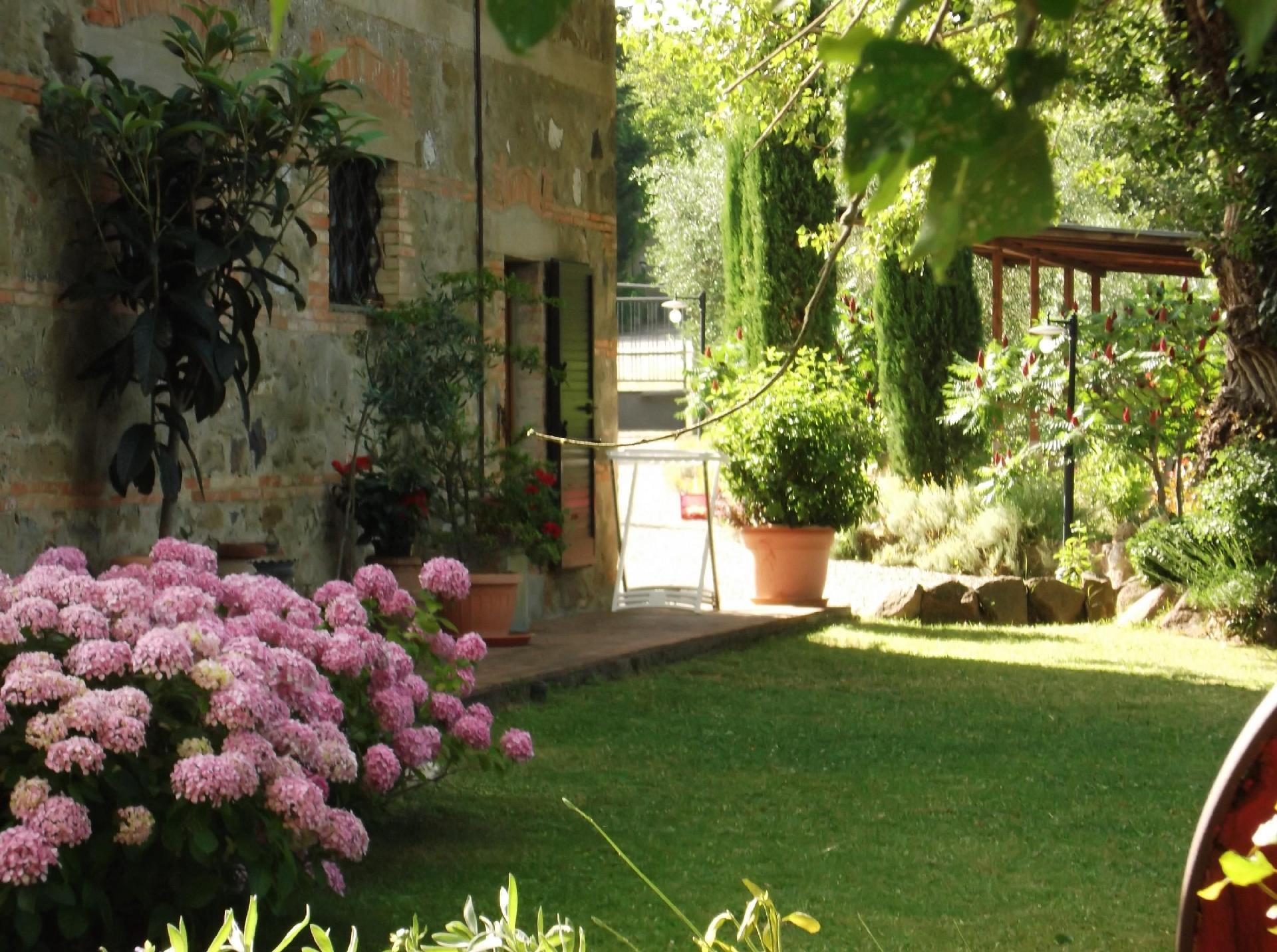 Das Ferienhaus bietet ein einzigartiges Ambiente mit geschmackvoller Einrichtung und drei Schlafzimmern auf zwei Etagen. Im Erdgeschoss gibt es einen großen Wohnbereich mit einem Schlafsofa für zwei Personen (1,60 x 1,90 m), ein geräumiges Schlafzimmer mit einem Doppelbett, eine kleine, aber voll ausgestattete Küche und ein Badezimmer mit Dusche. Von diesem Bad aus kann man durch eine Glastür direkt in den Garten gehen. Eine Holztreppe führt in das Obergeschoss, das auch über eine Außentreppe zu erreichen ist. Im Wohnbereich im Obergeschoss ist der große originale Kamin der Mittelpunkt an kalten Tagen und sorgt für Wärme und Behaglichkeit. In der geräumigen, voll gemauerten Küche finden Sie alles, was Sie zum Kochen brauchen, sowie eine Sammlung antiker Töpfe und Pfannen, die liebevoll aus verschiedenen Bauernhöfen und Second-Hand-Läden zusammengestellt wurden. Außerdem gibt es zwei gemütliche und helle Schlafzimmer mit je einem Doppelbett und ein Badezimmer mit Badewanne, von dessen Fenster aus Sie den Monte Cetona bewundern können. Ein weiteres kleines Bad mit Dusche befindet sich auf der Loggia; da es über eine Außentreppe direkt zu erreichen ist, wird es gerne zum Duschen nach dem Baden genutzt. Es stehen insgesamt acht Betten zur Verfügung; die Doppelbetten sind jeweils 1,60 x 1,90 m groß. Auf Wunsch kann der Eigentümer im Schlafzimmer im Erdgeschoss ein Babybett aufstellen. Das Haus bietet einen kostenlosen Internetzugang.