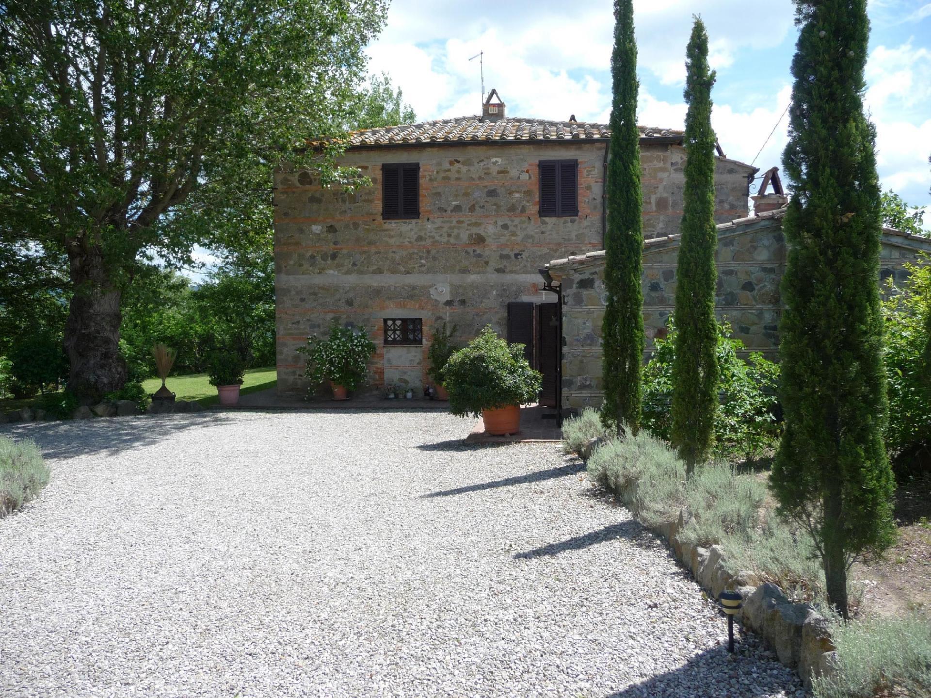 Dieses gepflegte Naturstein-Landhaus liegt inmitten eines großen Olivenhains, etwa fünf Kilometer von der Stadt Radicofani im äußersten Süden der Toskana entfernt. Die Straße, die neben dem Haus verläuft, ist praktisch menschenleer.