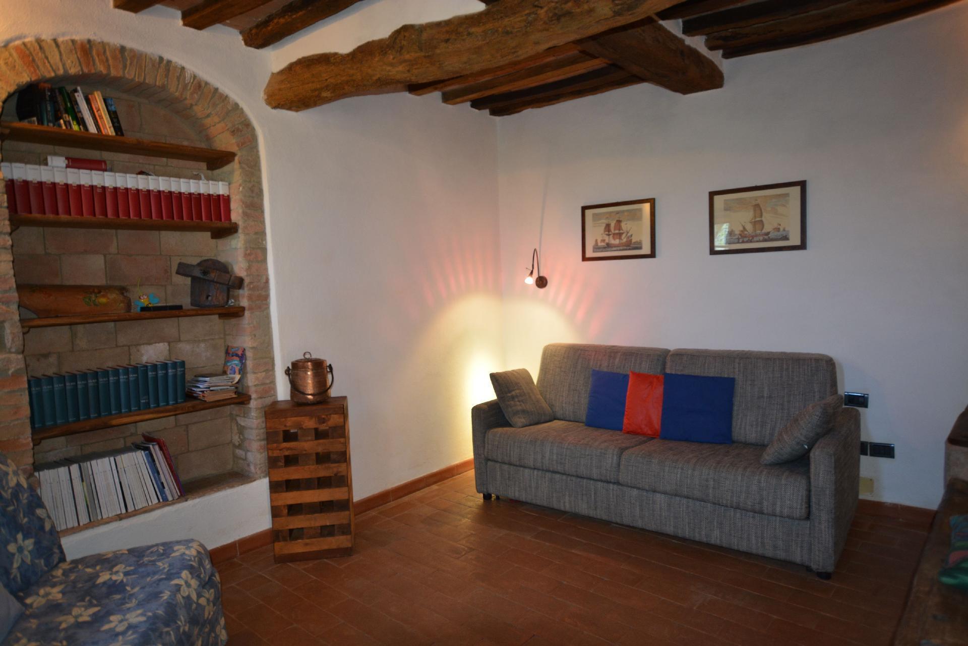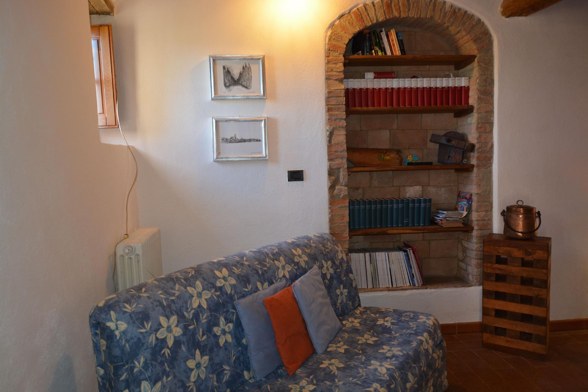 LA CASINA ist eine der drei Wohnungen, aus denen sich IL CASETTINO zusammensetzt. Sie entstand durch die Renovierung der ländlichen Nebengebäude des Hauptgebäudes, die sorgfältig durchgeführt wurde, wobei die Merkmale der ursprünglichen Struktur unverändert blieben und ihr architektonischer Wert erhöht wurde, wobei typische Räume des ländlichen Lebens der Vergangenheit erhalten wurden, wie z.B. die Krippe, die ein schönes Element des Wohnzimmers geworden ist.