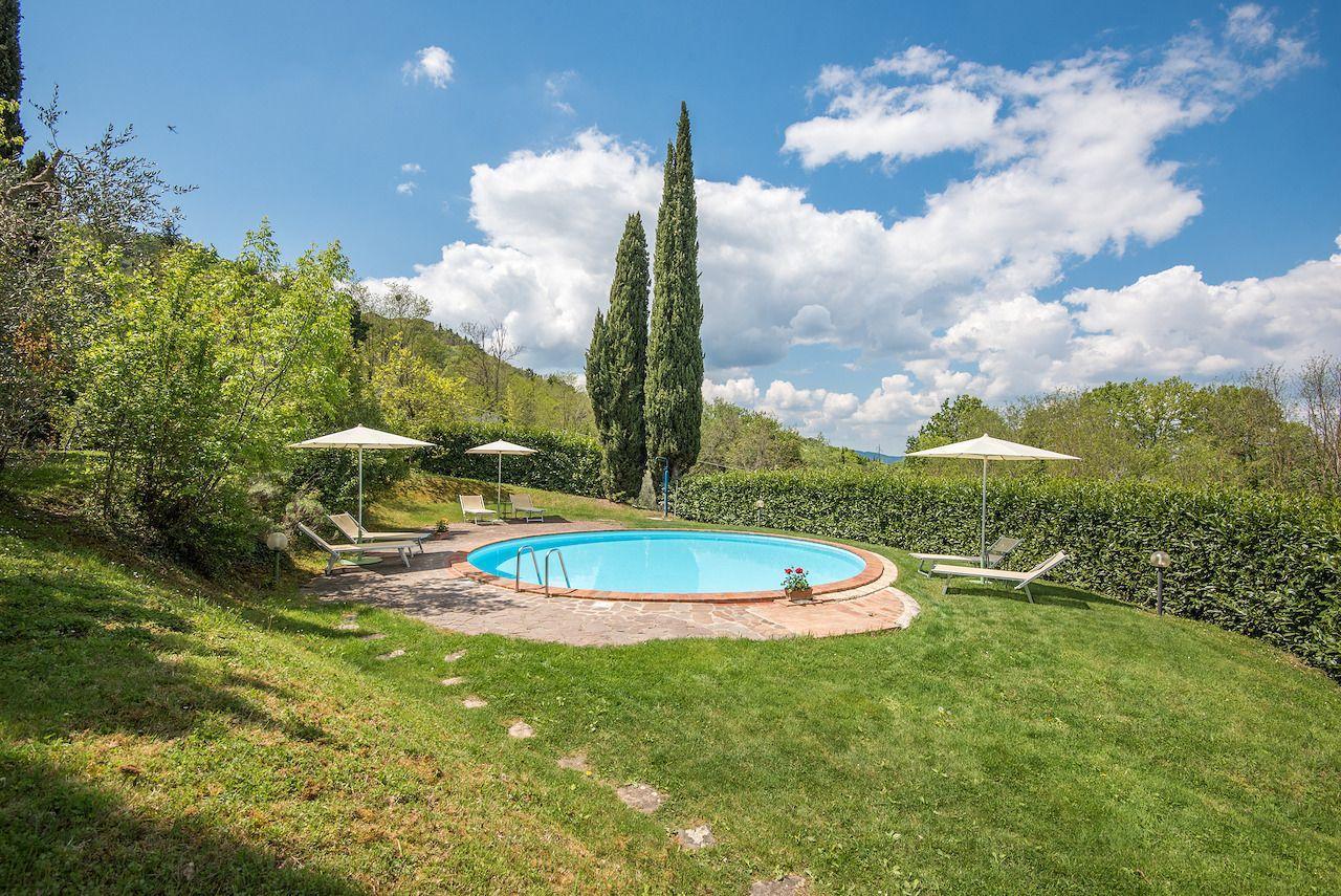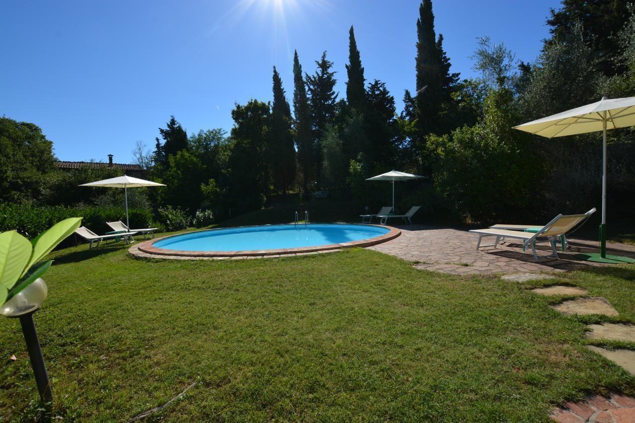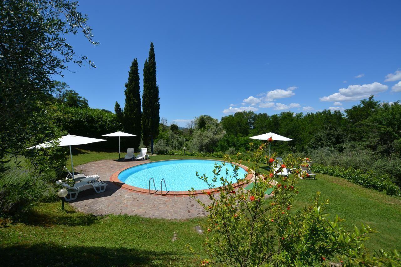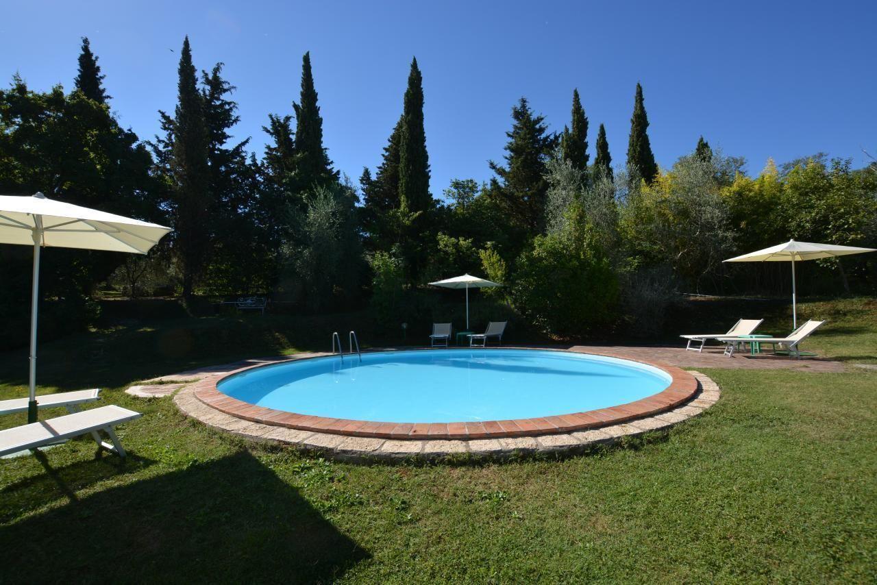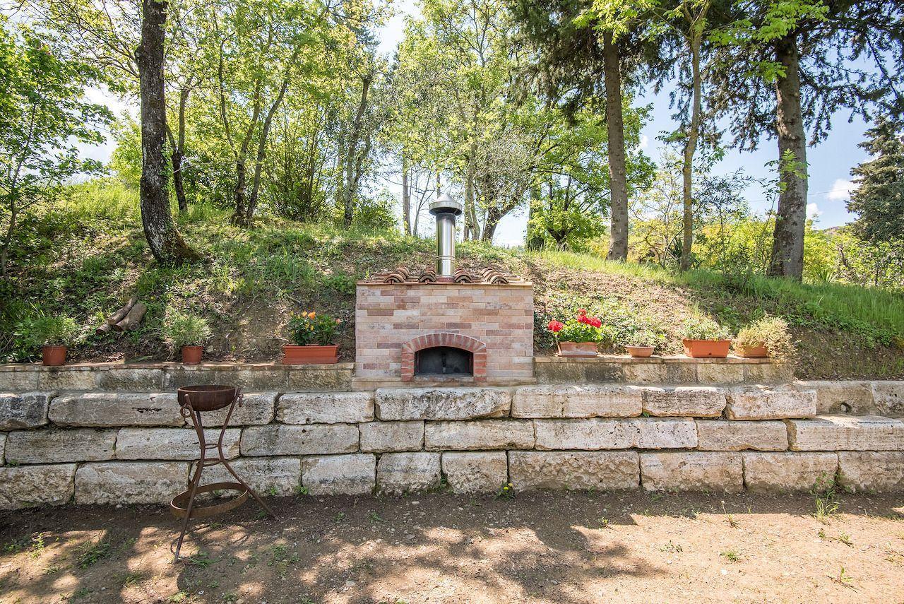 Der Außenbereich von LA CAPANNA öffnet sich zu einem privaten Garten, der von Olivenhainen umgeben und mit einem typischen Grill für schmackhafte Mahlzeiten unter freiem Himmel ausgestattet ist. Der Blick über das Tal bietet ein Naturschauspiel von seltener Schönheit, während das Gemeinschaftsschwimmbad, umgeben von Lavendel, Olivenbäumen und Zypressen, zum Entspannen und Genießen unter der toskanischen Sonne einlädt. Die Spielmöglichkeiten im Freien und die Möglichkeit, Haustiere aufzunehmen, machen diesen Ort zu einem idealen Ort für einen Familienurlaub.