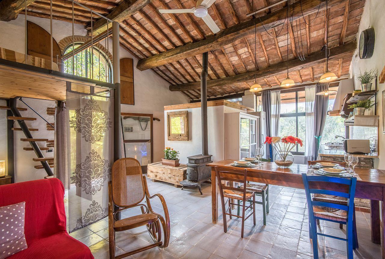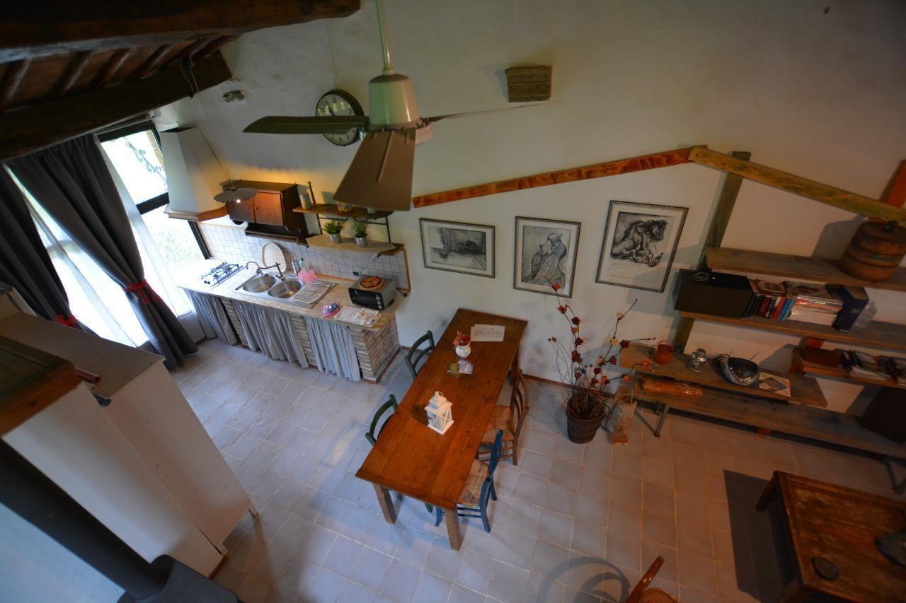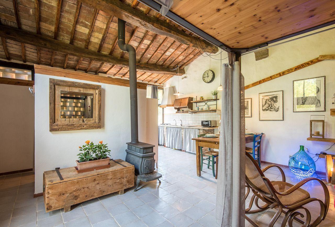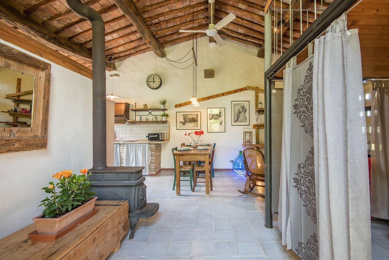 Die Innenausstattung von LA CAPANNA zeugt von der Sorgfalt, mit der die Authentizität und der rustikale Charme vergangener Zeiten bewahrt wurden. Einzigartig in seiner Art ist dieses 55 m² große Studio mit glasierten Terrakottaböden, Terrakotta- und Holzdecken und großen Schiebetüren, die den Raum mit überraschendem Tageslicht erhellen. Die Küche ist komplett ausgestattet mit Herd, Kühlschrank, Gefrierschrank, Elektroofen und Waschmaschine, während der Wohnbereich mit einem bequemen Sofa, Satellitenfernsehen und DVD-Player ausgestattet ist. Der Schlafbereich bietet ein Doppelbett mit Holzlattenrost und orthopädischer Matratze, das durch ein Zwischengeschoss mit zwei weiteren Betten ergänzt wird, was einen Hauch von Originalität und zusätzlichen Komfort bietet.