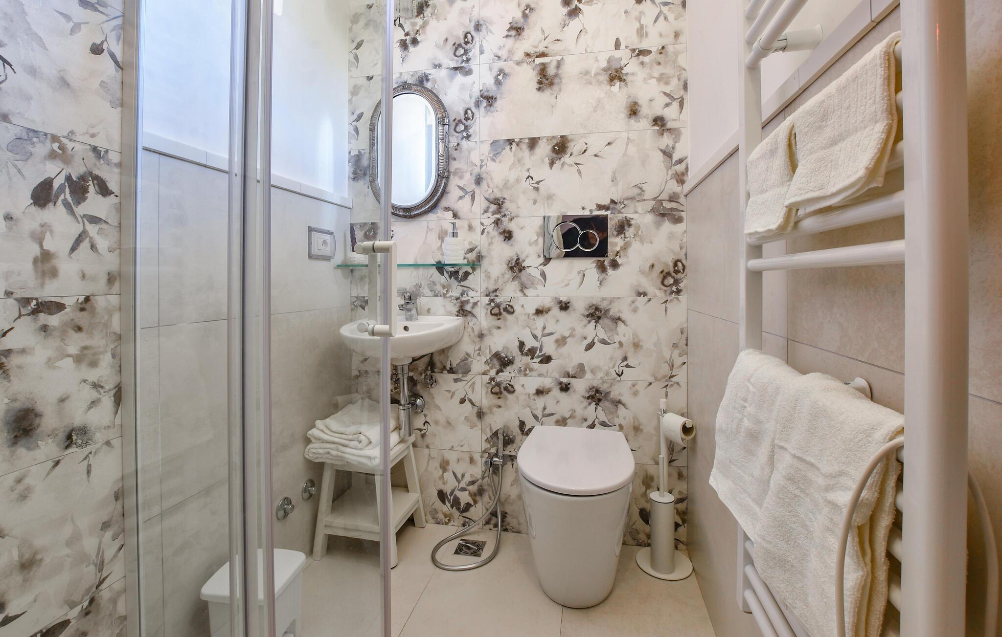 Badezimmer 3m2 (nr. 1) - WC. Warmes und kaltes Wasser. Handdusche