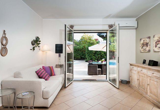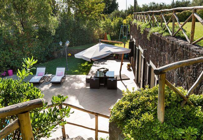 Montefiore ist ein komfortables Haus mit Swimmingpool in Ragalna, einer charakteristischen Ortschaft an den Hängen des Ätna, dem höchsten aktiven Vulkan Europas, der kürzliche zum UNESCO-Weltkulturerbe ernannt wurde. Das schwarze Lavagestein, das für die Außenwandverkleidung des Besitzes verwendet wurde, liegt im Gegensatz zu dem gepflegten Grün des Gartens mit englischem Rasen und den modernen und linearen Innenräumen. Auf einer einzigen Ebene angeordnet, umfasst das Gebäude eine Wohnküche und zwei Schlafzimmer, beide mit Bad mit Dusche. Geschmackvoll und funktionell eingerichtet, verfügt das Haus über jeden Komfort, wie Klimaanlage, Internet W-LAN, iPod dock station, Waschmaschine und Geschirrspüler. Der Swimmingpool kann auf Anfrage beheizt werden. In ruhiger, aber nicht isolierter Lage, ist Montefiore die ideale Lösung für einen Urlaub im Zeichen der Entspannung, aber auch um die außergewöhnliche Umgebung zu erkunden. Vom Haus aus kann man sowohl die Naturschauspiele und Ortschaften des Parks des Ätna, als auch in wenigen Kilometern die interessantesten Orte der Ionischen Küste wie Taormina, Catania und Syrakus erreichen.