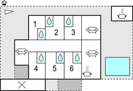 Badezimmer 6m2 (nr. 6) - WC. Warmes und kaltes Wasser. Dusche