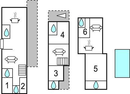 Badezimmer 3m2 (nr. 6) - WC. Warmes und kaltes Wasser. Dusche