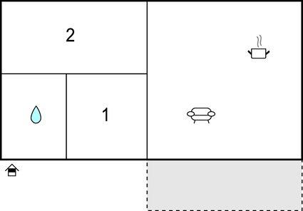 Badezimmer 4m2 (nr. 1) - WC. Warmes und kaltes Wasser. Dusche