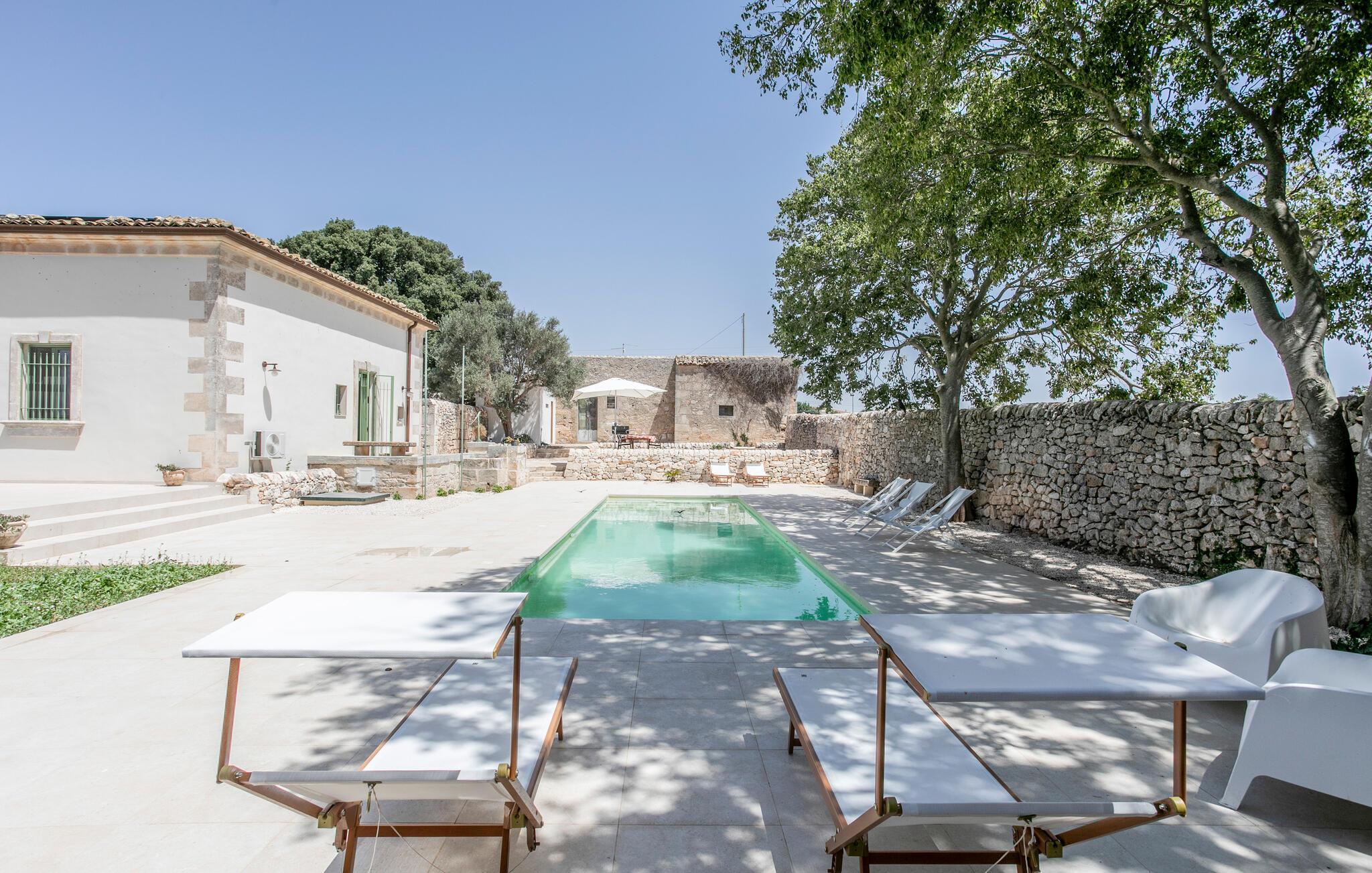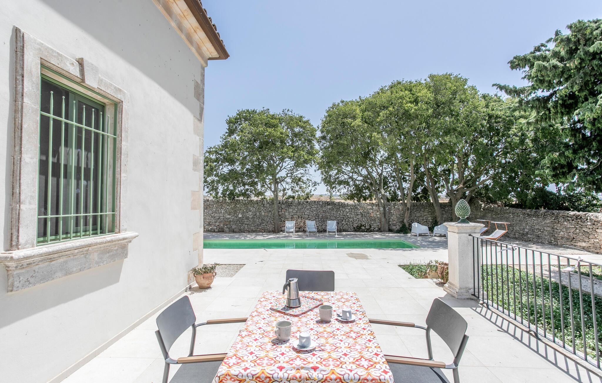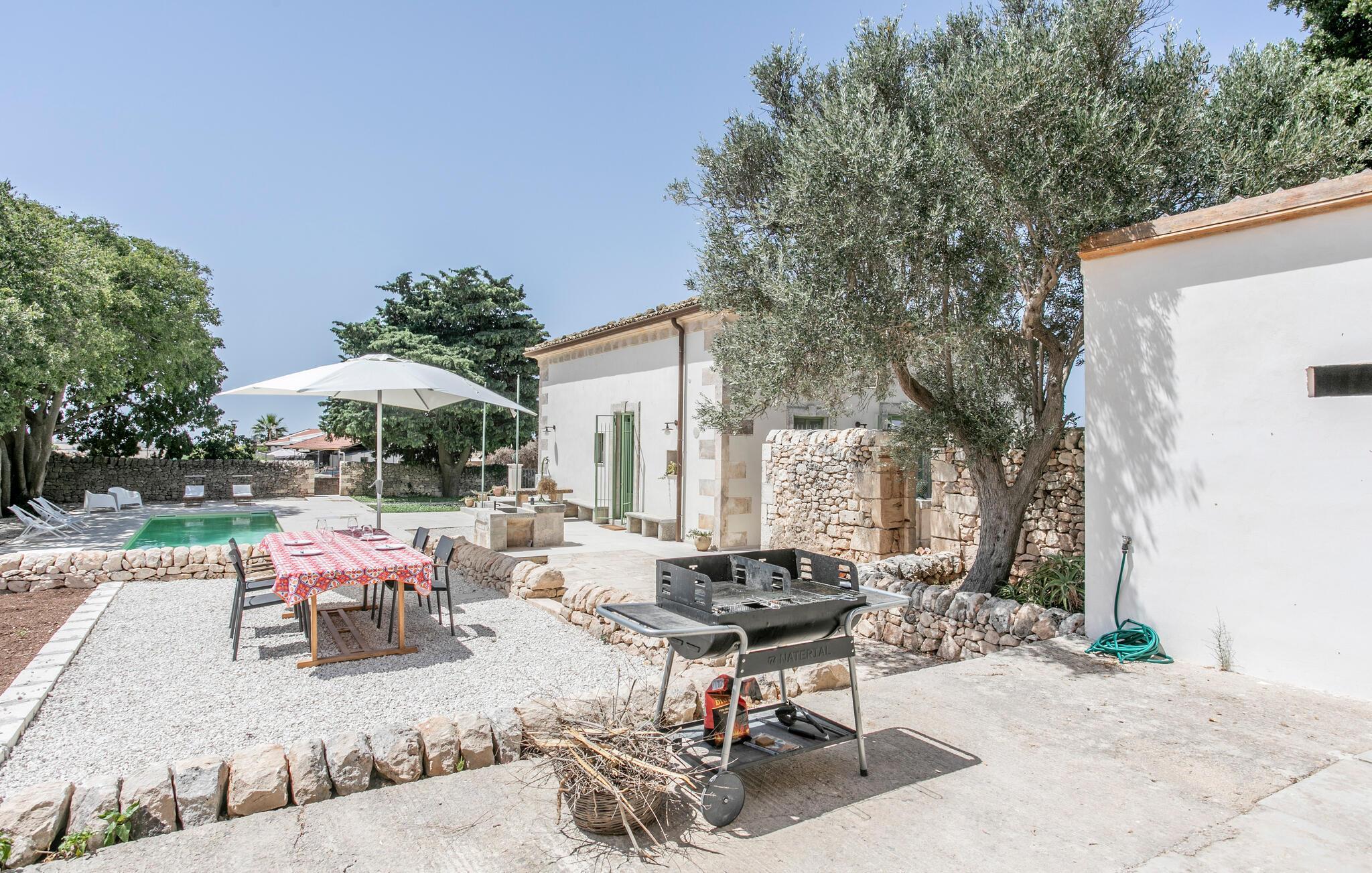 Dieses großzügige Ferienhaus auf zwei Etagen besticht durch seinen traditionellen Charme und eine stilvolle Einrichtung. Die offenen und lichtdurchfluteten Räume schaffen eine behagliche Atmosphäre, während die gut ausgestattete Küche ideal für gemeinsame Mahlzeiten ist. Auf den schönen Terrassenbereichen können Sie entspannen, die Aussicht genießen oder am Abend den Tag bei einem Glas Wein ausklingen lassen. Der private Swimmingpool lädt zu erfrischenden Momenten unter der sizilianischen Sonne ein.